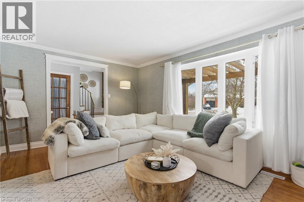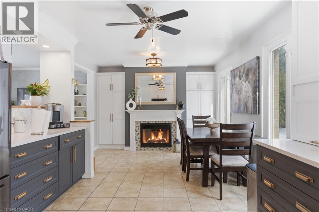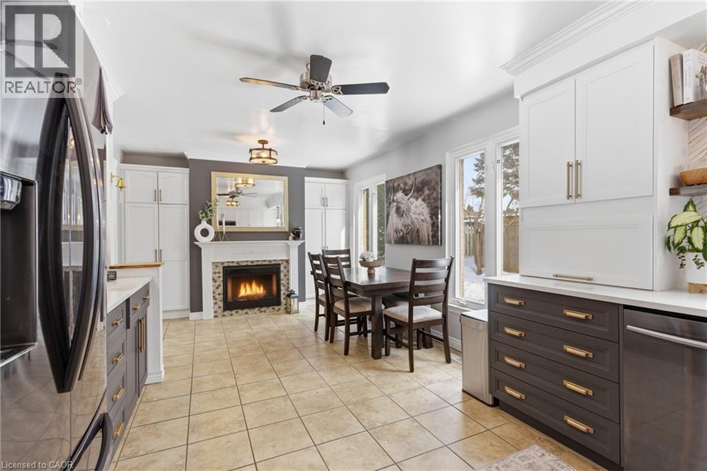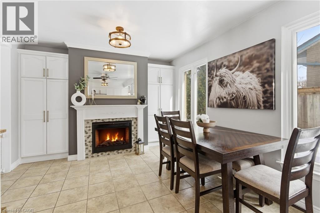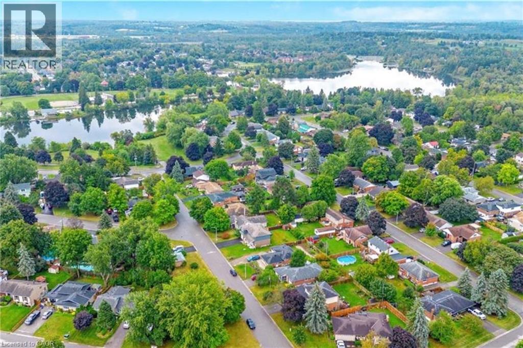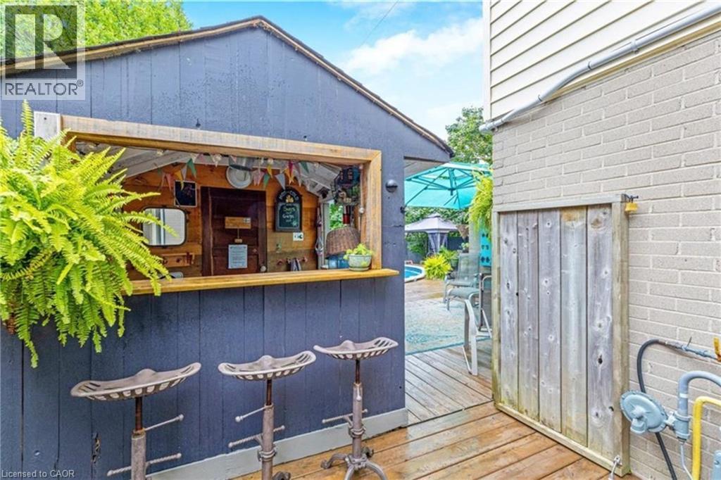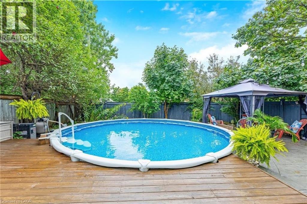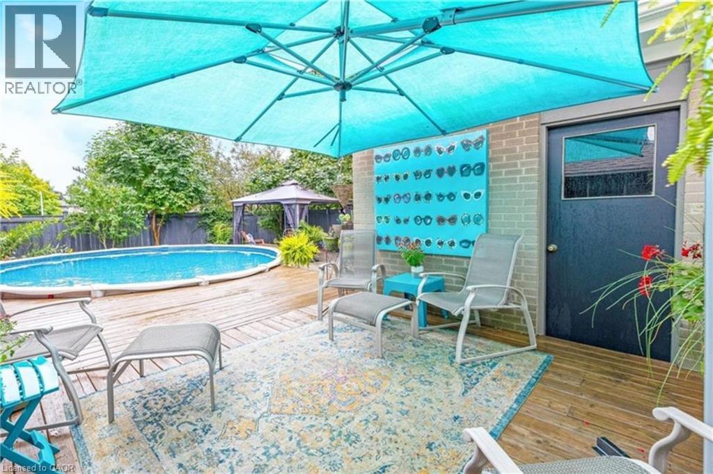 The perfect place to create lasting family memories. This spacious 4+1 bedroom, two-storey home sits on a large corner lot in the highly sought-after Lakeview neighbourhood, just a short stroll from Fairy Lake, local schools, parks, and scenic walking trails. The property offers fantastic curb appeal with a large front lawn, mature trees, and beautifully maintained gardens. A welcoming front porch provides the perfect place to relax while watching the kids play, while the extended driveway offers parking for up to six vehicles. Inside, the main floor is warm and inviting. A bright family room featuring a large bay window flows into the renovated eat-in kitchen, thoughtfully designed with soft-close cabinetry, quartz countertops, black stainless steel appliances, and built-in wall cabinetry with pantry storage. An electric fireplace adds a cozy touch and creates the perfect setting for everyday living and family dinners. The main floor also includes a powder room, convenient garage access, and a walkout to the fully fenced backyard. The backyard is designed for entertaining and relaxation, complete with an above-ground pool, pool cabana, sauna, and a stamped concrete patio that creates your own private outdoor retreat. Upstairs, you will find four spacious bedrooms, including a bright primary bedroom with large windows and double closets. A four-piece bathroom with double sinks makes busy mornings easier for the whole family. A convenient laundry chute connects directly to the basement laundry area for added functionality. The fully finished basement adds even more living space with a fifth bedroom featuring large barn doors, along with a recreation room complete with a dry bar, perfect for movie nights, games, or hosting guests. Located just a short drive from Highway 401, this home offers an ideal balance of peaceful neighbourhood living and easy commuting. (id:51158)