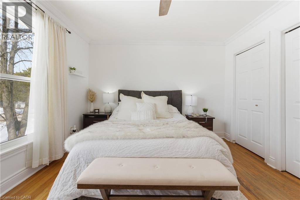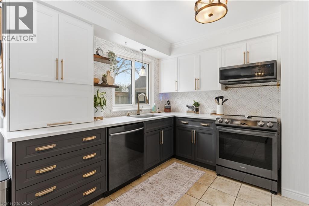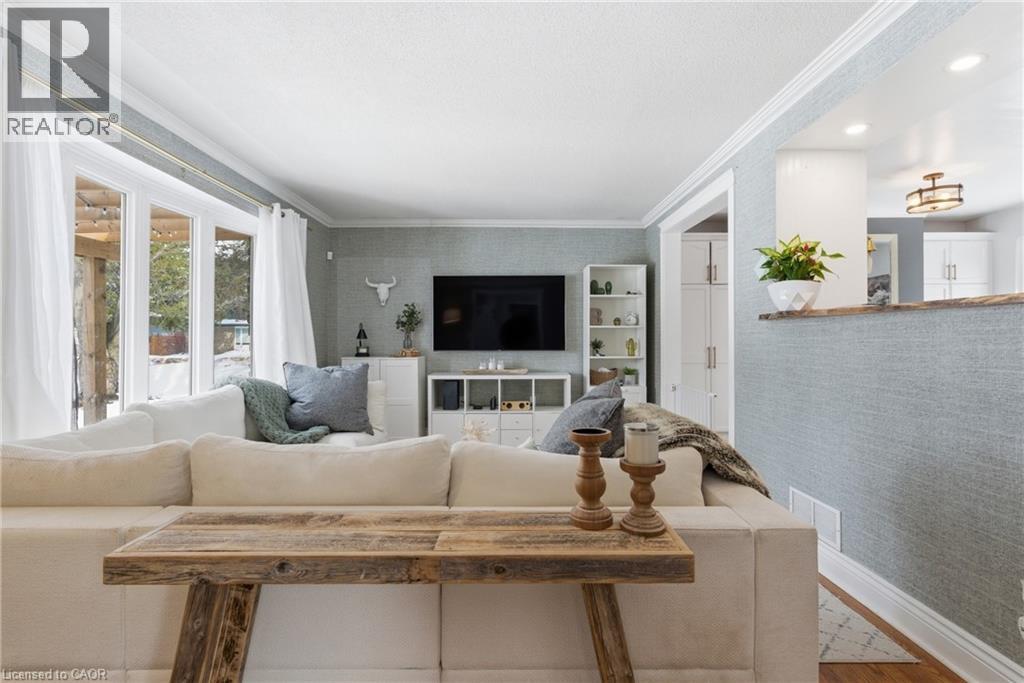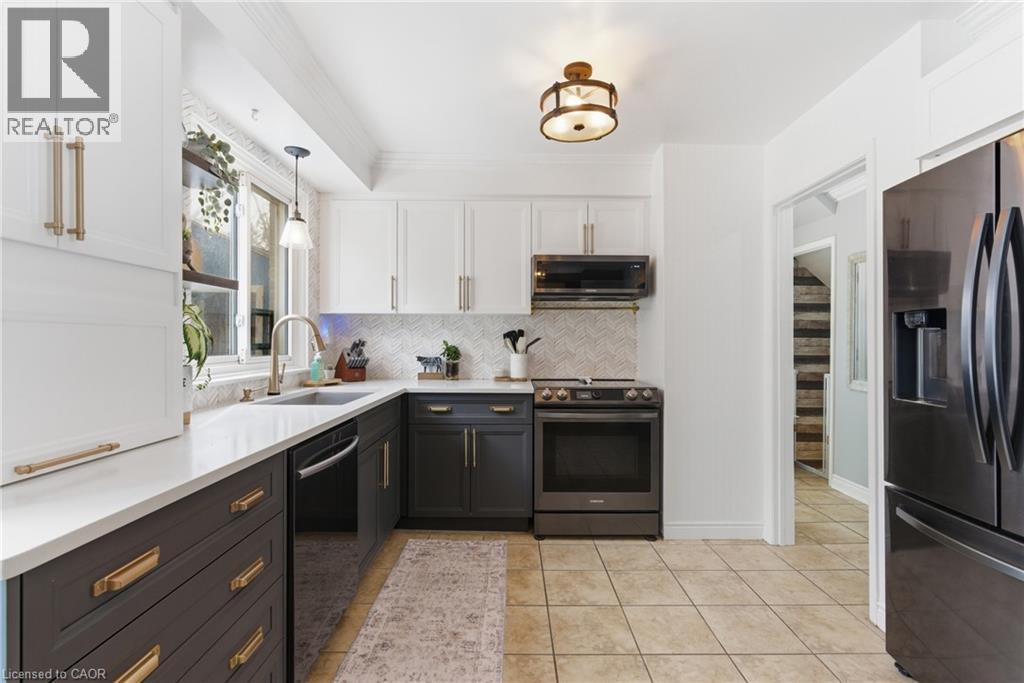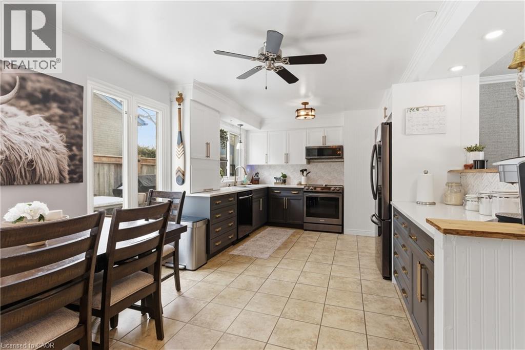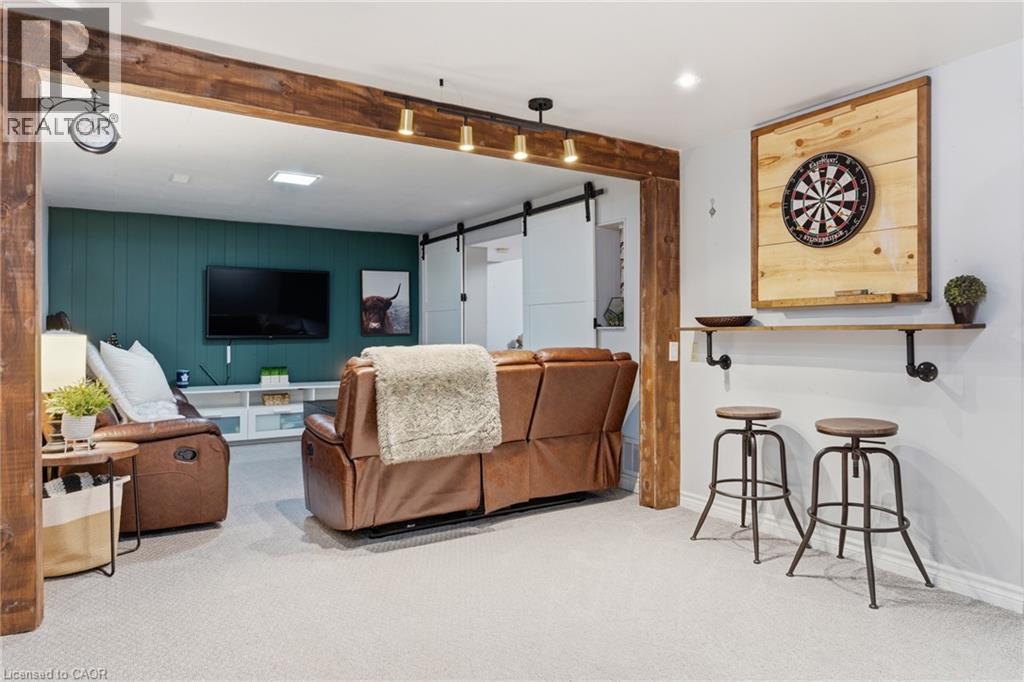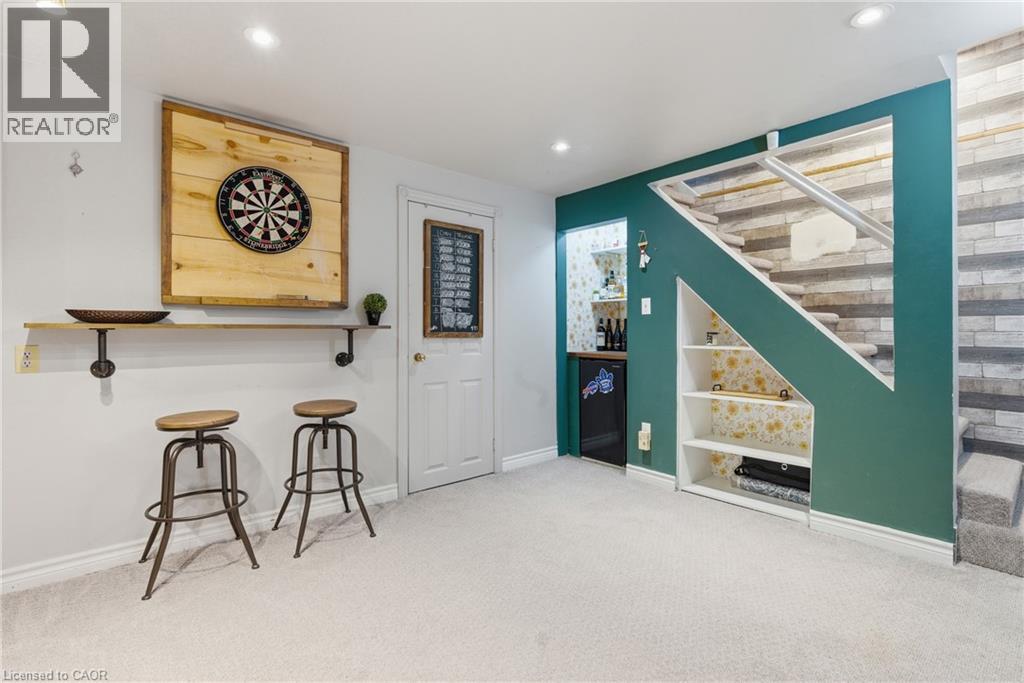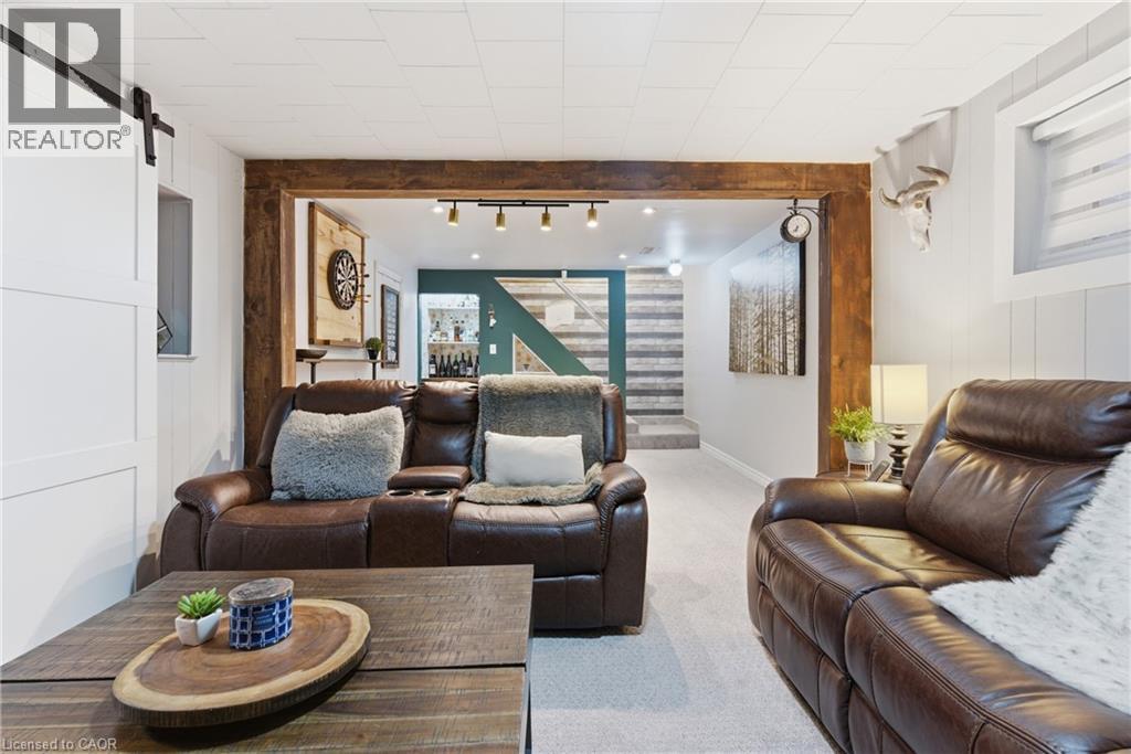 The perfect place to create lasting family memories. This spacious 4+1 bedroom, two-storey home sits on a large corner lot in the highly sought-after Lakeview neighbourhood, just a short stroll from Fairy Lake, local schools, parks, and scenic walking trails. The property offers fantastic curb appeal with a large front lawn, mature trees, and beautifully maintained gardens. A welcoming front porch provides the perfect place to relax while watching the kids play, while the extended driveway offers parking for up to six vehicles. Inside, the main floor is warm and inviting. A bright family room featuring a large bay window flows into the renovated eat-in kitchen, thoughtfully designed with soft-close cabinetry, quartz countertops, black stainless steel appliances, and built-in wall cabinetry with pantry storage. An electric fireplace adds a cozy touch and creates the perfect setting for everyday living and family dinners. The main floor also includes a powder room, convenient garage access, and a walkout to the fully fenced backyard. The backyard is designed for entertaining and relaxation, complete with an above-ground pool, pool cabana, sauna, and a stamped concrete patio that creates your own private outdoor retreat. Upstairs, you will find four spacious bedrooms, including a bright primary bedroom with large windows and double closets. A four-piece bathroom with double sinks makes busy mornings easier for the whole family. A convenient laundry chute connects directly to the basement laundry area for added functionality. The fully finished basement adds even more living space with a fifth bedroom featuring large barn doors, along with a recreation room complete with a dry bar, perfect for movie nights, games, or hosting guests. Located just a short drive from Highway 401, this home offers an ideal balance of peaceful neighbourhood living and easy commuting. (id:51158)