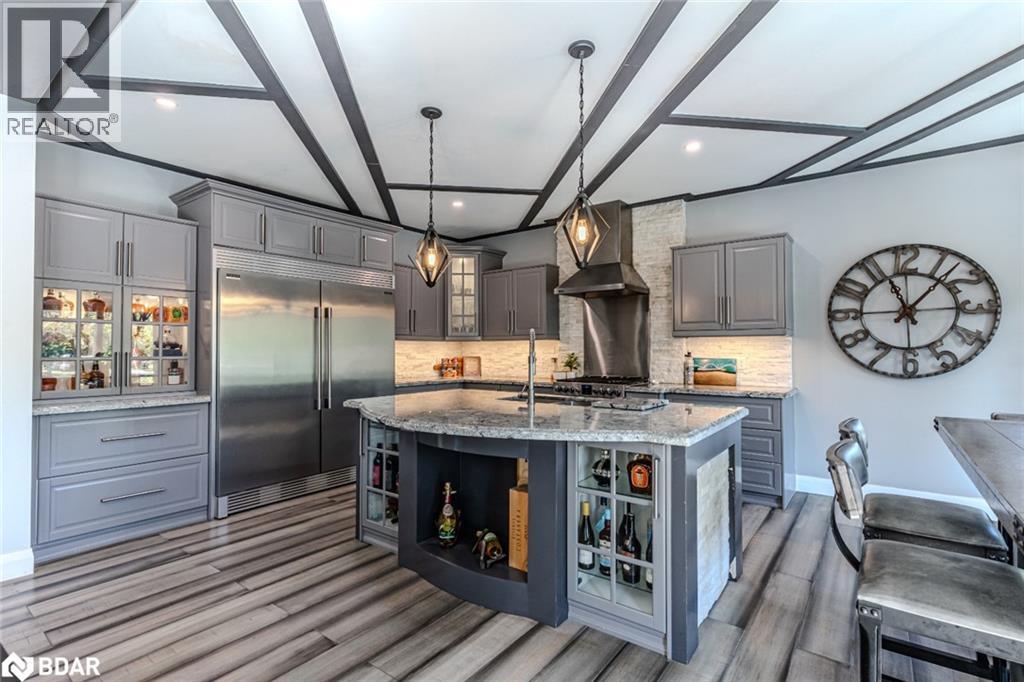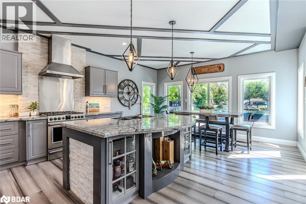 STRIKING ARCHITECTURE, WATERFRONT SERENITY, & ENDLESS LUXURY - A CONTEMPORARY MUSKOKA HAVEN WITH OVER 2,800 SQ FT OF STYLE! Welcome to a waterfront retreat with 50 feet of direct shoreline on the Trent Severn Waterway, where every day feels like a Muskoka getaway. Surrounded by lush forests, lakes, hiking trails, and golf courses, this location offers year-round adventure, with the Lauderdale Point Marina and Resort just steps away for waterside dining and boating convenience. Only 15 minutes to Washago and 25 minutes to Gravenhurst, the property balances peaceful seclusion with easy access to daily essentials. Striking curb appeal is showcased by bold modern architecture with rare imported stone, while the driveway and attached double garage provide parking for 10+ vehicles and toys. The private, fully fenced backyard has been transformed into a luxury resort with a heated pool, bubbling hot tub, outdoor TV, firepit lounge, and an outdoor kitchen, all overlooking a private dock with a jet ski ramp and the charming “Zebra Bar,” a beloved landmark amongst the welcoming neighbours. Inside, 2,800+ sq ft of stunning living space offers open-concept flow, with a living area centred around a fireplace and a walkout to the deck, and a designer kitchen with an oversized island, professional gas stove, and custom lighting. The main level also features a versatile bedroom or office, a powder room, and a mudroom with garage entry. Upstairs, three bedrooms and a laundry room are enhanced by a flexible rec space, while the primary suite delivers a spa-like escape with panoramic lake views, a walk-in closet, and a 5-piece ensuite with a deep soaker tub and walk-in glass shower. Thoughtful upgrades, including dual 200-amp services, a Generac transfer switch, on-demand hot water, and a UV water treatment system ensure peace of mind for years to come. This is more than a #HomeToStay - it’s a Muskoka waterfront lifestyle of luxury, leisure, and unforgettable memories! (id:51158)