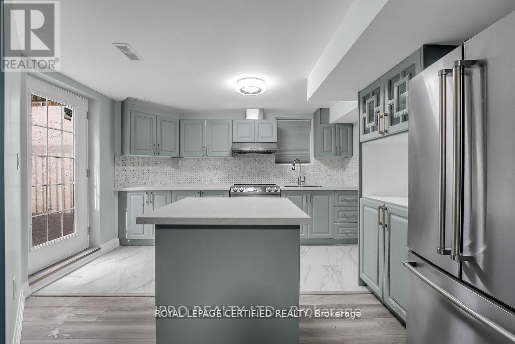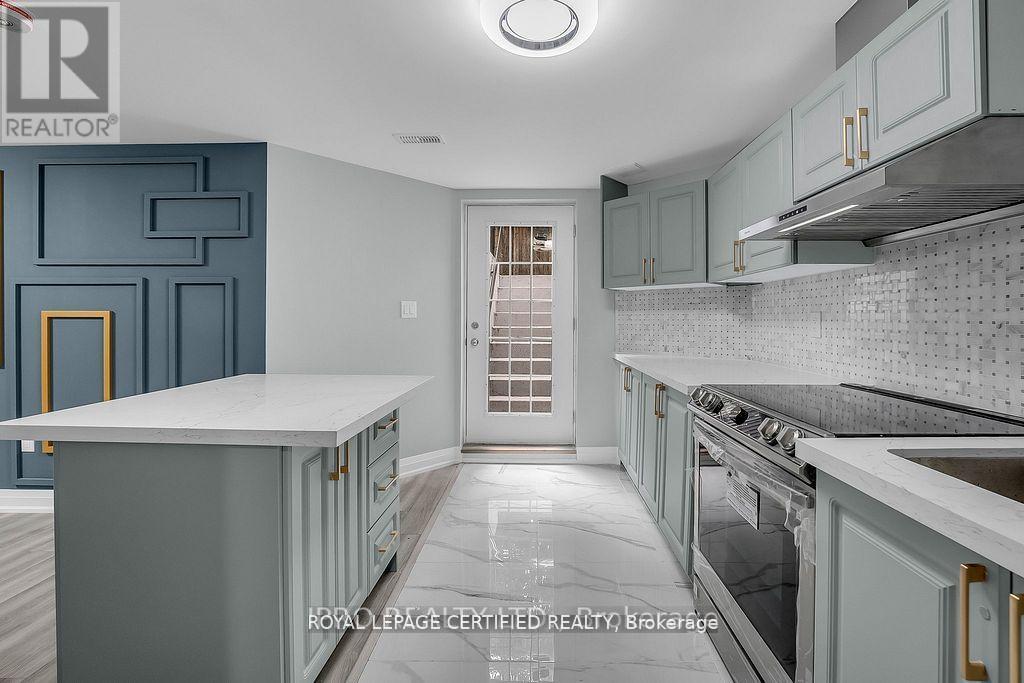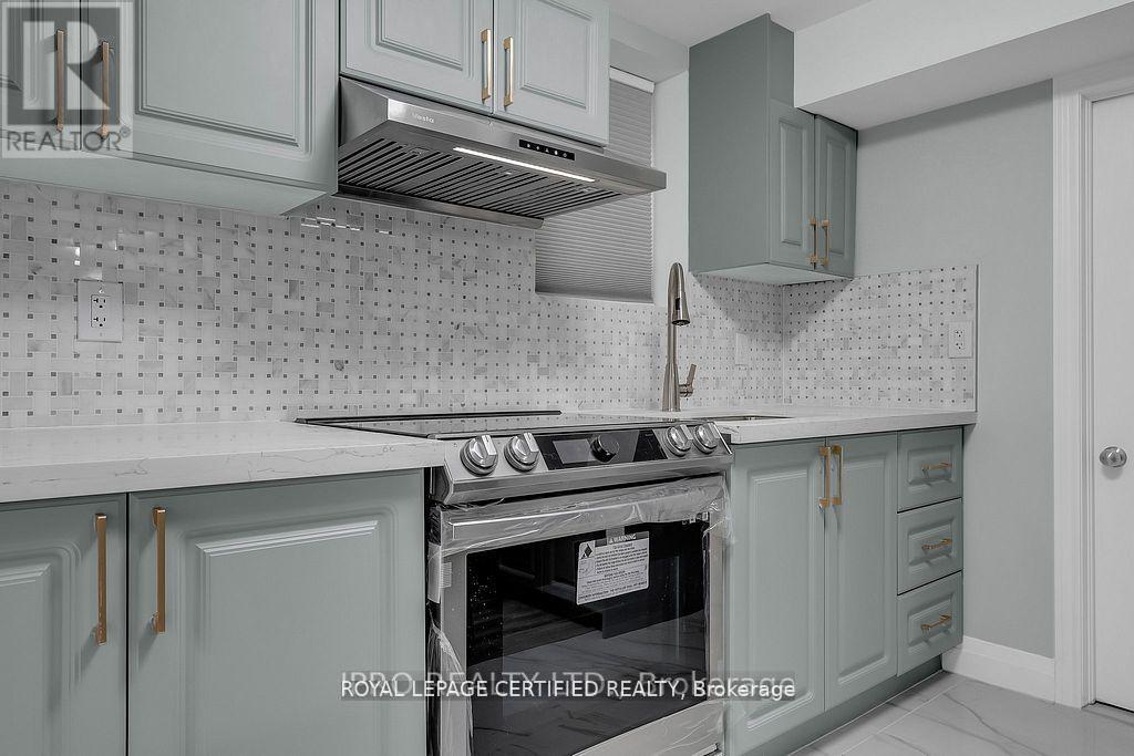 Renovated Finished Legal Basement with Private Separate Entrance! 2 Bedroom 2 Bathroom, Open Concept with Contemporary Finishes Throughout Including a Tastefully Designed Stunning Kitchen with Quartz Countertop and Marble Backsplash with Top of the Line Stainless Steel Appliances and a Large Pantry Leading you to a Functional Living Area with a Stunning Accent Wall. LED High End Light Fixtures throughout, Large Windows allowing tons of Natural Light to Come In. Bathrooms with Stunning Vanity and Finishes Including LED Multi-Colour Make Up Mirror. Both Bedrooms with Large Mirrored Closets. (id:51158)