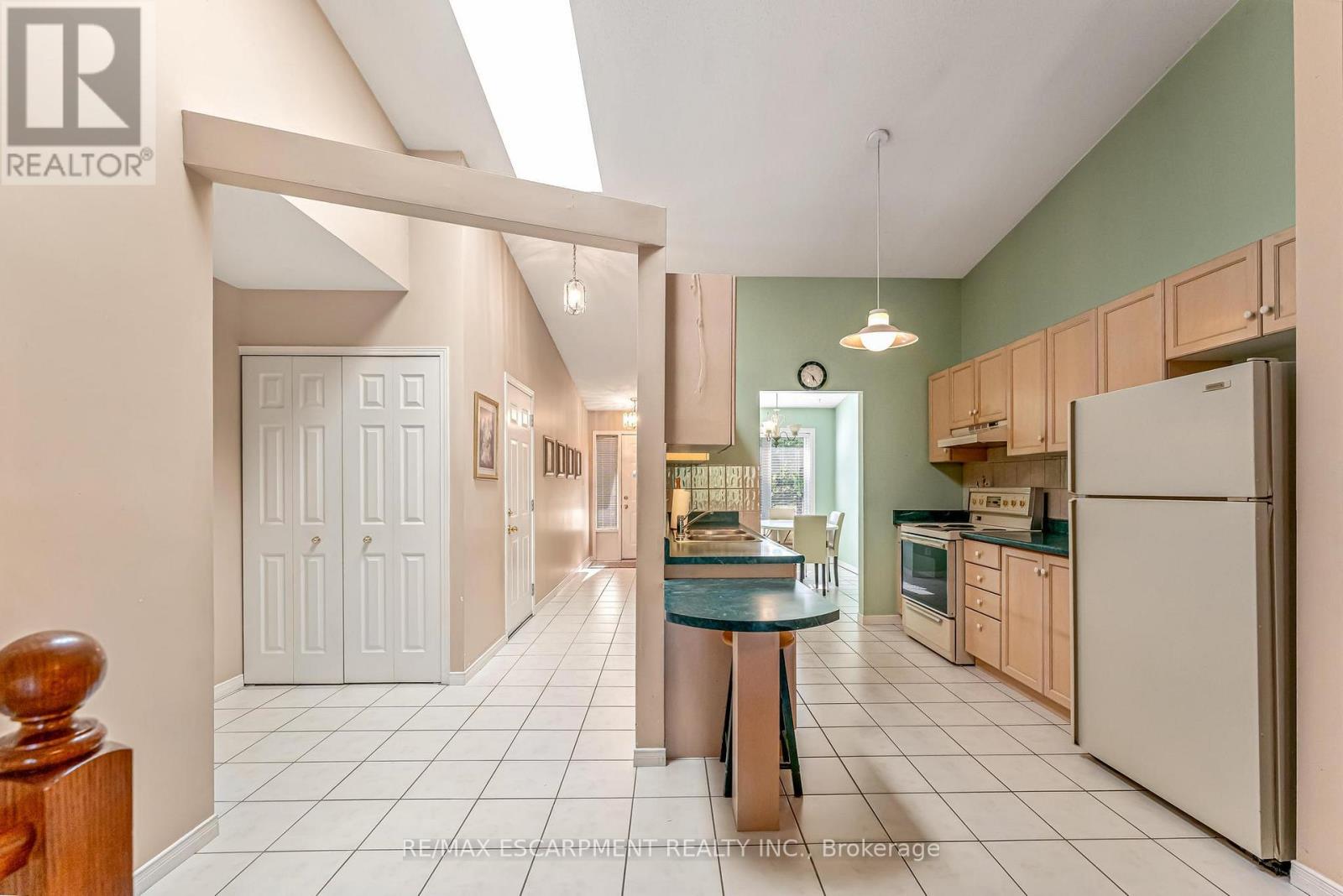 $599 MonthlyExperience Exceptional Adult-Lifestyle Living in Ancaster Welcome to this beautifully maintained bungalow townhome in the highly desirable Bungalows of Meadowlands community. Ideally located just steps from public transit, restaurants, grocery stores, and shopping, and offering quick access to Highway 403 and the Lincoln M. Alexander Parkway, this home truly offers the best of comfort and convenience. With approximately 1,090 sq. ft. of thoughtfully designed living space, this bright and airy home features vaulted ceilings and a skylight, creating an open and inviting atmosphere. Enjoy seamless indoor-outdoor flow with a private patio ideal for relaxing or entertaining. The fully finished basement adds incredible value and versatility, offering a second kitchen, a spacious recreation room with a cozy fireplace, and additional living space perfect for extended family, guests, or entertaining. Whether you're downsizing or seeking a low-maintenance lifestyle, this charming bungalow offers comfort, style, and unbeatable location all in one package. (id:51158)