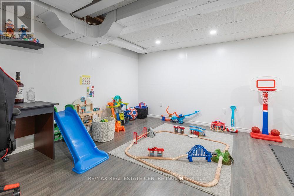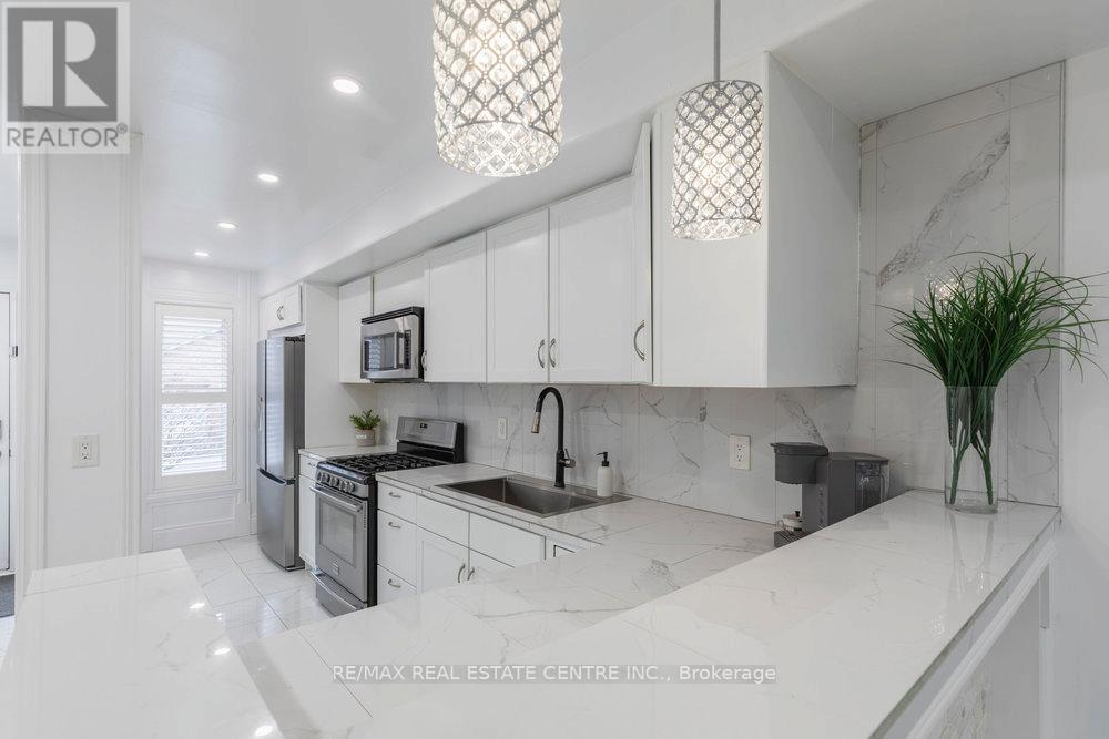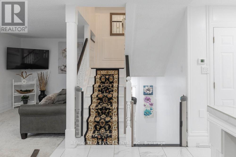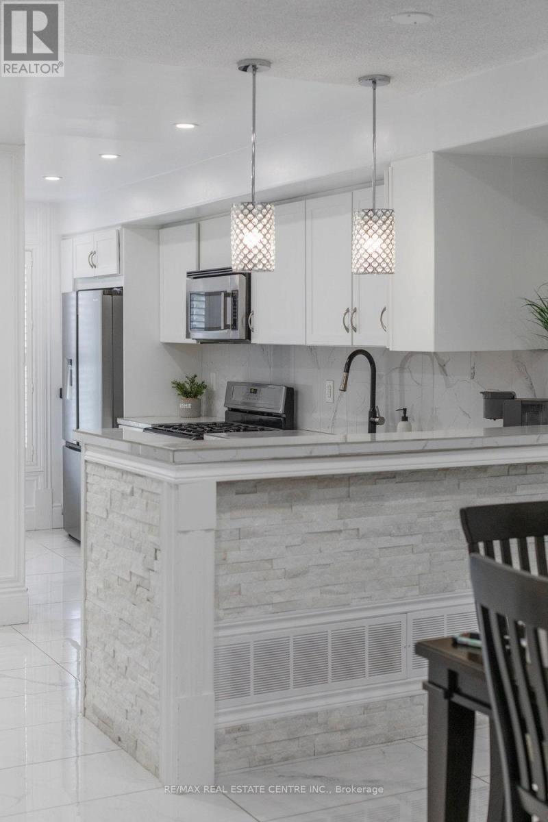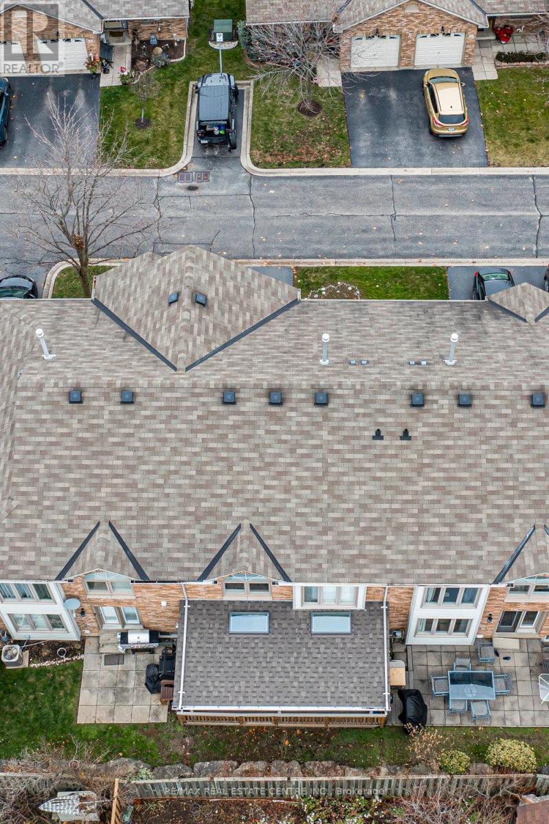 $437.36 MonthlyWOW factor! One of a kind - the only unit with a covered rear deck featuring skylights! Elegantly updated with modern finishes and thoughtful touches. Quiet, compact and dog-friendly Bayberry Village - this unit is located on the interior (not street side). 3 Beds, 2.5 Baths. Offers nearly 2,000 sf finished space! Open Concept Layout! Foyer built-ins great for storage and extra pantry space. Separate dining room or one large living room. Updated kitchen boasts lots of counter and cupboard space including bar counter optimal for seating with pendant lighting & stone accents. Stainless appliances. Gas stove & new microwave/range hood. Electric Fireplace in LR/DR. Garden Doors to private deck. BBQ's allowed. Inside entry to Garage. Powder Room conveniently located between main & lower levels. Finished Rec Room or possible 4th Bedroom. Laundry, Utility with plenty of storage plus under stair storage. Rough-In for 4th bathroom. New porcelain tiles on main. Berber in bedroom level. Oversized primary retreat with cathedral ceiling, 3pc ensuite updated with new vanity and large glass shower plus spacious walk-in closet. 2 secondary bedrooms with large closets and windows. Updated 4pc main bath. New light fixtures. Main hallway kick sweep. Extra storage on landing. Condo replaced Windows 2018, Roof & Garage Door 2025. Many California Shutters. Fees $438/month includes grass cutting, water charges & more! Ample Visitor Parking. Conveniently located minutes to the Redhill & nearby public transit, schools, parks and all amenities. (id:51158)