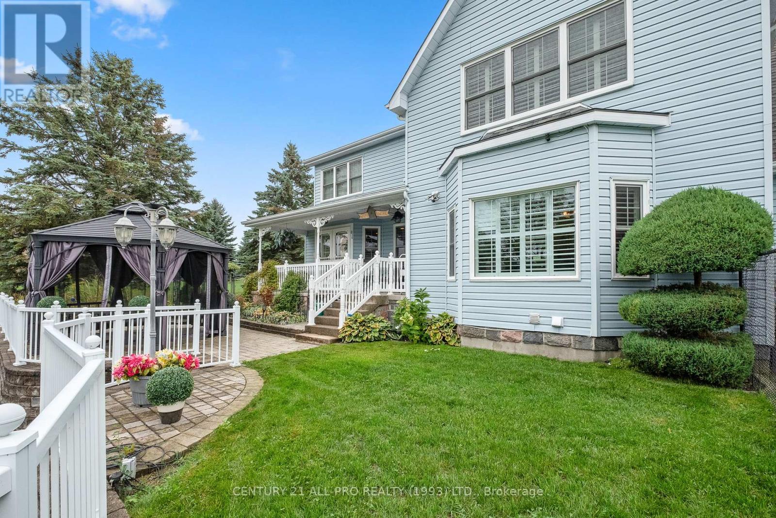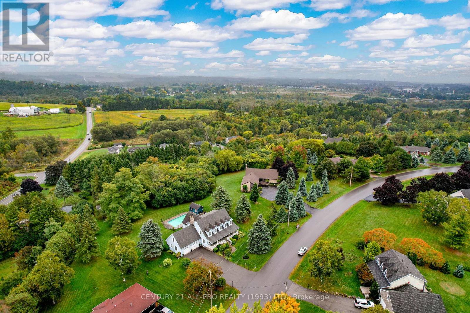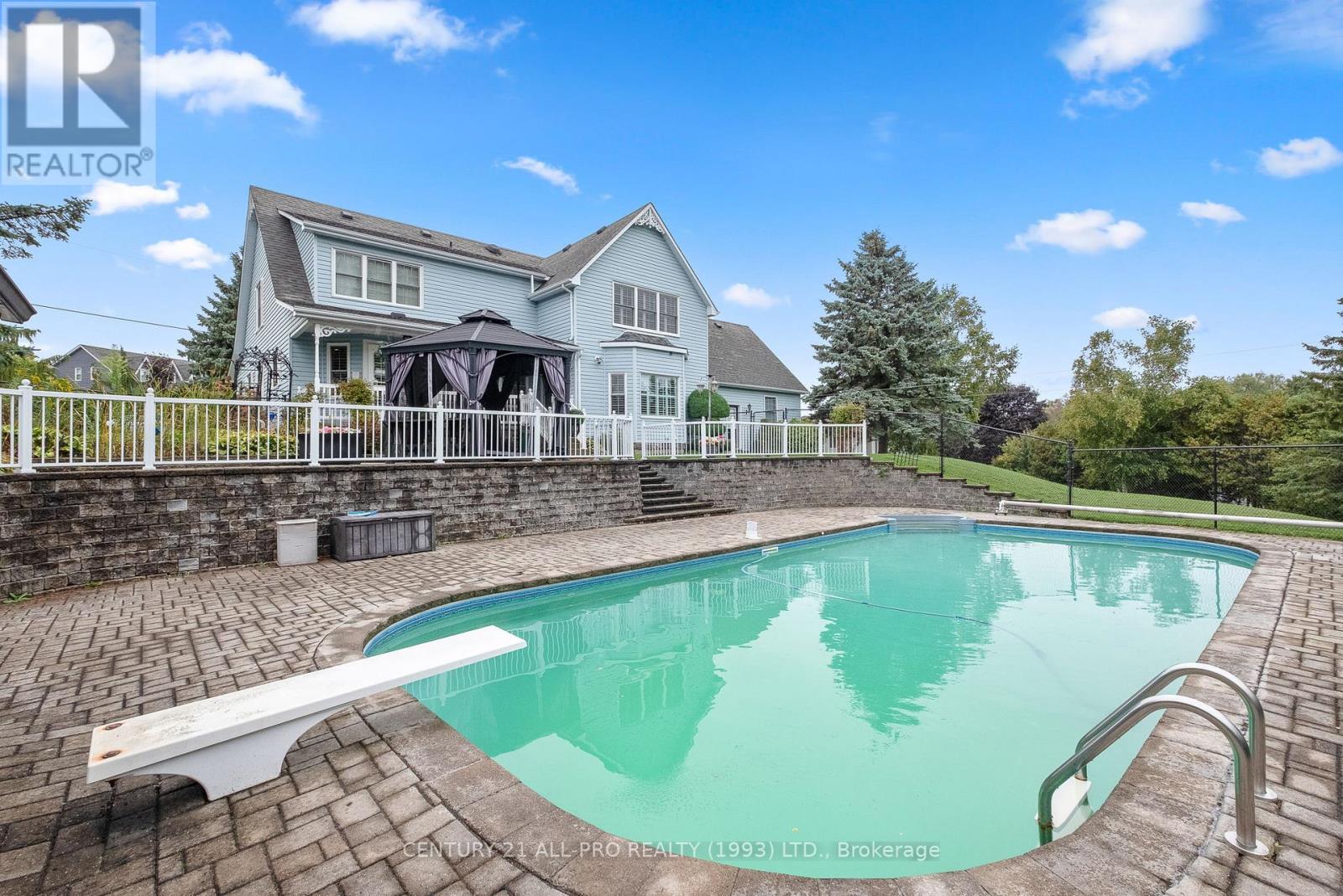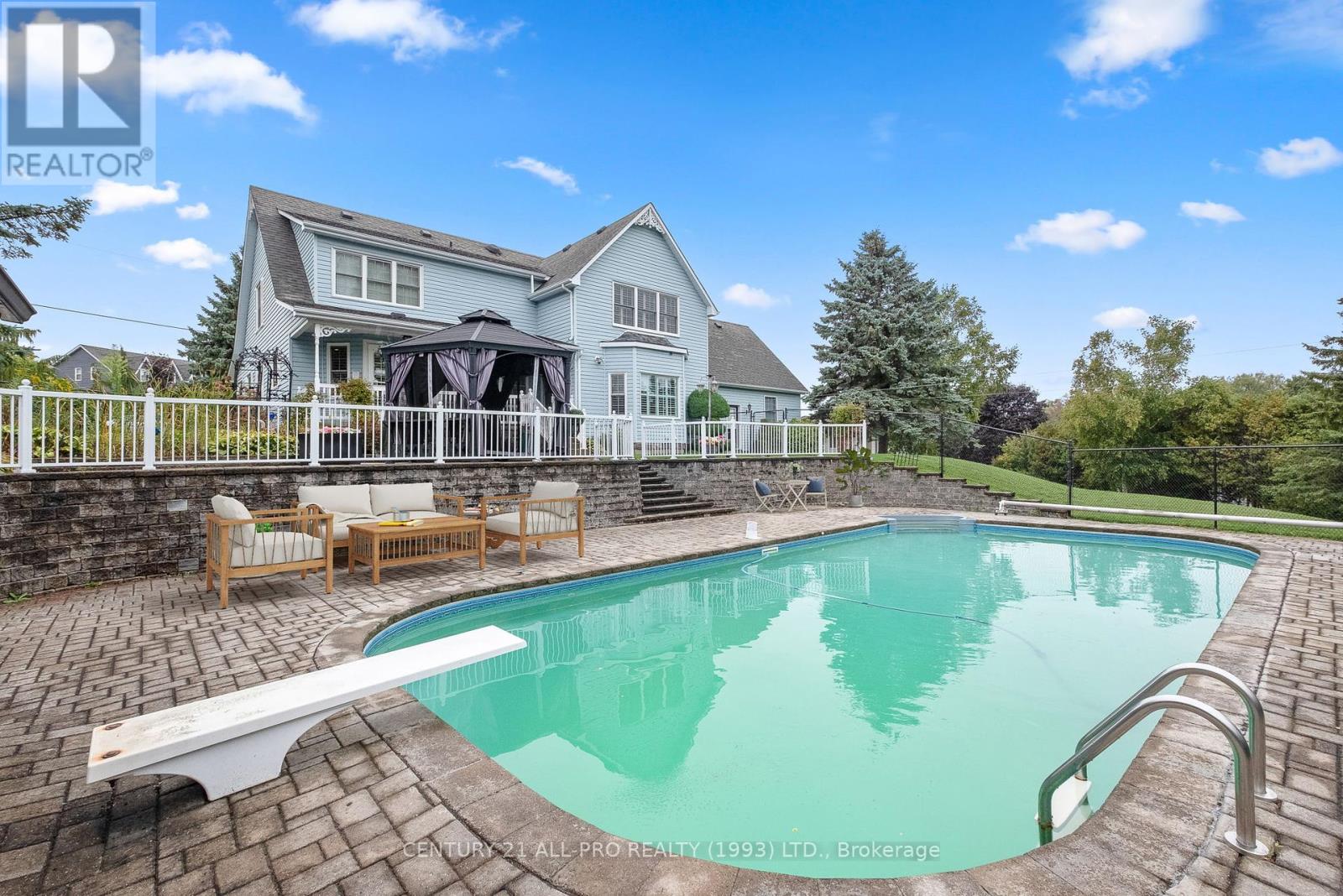 Are you looking for an executive home that offers quality with loads of space on 3 floors? Beautiful kitchen with granite counters with stainless steel appliances with adjoins walkout to backyard with Inground saltwater heated pool. Enjoy sitting on a covered front porch 8x42. This home has a grand entrance with spiral staircase. Other main floor features include laundry area, sunken family room with stone fireplace, separate living room and dining room with an extra space for home office. Quality flooring. Second level has a huge primary suite 14.4x19.2 with a walk through with closets leading to a 5 pc ensuite. 2 more bedrooms, laundry shoot, and 4 pc bath complete the upstairs. Lower level basement has a rec room, 2pc bath, games room, cold room, furnace room, and walk up to garage. Bonus out building has a 2 pc bath, change room area and storage for all the pool equipment. Driveway is oversized with the ability to hold 9 vehicles . Located Amongst many quality built homes. Views of the country side! Can also offer a quick closing! (id:51158)