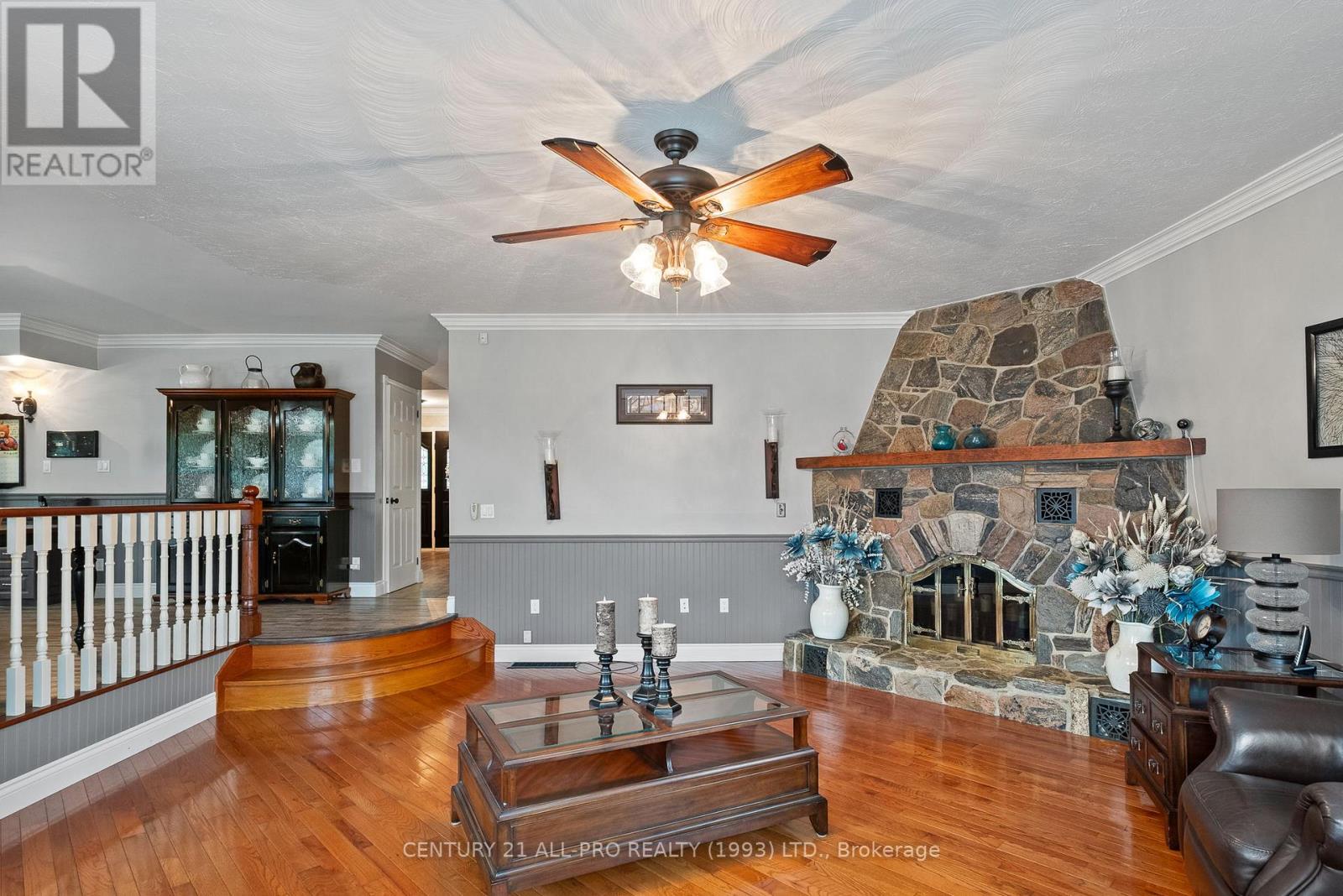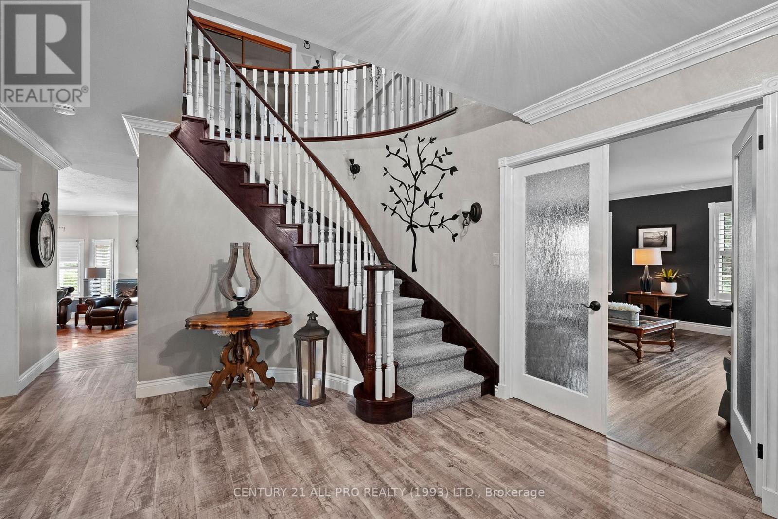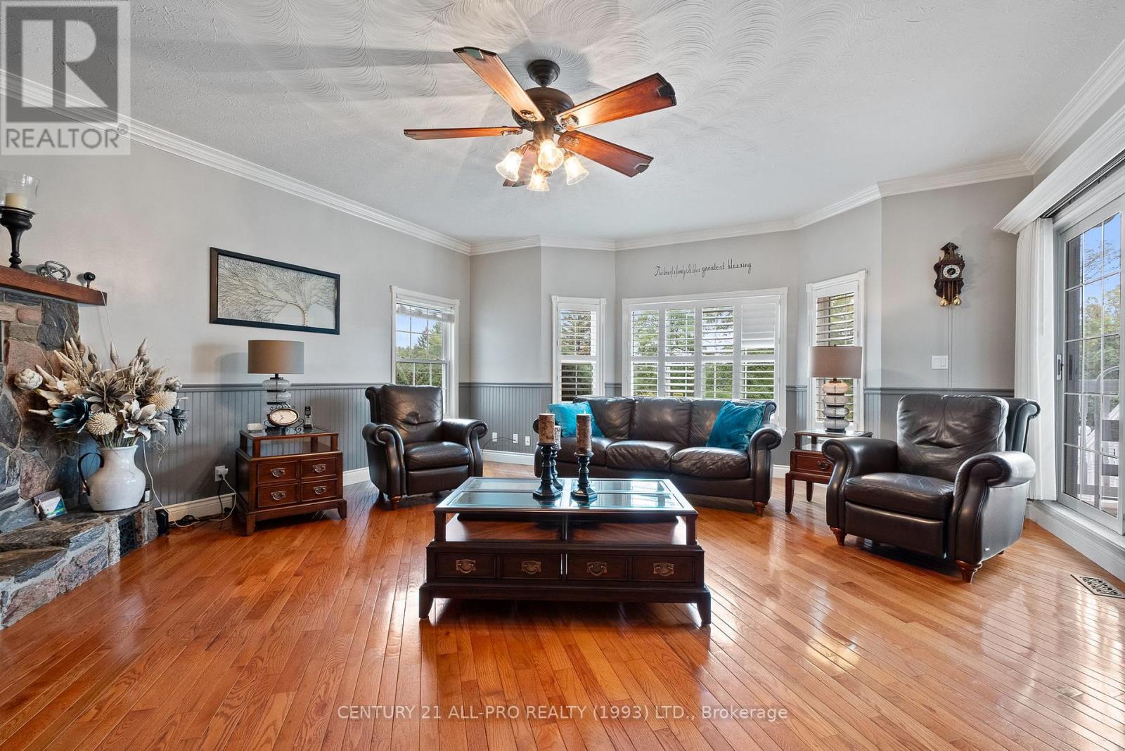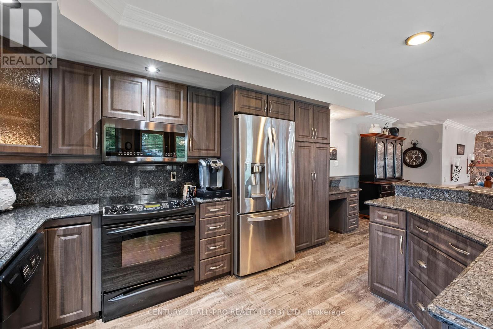 Are you looking for an executive home that offers quality with loads of space on 3 floors? Beautiful kitchen with granite counters with stainless steel appliances with adjoins walkout to backyard with Inground saltwater heated pool. Enjoy sitting on a covered front porch 8x42. This home has a grand entrance with spiral staircase. Other main floor features include laundry area, sunken family room with stone fireplace, separate living room and dining room with an extra space for home office. Quality flooring. Second level has a huge primary suite 14.4x19.2 with a walk through with closets leading to a 5 pc ensuite. 2 more bedrooms, laundry shoot, and 4 pc bath complete the upstairs. Lower level basement has a rec room, 2pc bath, games room, cold room, furnace room, and walk up to garage. Bonus out building has a 2 pc bath, change room area and storage for all the pool equipment. Driveway is oversized with the ability to hold 9 vehicles . Located Amongst many quality built homes. Views of the country side! Can also offer a quick closing! (id:51158)