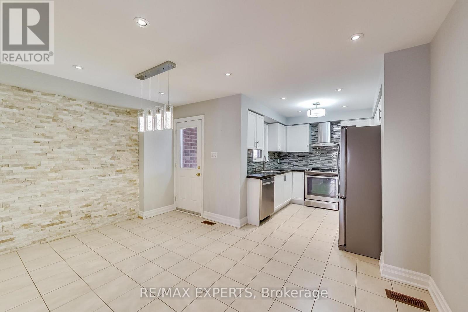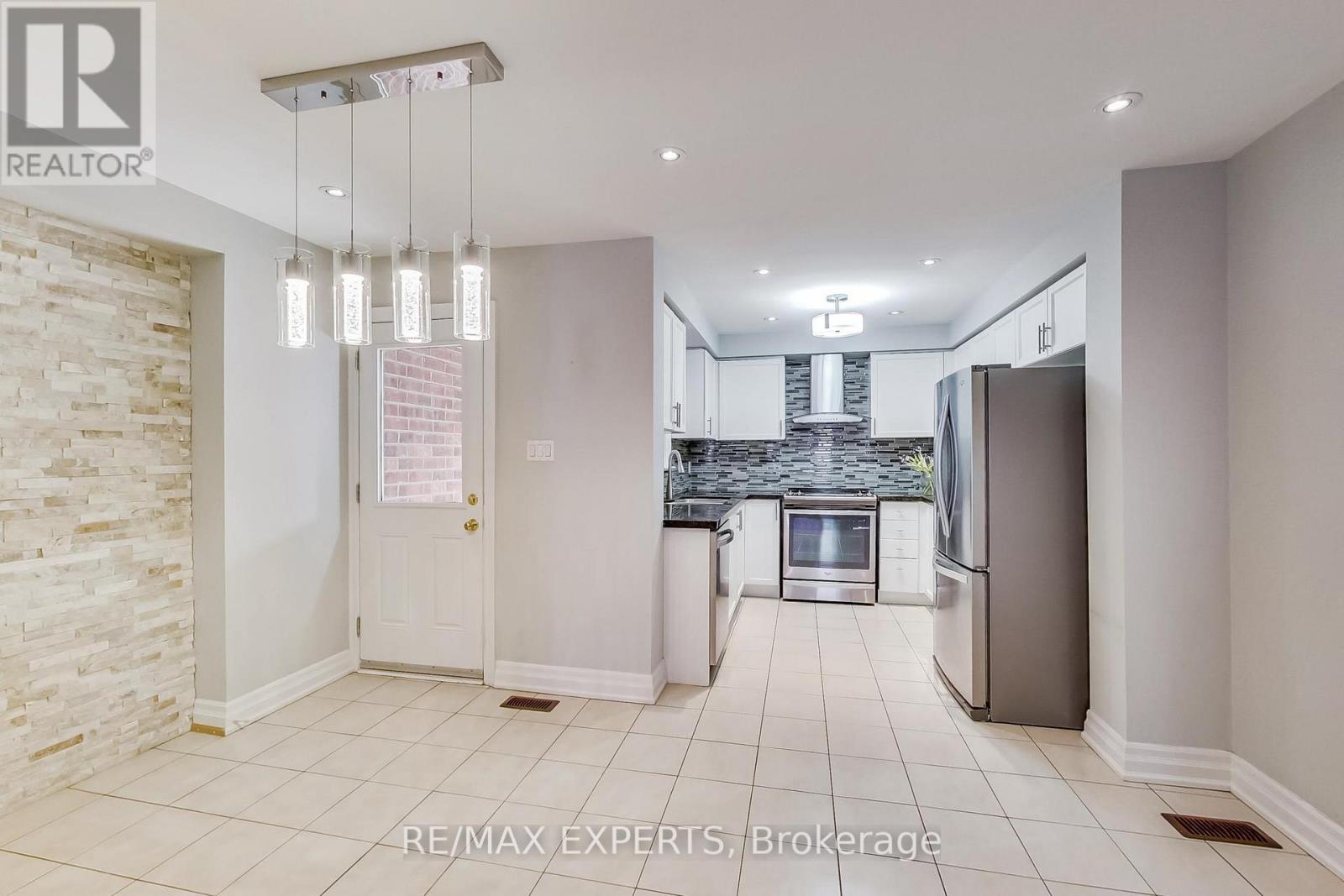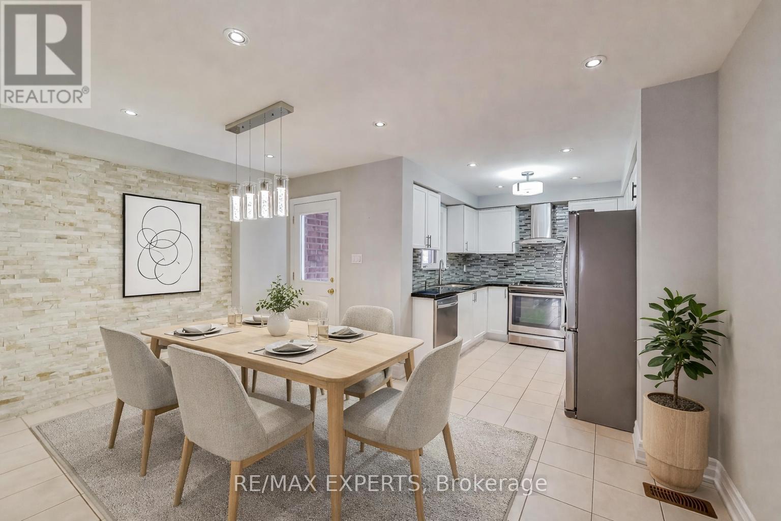 Gorgeous upgraded 3+1 bedroom townhouse offering a functional layout and numerous upgrades throughout. Spacious kitchen with breakfast area, stainless steel appliances, and main-floor laundry. Bright living and dining areas with ample natural light. Conveniently located close to Hwy 400, shopping centres, schools, restaurants, and other amenities. Some Photos Virtual staged. (id:51158)