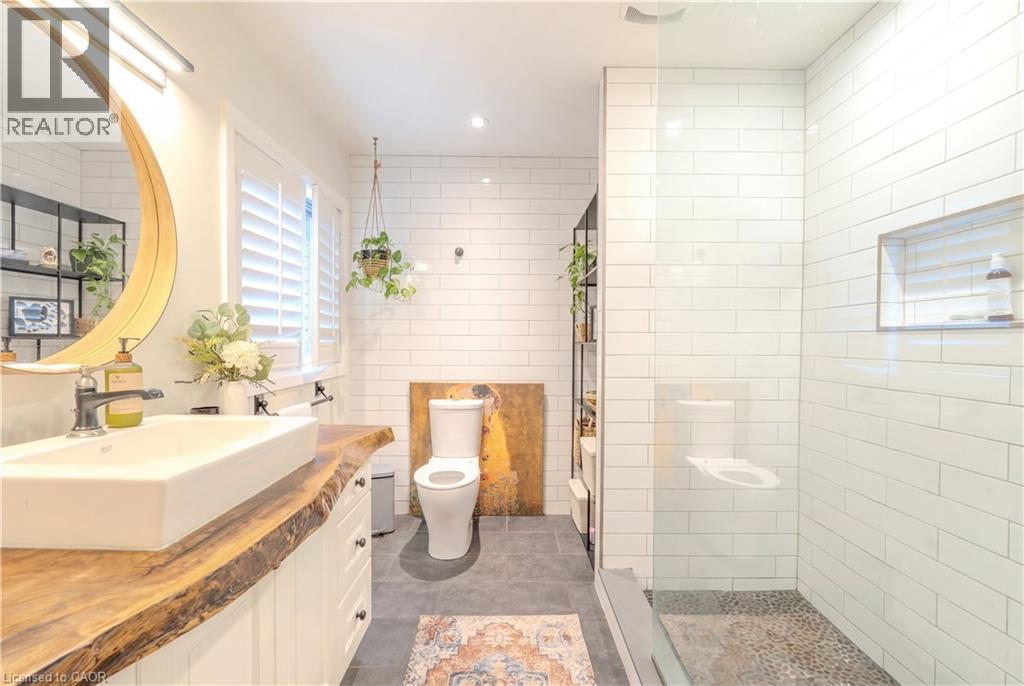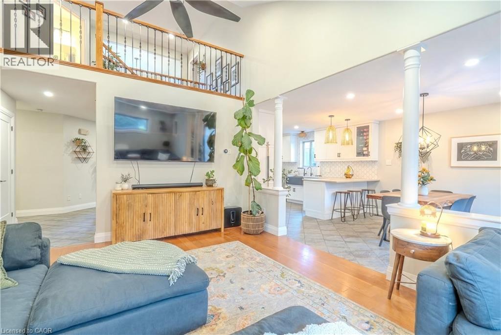 Rare bungaloft with double garage in prime West Mountain location! Welcome home to 17 Krieghoff Drive! Entering the front door of this lovely custom built home, you walk into a large and welcoming foyer with cathedral ceiling to 2nd floor. To your left is the front formal living room, which could also be a great home office. To your right is the main floor 2pc powder room & inside entry to double garage. Open concept living space. Large kitchen updated in 2023 with tumbled marble backsplash, new stainless appliances & rangehood with quartz counters and large breakfast bar. Your separate dining area leads out to the private backyard with large stamped concrete patio and hottub. The great room at the back is a large and cozy living space that also has cathedral ceilings open to 2nd floor. The primary suite is on the main level, making this layout a perfect fit for empty nesters, downsizers & small or growing families alike- offering privacy from the other bedrooms upstairs. Beautiful ensuite bath, renovated in 2022 with live-edge vanity counter & tiled/glass shower. In the loft upstairs, you have 2 generously sized bedrooms with oversized closets & hardwood floors. The basement offers a ton of further potential with rough-in for future bathroom, high ceilings and a ton of space. Current owner has this area setup as a massive play space for the kids with turf and soccer nets- but the possibilities are endless, you could easily create a large recroom + extra bedroom & bath. Many recent updates; A/C, reverse osmosis water filter, trim doors & hardware, hot tub, front door & garage doors with app & camera, paint top to bottom, potlights, washer & dryer, tankless water heater with outdoor shower hookup. West 5th & Rymal area- easy access to all amenities on Upper James, quick access to the 403 & QEW via the LINC. 10 mins to Hamilton airport. Within catchment for Corpus Christi, ranked in top 10 in Ontario Elementary schools. RSA. (id:51158)