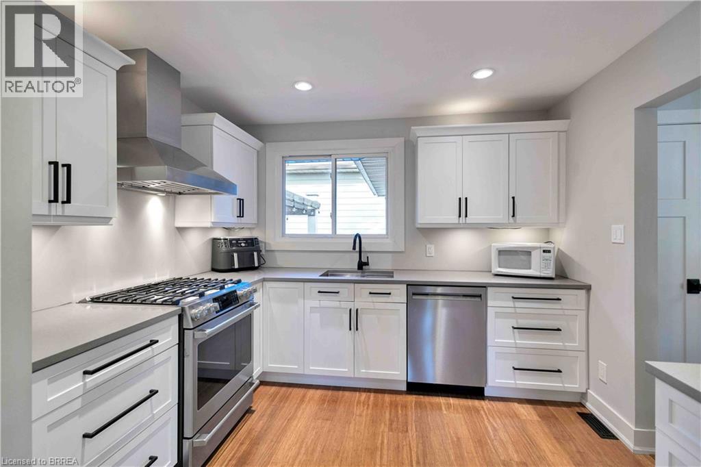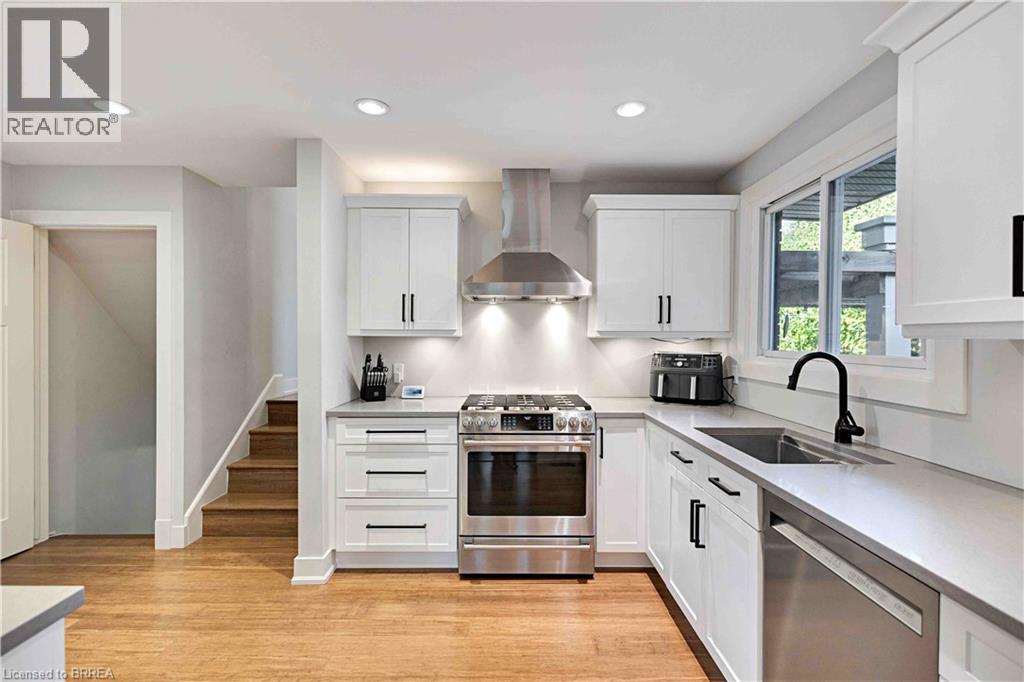 Brier Park spacious 3+2 BR, 2 kitchen, 2BTH 4 lvl backsplit w/heated garage and dbl driveway on quiet street in Beautiful Brier Park, North Brantford. Outstanding 2 bedroom in-law Suite with separate entrance! As you step inside, you'll be greeted by the bright and airy foyer, beautifully appointed with gorgeous newer bamboo hardwood floors that flow seamlessly throughout the main level. The Living Room boasts a stunning bow window with blackout shades, creating the perfect ambiance for relaxation and entertainment. The sleek and modern Dream Kitchen is a culinary haven, featuring an abundance of solid wood cupboards, soft-close drawers, and quartz countertops. With its top-of-the-line stainless steel appliances, duel fuel range, and ultra-quiet dishwasher, this kitchen is perfect for cooking enthusiasts. lots of solid wood cupboards, with dove-tailed, soft close drawers, pantry w/pull outs, deep pot drawers, dimmable potlights as well as undermount/above cabinet lighting. Quartz countertops. Coffee station. Deep sink w/attachments with cutting board, dish rack, colander, etc. Professional 750 cfm range hood. Duel Fuel, gas stove/electric full convection oven w/warming drawer and a plethora of baking options. Fridge has soft close drawers, filtered air system, thawing drawer! Upstairs 3 good sized Bedrooms & 4 pc bathroom. Lower level has 2nd Kitchen w/gas stove, fridge and lots of cupboards, large living Room w/gas fireplace & B/I shelving, large dining room. Completely updated 3 pc Bath & Sep. Entrance walk-up to backyard. Lowest Lvl has 2 good size bedrooms, Laundry Room w/restaurant grade S/S deep sink , washer & dryer. Rear yard has 15' x 14' patio under large pergola, fully fenced yard with pear & apple trees, gas hook up for BBQ. Many updates include: AC, washer & sump pump 2023. Roof, Furnace 2016. Newer wiring/plumbing in main kitchen & 3pc bath, mostly newer vinyl windows, bamboo hardwood, subfloor, baseboards, painting, etc. Move in and enjoy! (id:51158)