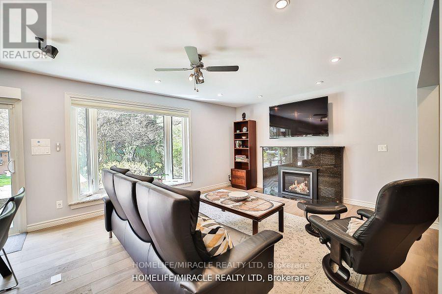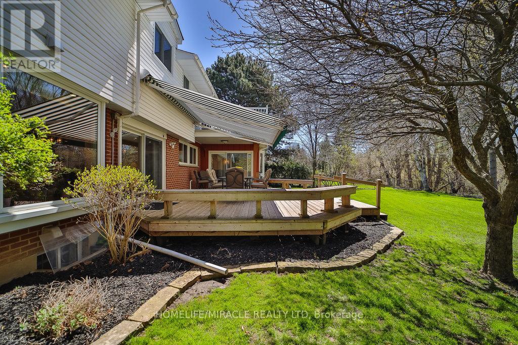 WOW! One Of A Kind Fully Renovated Home Featuring 7 Spacious Bedrooms All On The Second Floor & 4.5 Baths Throughout. Boasting Approximately 5,558 SQFT Of Total Living Space, Situated On A Massive 84.73 x 173.55 Lot Backing Onto Protected Green Space Offering Spectacular Views Of Nature Along With Exclusive Access To Trails From Your Very Own Backyard. This Home Has It All! Oversized Bay Windows Fill The Home With Natural Sun Light & Warmth. The New Custom Kitchen Featuring Cambria Quartz, Shaker Style Cabinetry With Under Mount LED Lighting Accented By Beautiful Back Splash & Adorned By S/S Miele Appliance & A Pot Fill Is A Chiefs Delight. Tons Of Recent Modern Contemporary Updates Throughout, Including New Large Plank Hardwood Flooring To LED Smart Home Lighting That Can Be Controlled From Your Phone, USB Outlets Throughout & Pot Lights With Independent Dimmer Switches. The Oversized Deck With Dual Access Points From Either The Kitchen Or Dinning Room Is An Entertainers Dream, Featuring A Sitting Area With Built In Lighting & Overhead Powered Awning, It'll Never Rain On Your Party Again. Dual Stair Cases Take You Up To A Primary Bedroom Boasting A Resort Like En-suite With Heated Floors, Overhead Rain Shower & Skylight Over The Beautiful Soaker Tub. Step Out To The Spacious Private Terrace Overlooking The Massive Backyard With Unobstructed Views Of Nature, Great For Bird Watching, Or Relaxing In The Evening With Your Favourite Book. The 6 Additional Rooms Offer Tremendous Flexibility For Growing Families, To Hosting Your Favourite Guests. Den On Main Floor Can Be Used As 8Th Bedroom. This Unique Home Shows Pride Of Ownership & Character Throughout. Double Car Garage & A Stately Circular Driveway With No Sidewalk To Obstruct Provides A True Front Courtyard Experience. Dare To Compare, There Is No Other Home In Brampton That Offers This Level Of Sophistication, Lot Size, Space, & Exclusivity. This Home Offers Tremendous Value For Growing Families, To Savvy Buyers. (id:51158)