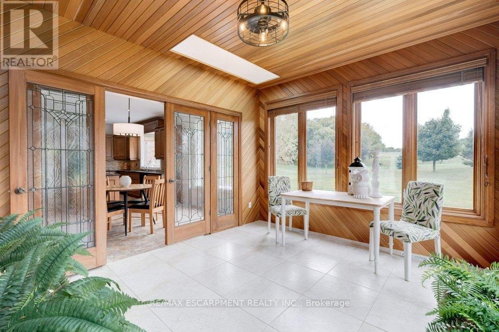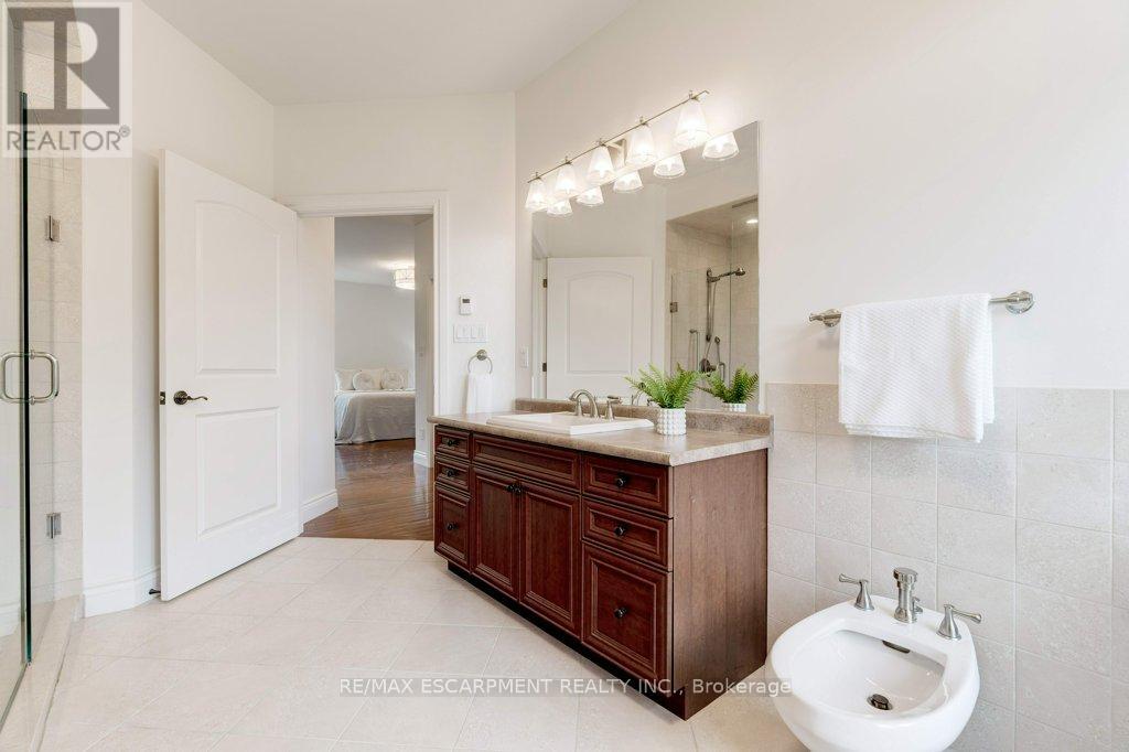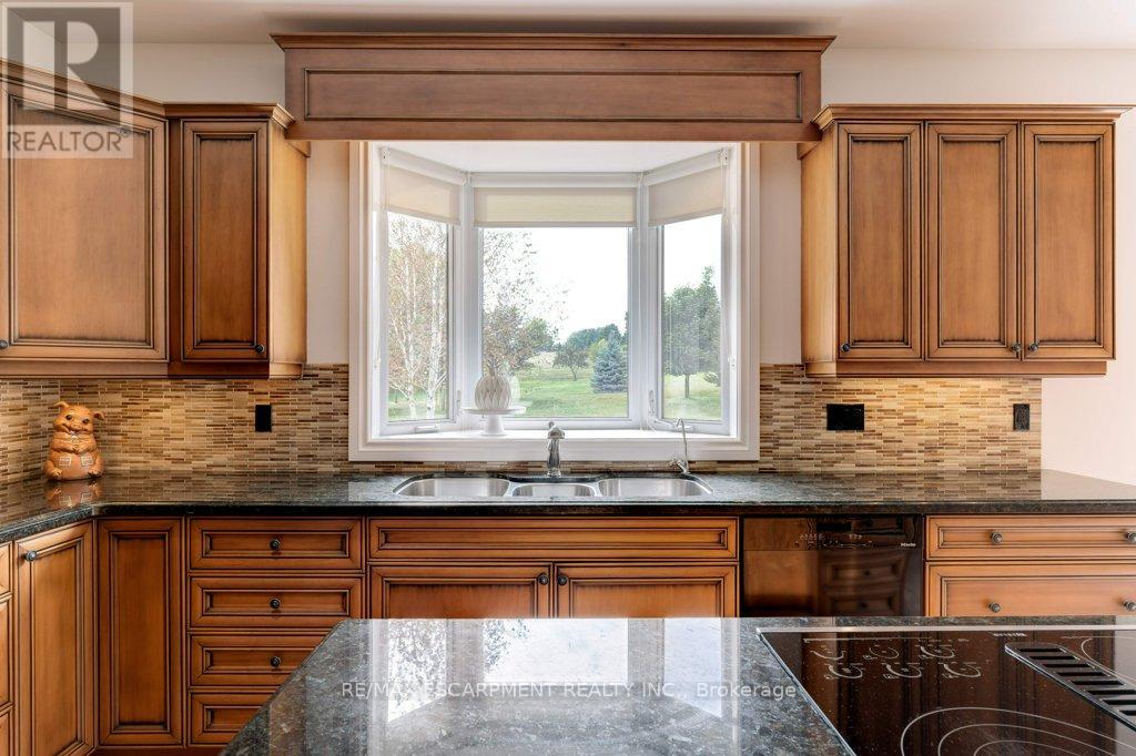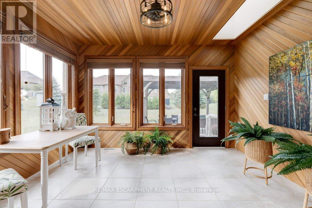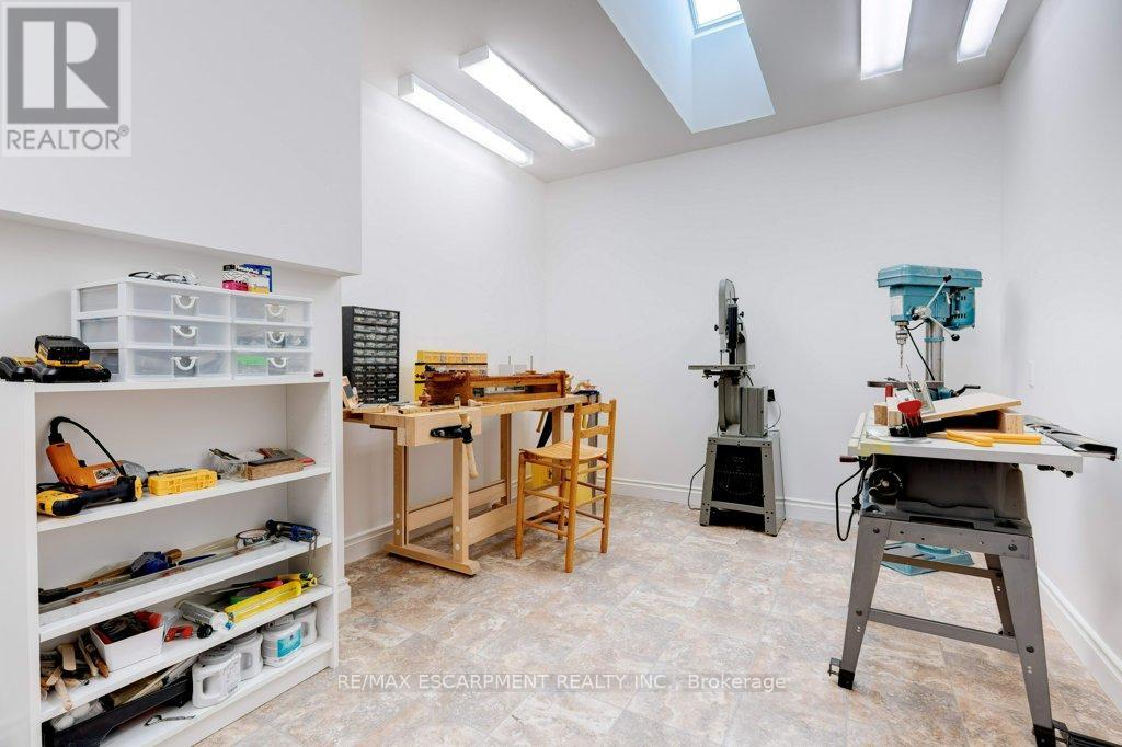 Welcome to over 7,000 total square feet in one of the areas most sought-after estate neighbourhoods just minutes from Spencer Gorge Conservation Area. This home doesn't just check boxes, it rewrites the list. Step inside to a spacious foyer with a walk-in closet that sets the tone for the expansive rooms and views to come. The main floor is an entertainers dream with a huge living room, elegant dining room with coffered ceiling, sunroom with walk-out to the patio, and a family room anchored by a cozy gas fireplace. The large kitchen steals the show with generous backyard views and room to create any meal you can imagine. Finished entertaining? Retreat to the primary suite the size of some condos - complete with his-and-her walk-in closets and not one, but two spa-worthy ensuites with heated floors. Another main floor bedroom also has its own ensuite, perfect for guests or extended family. Upstairs adds two large bedrooms, a bonus room, a solar-tube lit four-piece bathroom, and even a walk-in attic for storage. A commercial-grade washer/dryer has your back when laundry day comes. Car lover? The three-car garage with exposed aggregate driveway includes a heated workshop and wheelchair lift for accessibility. Outside, enjoy 1.4 acres of privacy and garden views. The basement with over 3,000 square feet is ready for your theatre, gym, or wine cellar. Efficient geothermal heating/cooling, two water heaters, reverse osmosis, and 400-amp service make you future-ready. RSA. (id:51158)