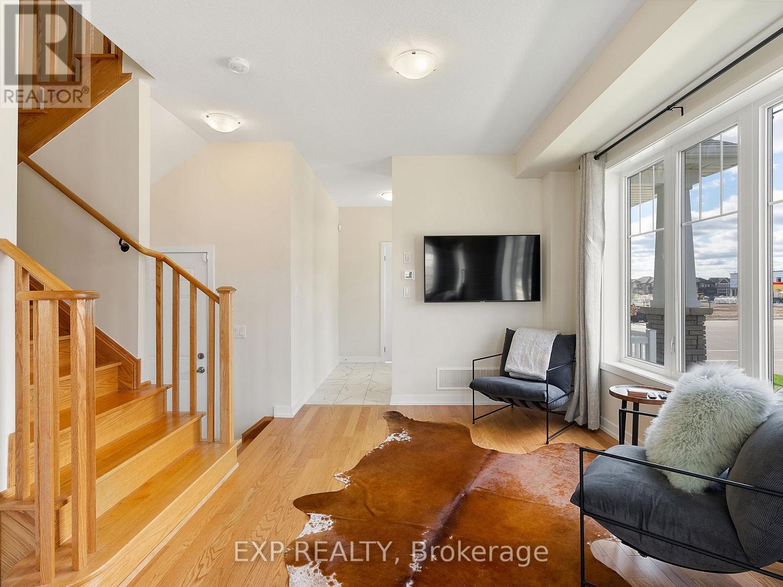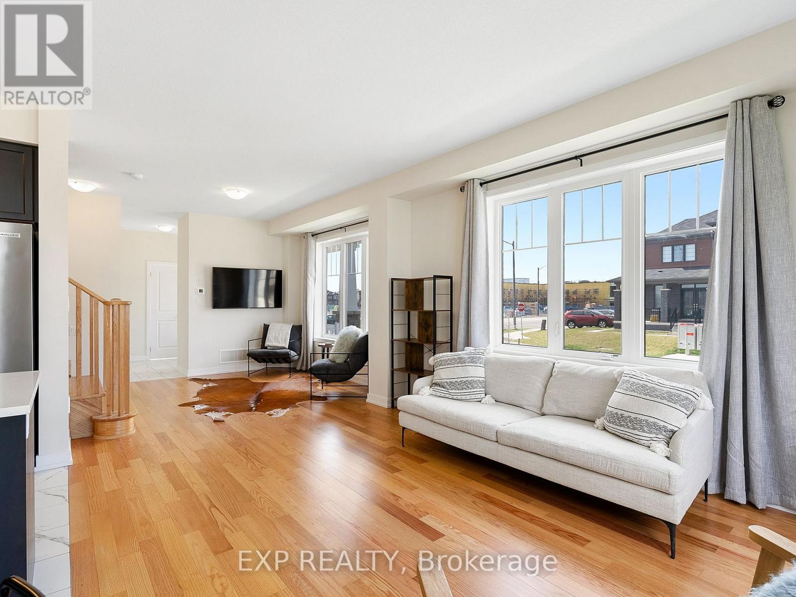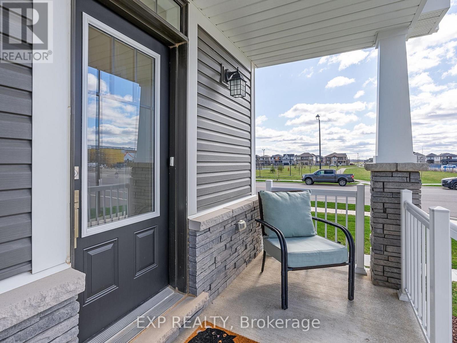 Discover this move-in ready corner-unit freehold townhome, built in 2022 and nestled in a growing, family-friendly neighbourhood just 30 minutes from Hamilton. Step inside to find thoughtful upgrades throughout, including quartz countertops, maple kitchen cabinets, upgraded appliances, and a single pot light -- providing an easy opportunity to install additional lighting. A striking oak staircase leads to the upper level, where the primary bedroom features a custom vanity with added height for enhanced comfort. The unfinished basement includes a rough-in for a 3-piece bathroom, offering future potential to expand your living area. Enjoy the practicality of an attached single-car garage and the bonus of having a park with tennis courts directly across the street. With a new Catholic and public school, as well as a community centre featuring 49 childcare spaces newly completed, this is a fantastic opportunity to become part of a welcoming and rapidly developing community. (id:51158)