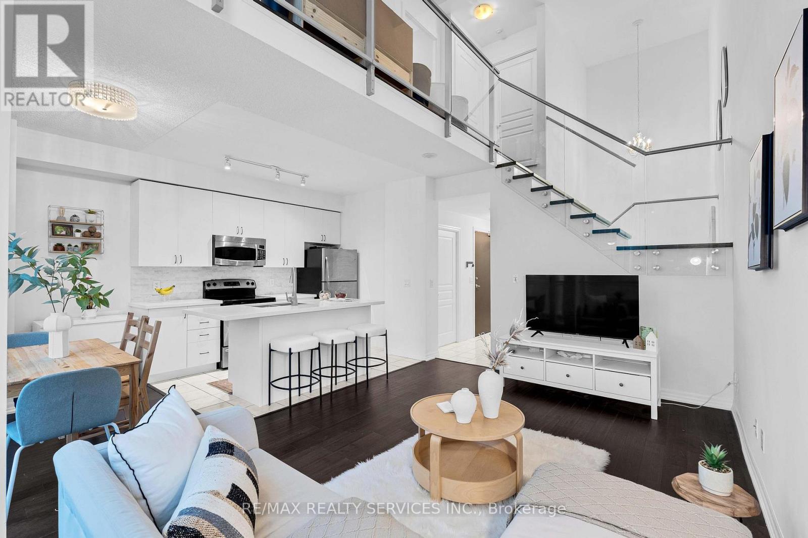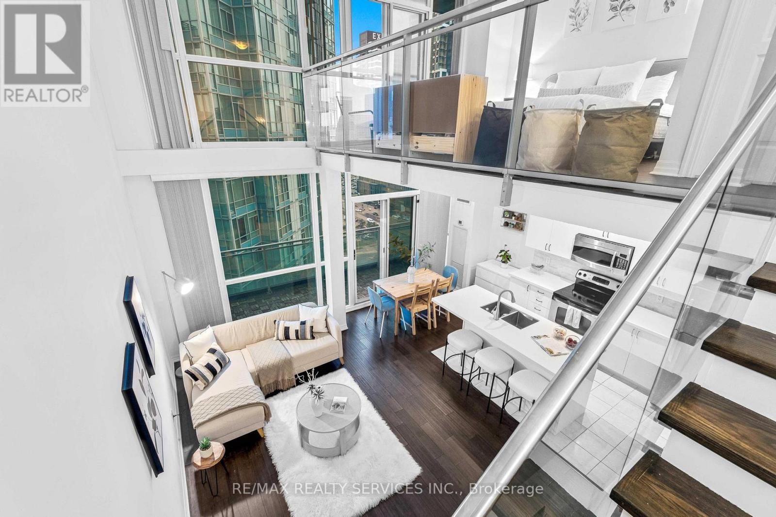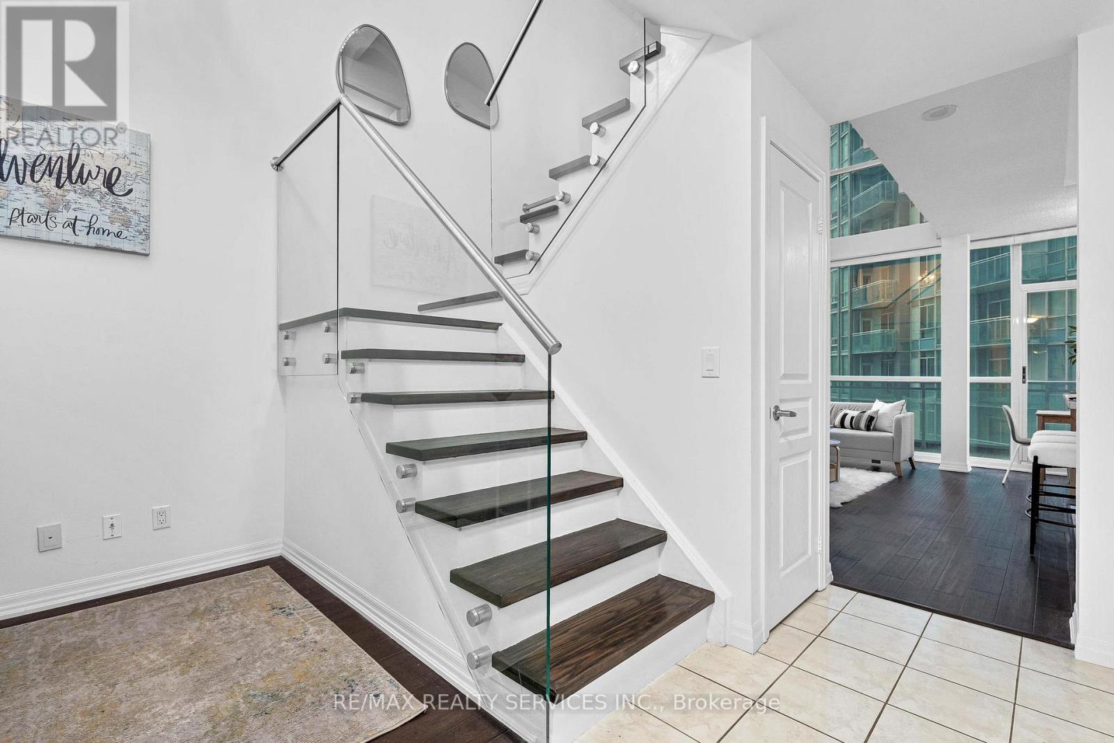 $830 MonthlyWelcome to Unit 1701 at the iconic Onyx Condos, where luxury meets urban sophistication in this rare 2-storey loft. Bathed in natural light through soaring 18-ft floor-to-ceiling windows, this stunning residence offers an open-concept design perfect for entertaining or relaxing in style. The chef-inspired kitchen features quartz countertops, stainless steel appliances, and modern finishes that flow seamlessly into the spacious living and dining area with a walkout to a private balcony showcasing city views. Upstairs, the loft-style primary suite includes a spa-inspired ensuite and a generous walk-in closet, creating a serene retreat. Elegant hardwood floors, a custom oak staircase with glass railings, and upscale finishes elevate the space throughout. Enjoy world-class amenities including a 24-hour concierge, rooftop terrace, pool gym, sauna, and party room. Ideally located steps from Square One Shopping Centre, Celebration Square, and the Living Arts Centre, with endless dining, entertainment, and transit options right at your doorstep, this is contemporary Mississauga living at its finest. (id:51158)