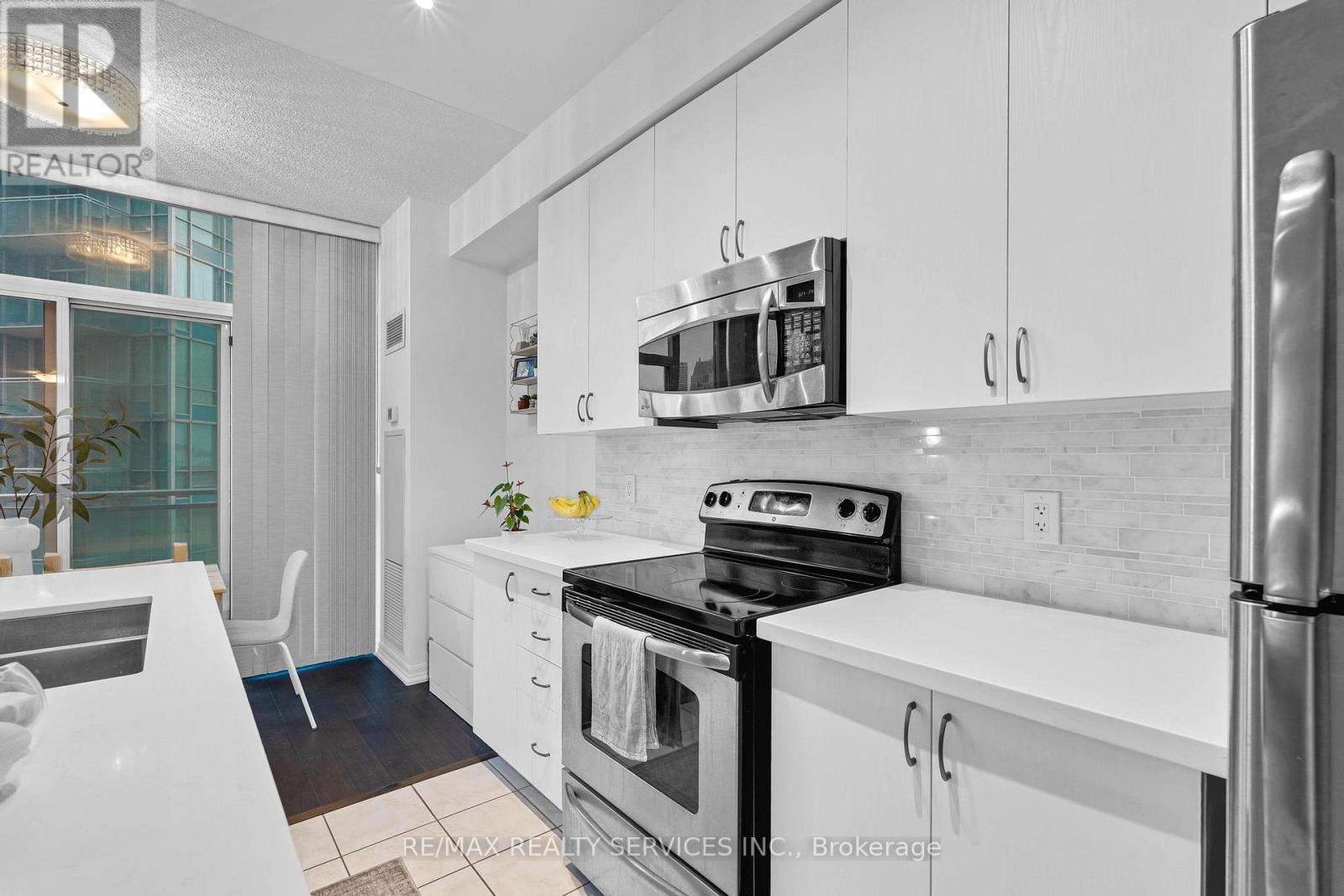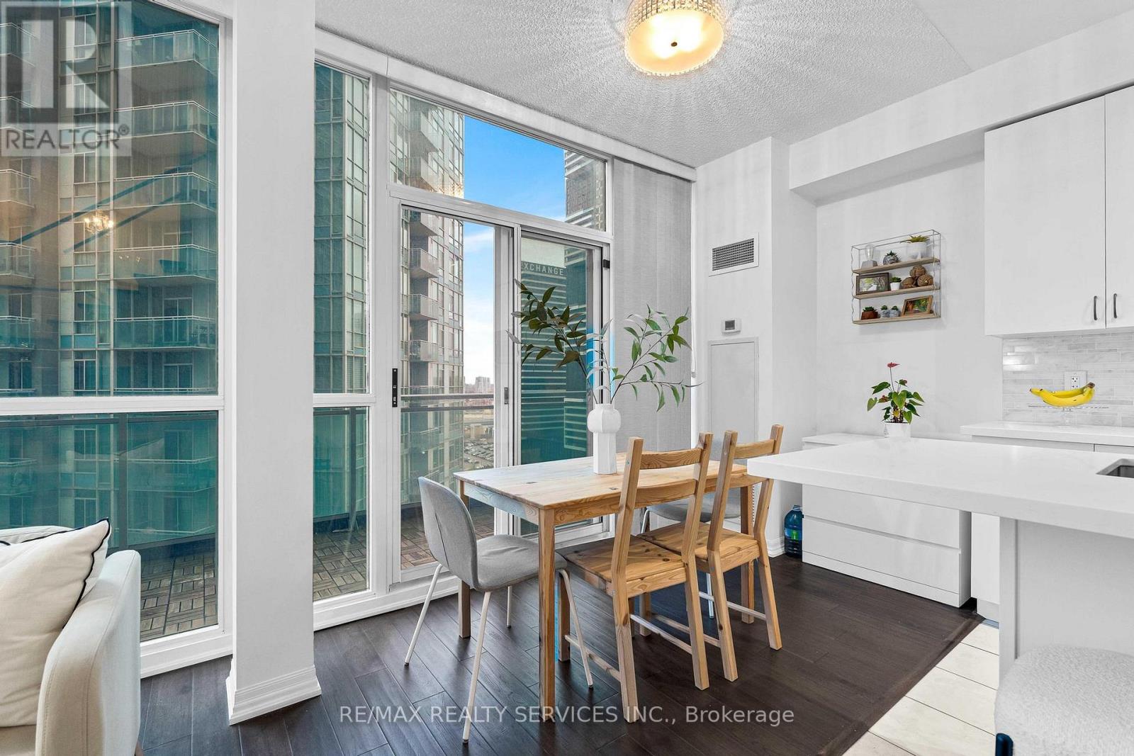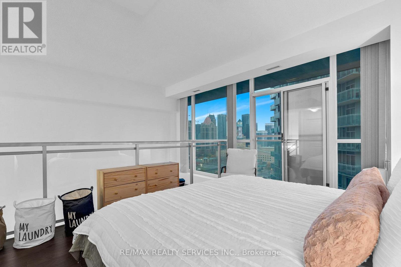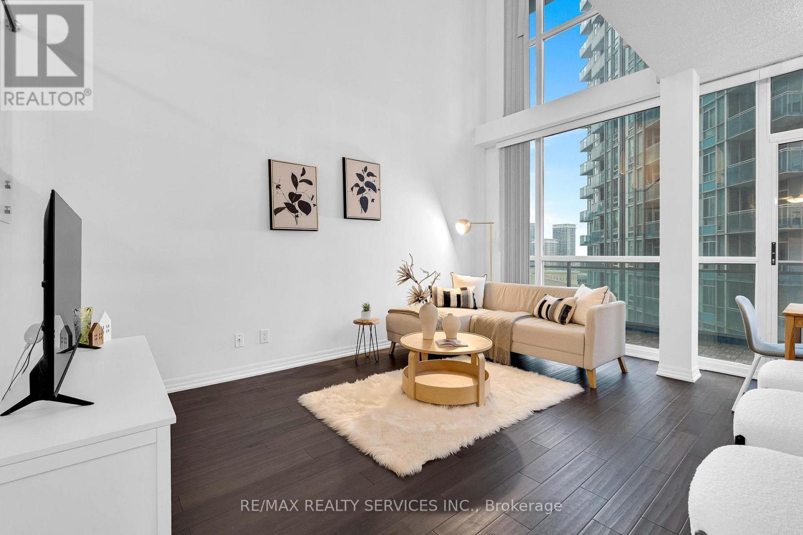 $830 MonthlyWelcome to Unit 1701 at the iconic Onyx Condos, where luxury meets urban sophistication in this rare 2-storey loft. Bathed in natural light through soaring 18-ft floor-to-ceiling windows, this stunning residence offers an open-concept design perfect for entertaining or relaxing in style. The chef-inspired kitchen features quartz countertops, stainless steel appliances, and modern finishes that flow seamlessly into the spacious living and dining area with a walkout to a private balcony showcasing city views. Upstairs, the loft-style primary suite includes a spa-inspired ensuite and a generous walk-in closet, creating a serene retreat. Elegant hardwood floors, a custom oak staircase with glass railings, and upscale finishes elevate the space throughout. Enjoy world-class amenities including a 24-hour concierge, rooftop terrace, pool gym, sauna, and party room. Ideally located steps from Square One Shopping Centre, Celebration Square, and the Living Arts Centre, with endless dining, entertainment, and transit options right at your doorstep, this is contemporary Mississauga living at its finest. (id:51158)