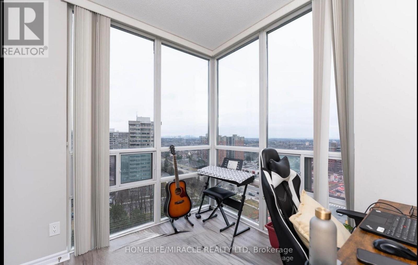$830.92 MonthlyExperience elevated living in this premium south-east facing suite with unobstructed panoramic views of downtown Toronto and Lake Ontario. This spacious 2-bedroom plus sun-filled den, 2-bath residence showcases a highly efficient layout with all rectangular rooms, maximizing usable space and design flexibility. The primary retreat features a fully customized walk-in closet and a spa-inspired 4-piece ensuite. Floor-to-ceiling windows bathe the home in natural light, complemented by 9-ft ceilings and elegant hardwood flooring in the living and dining areas. The bright sunroom/den offers a refined space for a home office or lounge. Thoughtfully upgraded with custom shelving in all wardrobes and bathrooms for exceptional, organized storage.All-inclusive maintenance fees cover heat, hydro (electricity), water, parking, building insurance, common elements, and car wash facilities - enjoy true worry-free living with no extra utility costs. Ideally located steps from Square One Shopping Centre, schools, GO Transit, public transit, and the upcoming LRT, in one of the city's most sought-after urban communities. (id:51158)