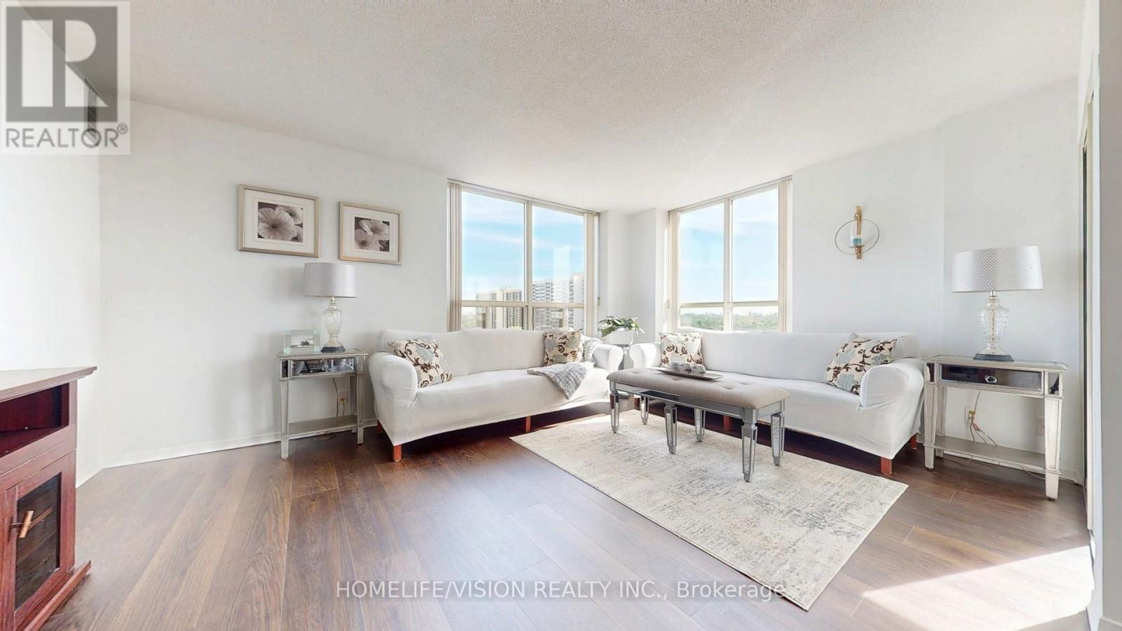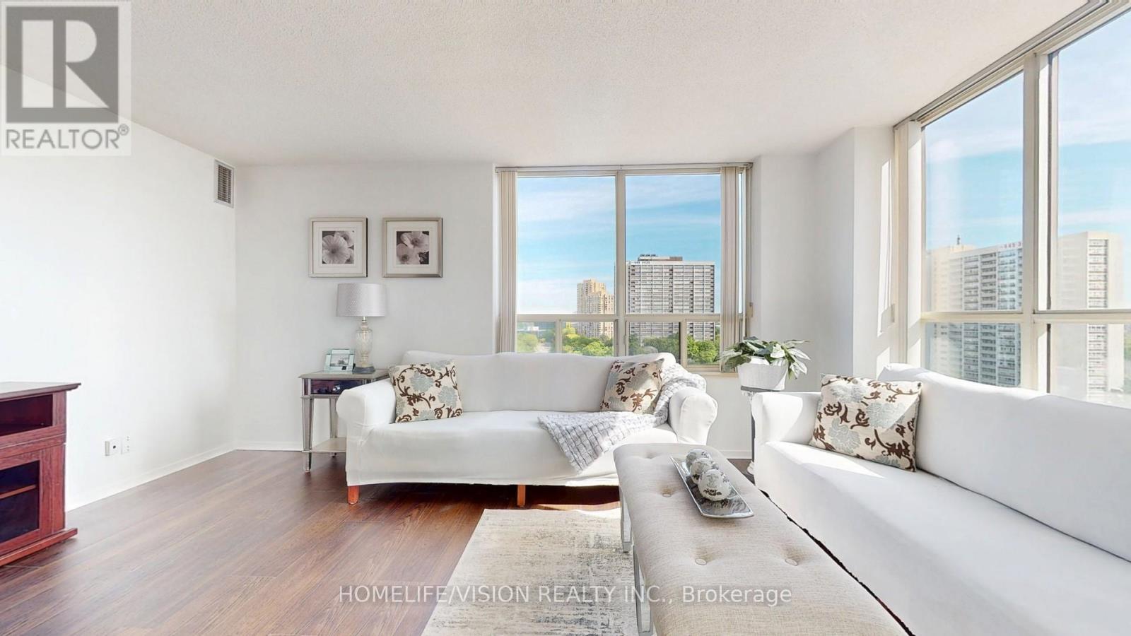 $1,160.30 MonthlyWelcome to suite #1706, located in Palisades. This is a large, beautifully renovated corner suite, with one of the best layouts available. It offers tons of light, amazing views, 24 hr. gatehouse security, and easy access to the DVP, Downtown, and the 401. This suite exemplifies pride of ownership. 2+1 bedrooms, 2 washrooms, open balcony, and a large eat in kitchen. New flooring, Paint, Tiles, and a must see magazine worthy washroom and laundry. Come see for yourself, and be amazed. electric fireplace/mantle included. (id:51158)
