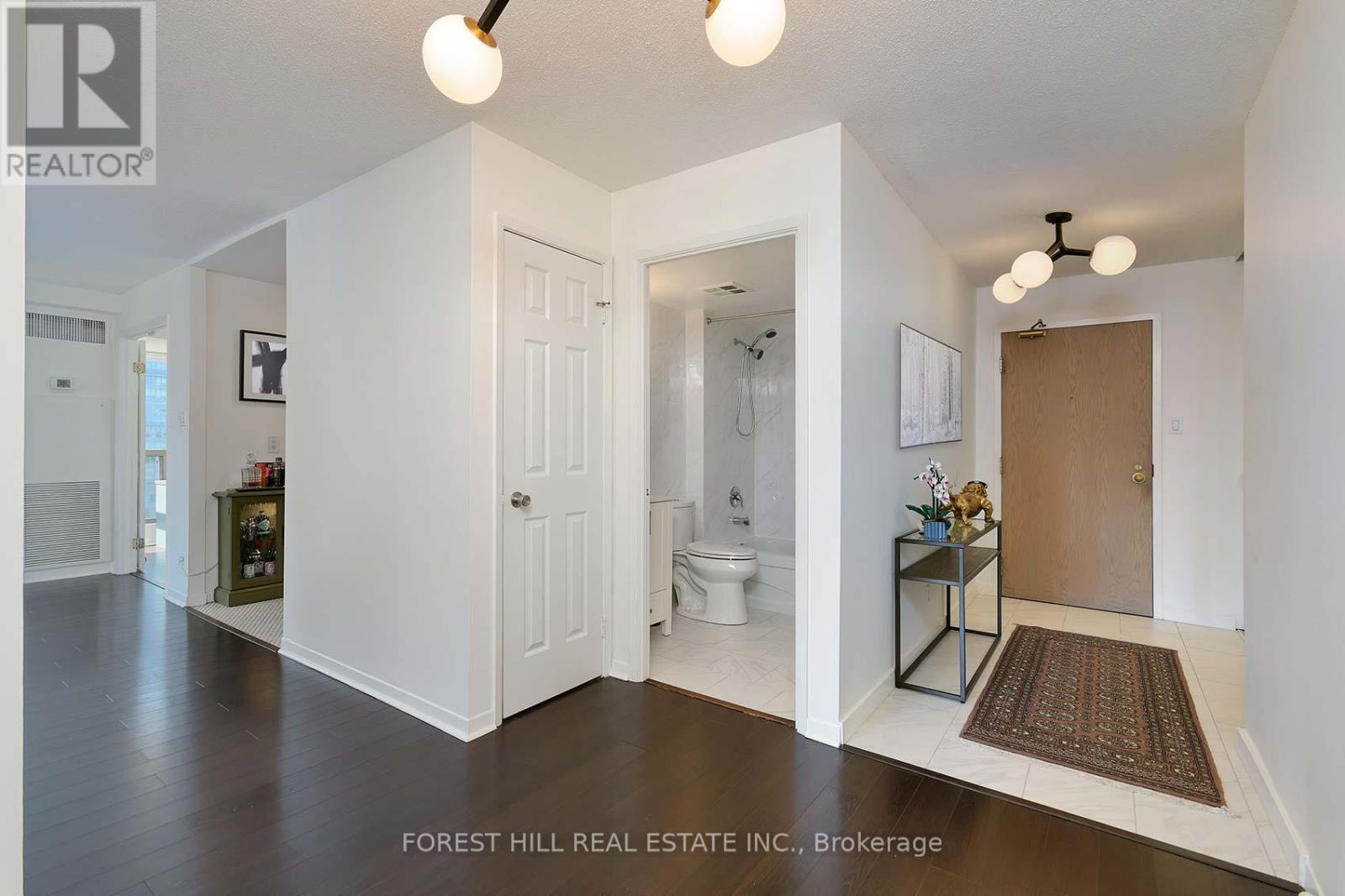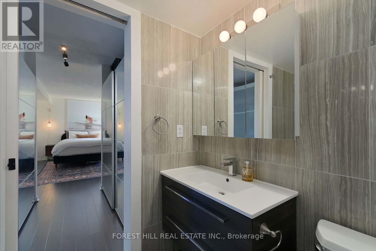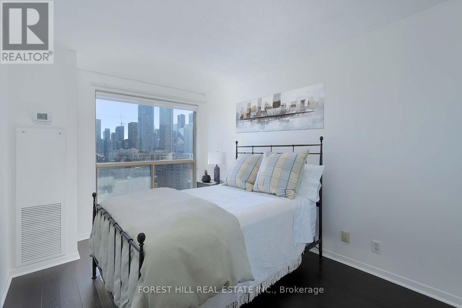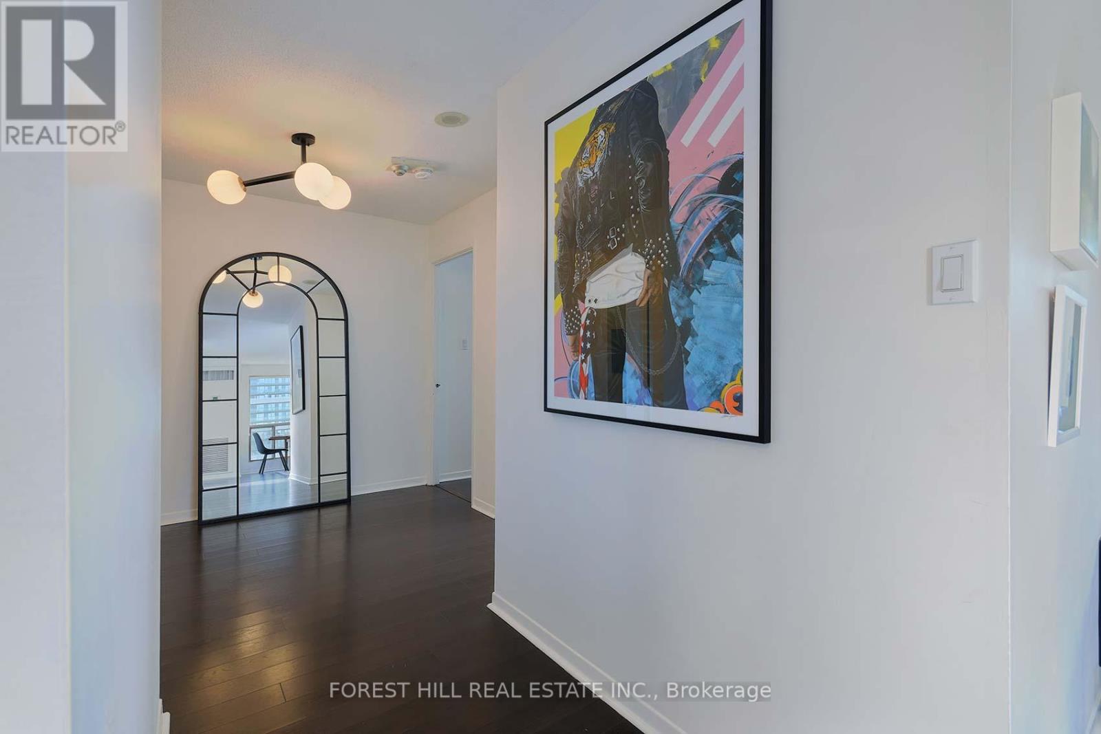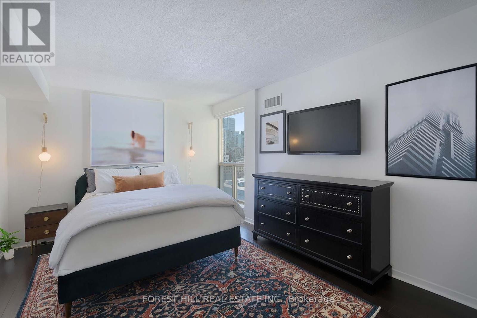 Welcome to your new lifestyle at the Metropolitan Essex, a condominium nestled in a prime Toronto location steps to all urban conveniences. Meticulously maintained, this wonderfully bright and spacious 1170 square foot corner suite with a south west exposure and expansive windows offers an abundance of natural light and tremendous city views. A contemporary aesthetic that is equally stylish and functional. A well designed layout with an open concept living and dining room, 2 bedrooms, a den, and 2 bathrooms lending itself seamlessly to comfortable family living and easy entertaining. The generously sized primary bedroom provides a lovely retreat. Two double closets with mirror panel sliding doors bridge the space between the bedroom and the 4 piece ensuite. The second bedroom is also generously sized with ample closet space. Enjoy the designer details in the tastefully renovated kitchen with full size stainless steel appliances and quartz countertop. The den serves as a wonderful work from home space or can be used as a third bedroom. Indulge in the ultimate convenience of ensuite laundry, a well located underground parking spot next to the entrance door to the elevator, and an underground storage locker. Amenities include 24hour concierge, an indoor pool, sauna, squash court, and an exercise room. Located in an established building with maintenance fees that include hydro, water, heat, parking, locker, common elements, and building insurance. Excellent proximity to transit, groceries, cafes, restaurants, green space, Toronto Metropolitan University, and U of T. What are you waiting for? Truly a special opportunity! (id:51158)