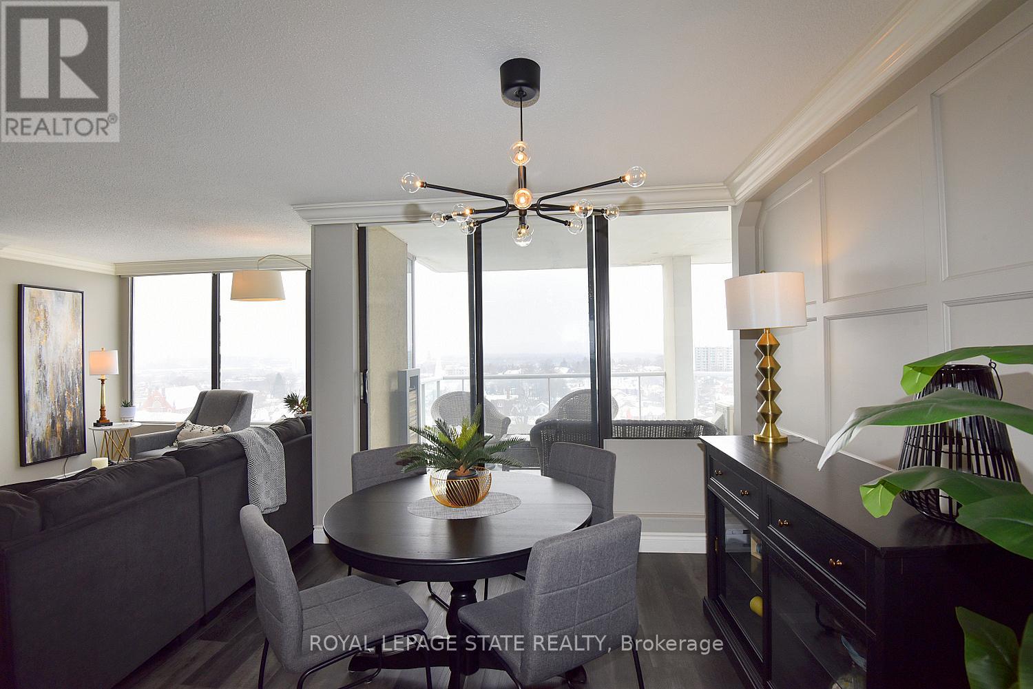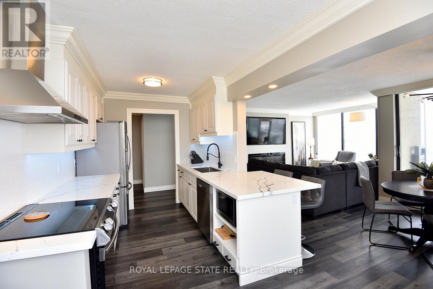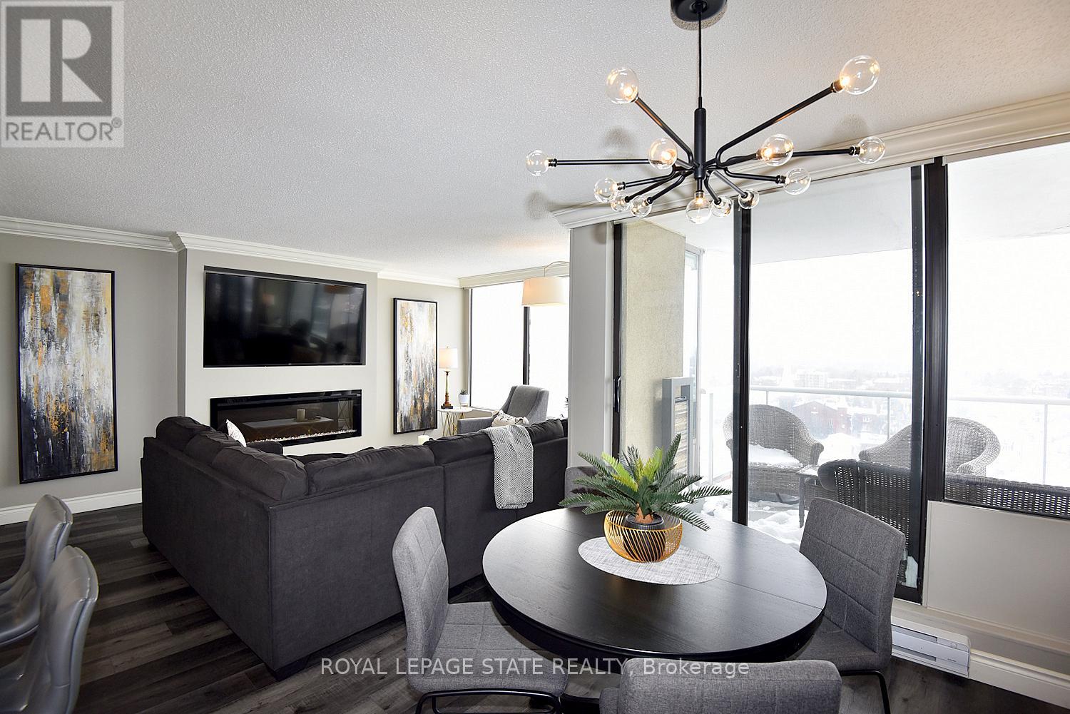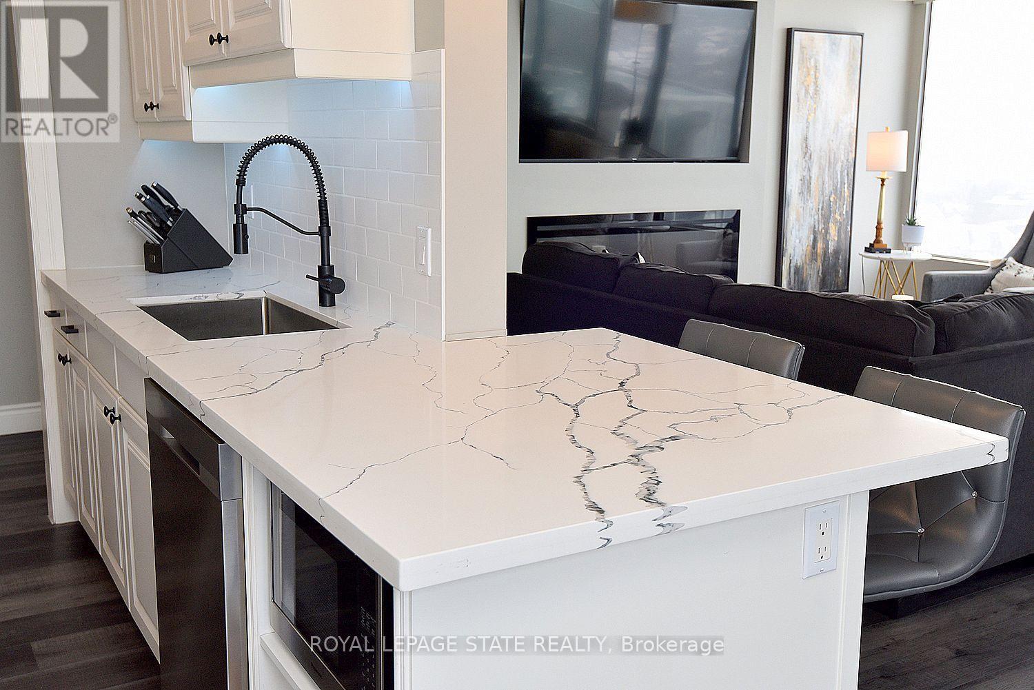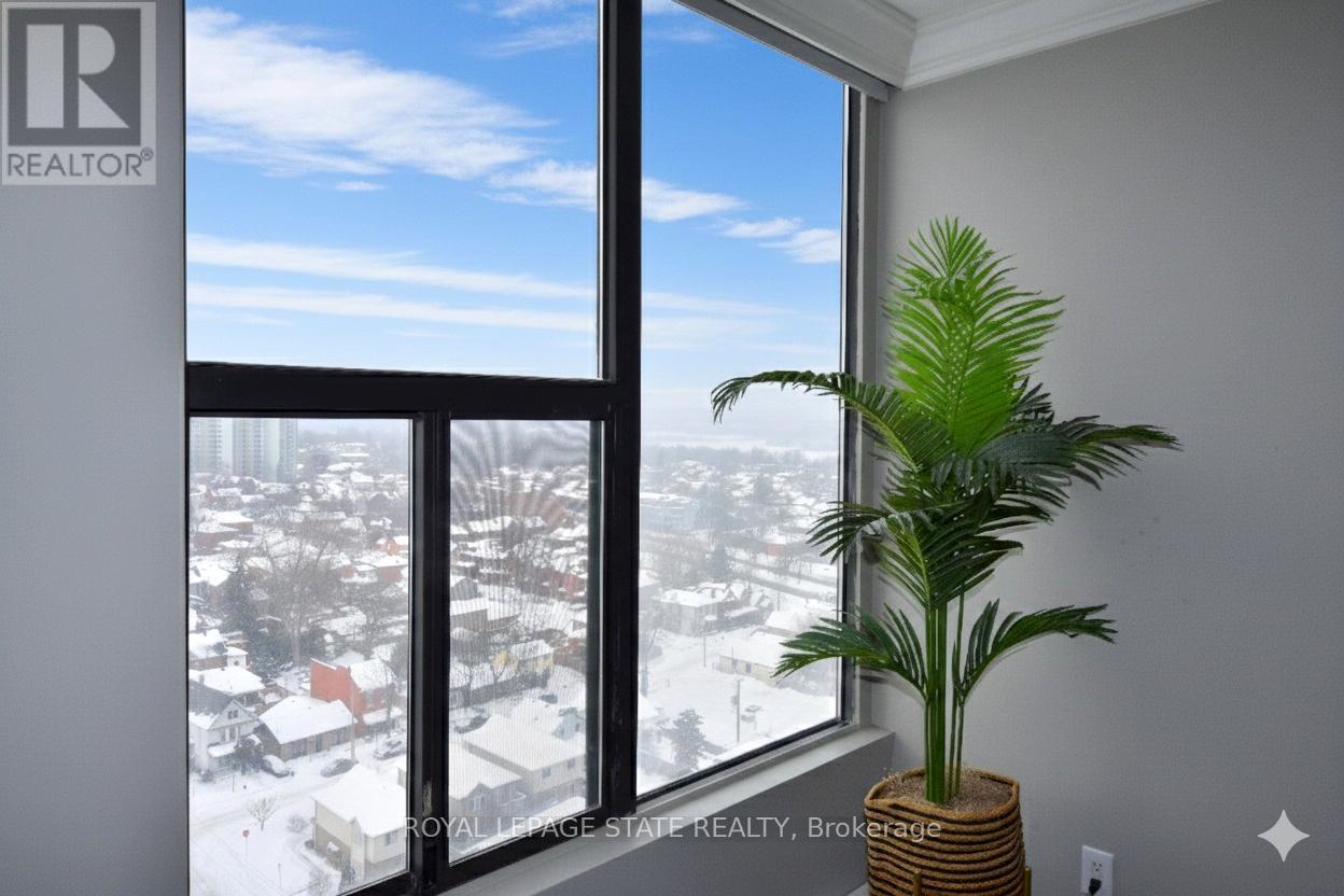 $1,102.90 MonthlyWelcome to your new address! Perched on the 17th floor in one of Hamilton's finest condo buildings, you'll find unit 1707, boasting 3 Bedrooms, 2 Full Baths, 1,265 sq ft of impeccably updated luxury, all the while highlighting a terrific walk score of 97! One look and you'll be smitten! Features include: Corner unit, with Open-Concept Layout, perfect for entertaining; Central Heating & Air Conditioning (Heat Pump 2021); Living Room with ambience-enhancing Fireplace; Dining Room with chic accent wall; modern Kitchen featuring a Breakfast Bar, Quartz countertops and Stainless-Steel Appliances; Luxury vinyl flooring throughout; Elegant Crown Moulding; remote controlled Blinds, and more! Did I mention the stunning north-west views? Enjoy a beverage on your open balcony while taking in a spectacular sunset, and a bird's eye view of Hamilton's West Harbour! All windows are scheduled to be replaced in March of 2026.In-suite Laundry, underground Parking and Locker too! Located minutes to Downtown, TD Coliseum, Restaurants, Shopping, Parks and more. Put this "move in ready" unit on your "must see" list today! (id:51158)