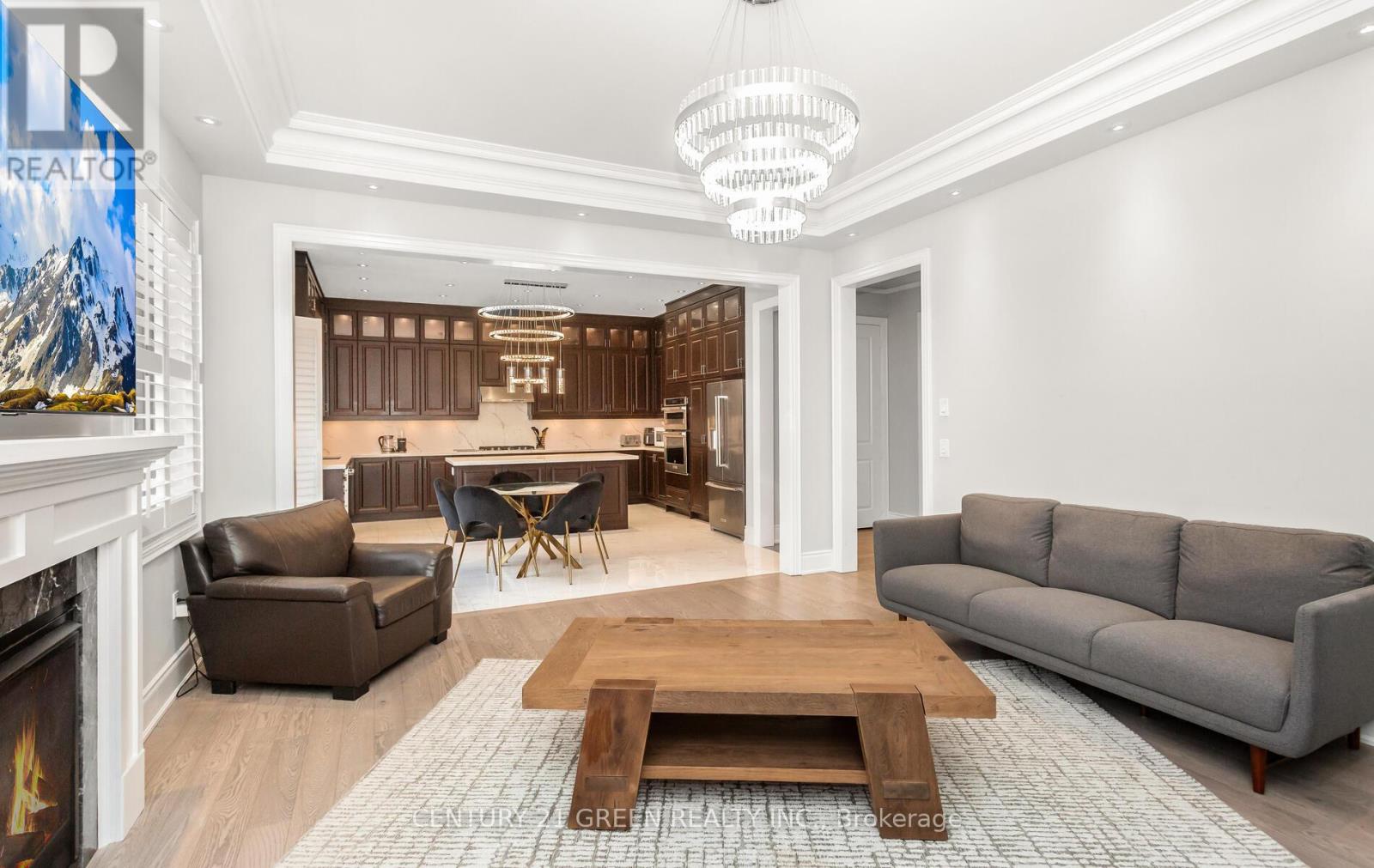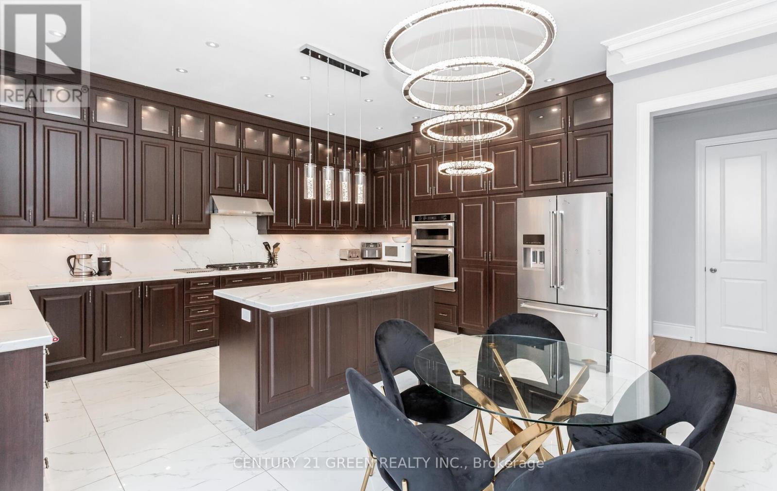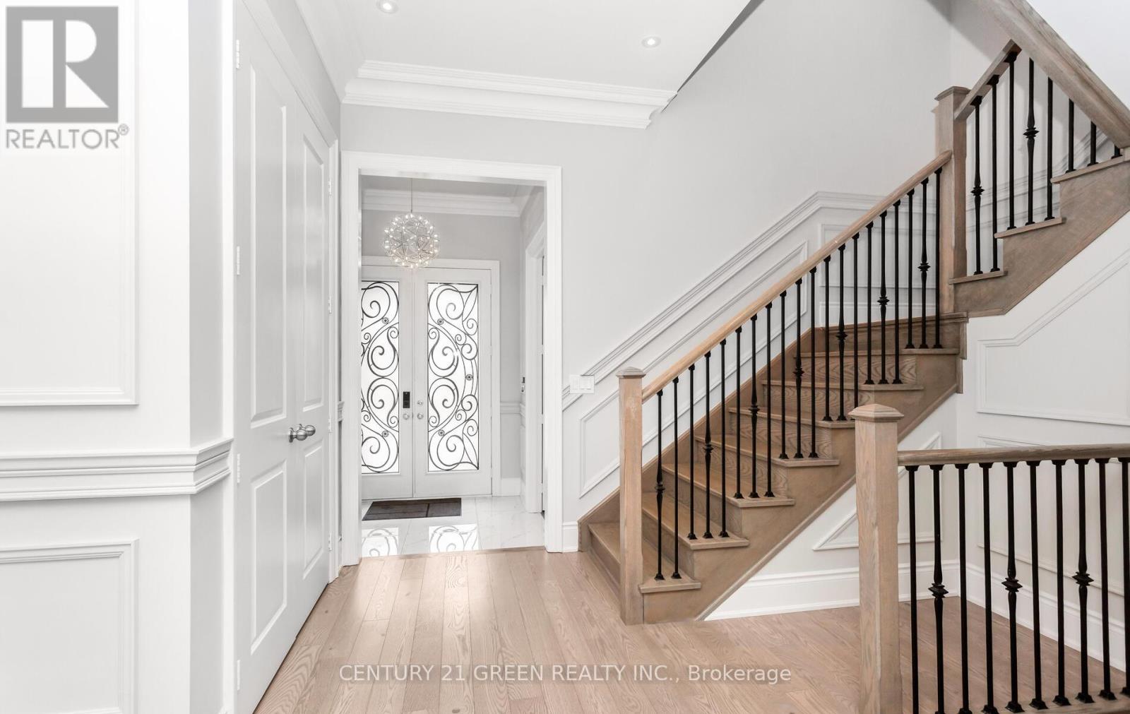 Exquisite gem in the highly sought-after Ford community. Offering approx. 5,000 sq. ft. of living space with 5+3 bedrooms and 5+1 baths. Elegant main level features wide-plank hardwood floors, wainscoting, 10' ceilings with crown Moulding and custom LED chandeliers with pot lights throughout. Eat-in gourmet kitchen with premium KitchenAid appliances, quartz countertops, oversized centre island, and extended cabinetry. Second level boasts five spacious ensuite bedrooms, including a primary retreat with spa-inspired 5-pc bath. Legal 2-bedroom + den basement apartment with separate entrance, full kitchen, quartz counters, and high-end stainless steel appliances-ideal for in-laws or rental income. Meticulously landscaped with full stone interlock and private cedar-lined backyard. A must-see family home (id:51158)