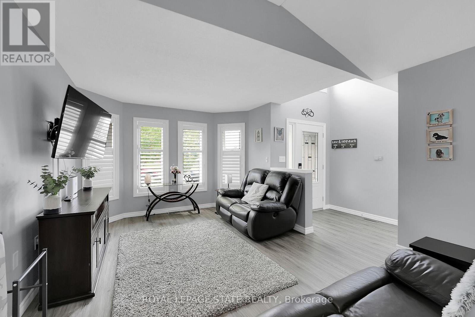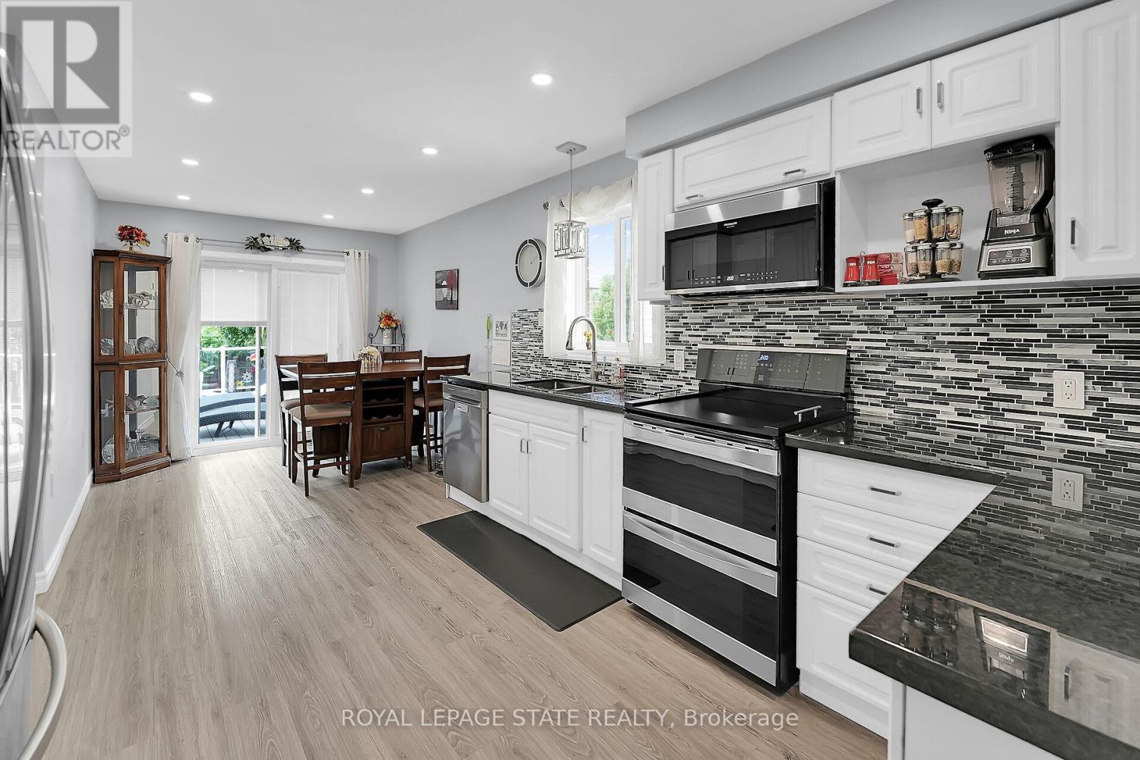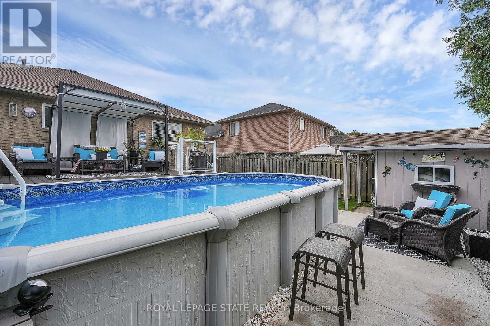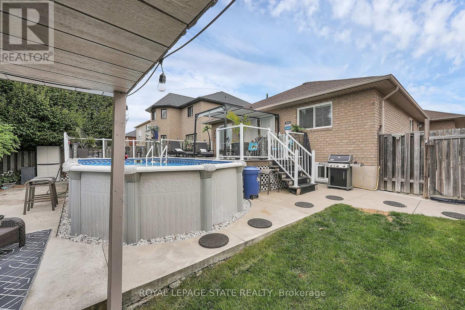 FULLY FINISHED BUNGALOW WITH ABOVE GROUND POOL AND DOUBLE GARAGE - Welcome to this meticulously maintained, fully finished bungalow. Boasting over 2,500 square feet of thoughtfully designed living space, this residence is an entertainer's dream. Step inside and be greeted by the light-filled, open-concept family and dining area, where updated lighting and durable luxury vinyl plank flooring create a warm and welcoming atmosphere. The spacious, eat-in kitchen is a chef's delight, featuring an abundance of sleek cabinetry, solid surface countertops, and high-end stainless-steel appliances. From the kitchen, walk out to your private backyard oasis. A multi-level entertaining area awaits, complete with a concrete patio and a beautiful composite deck with elegant glass railings. Host summer barbecues, relax on the loungers, or cool off in the heated above-ground pool. For those seeking a shady retreat, the gazebo offers a perfect escape, all within steps of the convenient pool house. The main floor provides a peaceful retreat with a generous primary bedroom, a walk-in closet, and a luxurious 4-piece ensuite with a deep soaker tub. A second bedroom, a full 4-piece bath, and a main-floor laundry room add to the home's functional and effortless layout. The fully finished lower level offers an incredible extension of the living space. Discover a large recreation room perfect for family movie nights, a versatile flex space ideal for a gym or home office, and two additional bedrooms with a shared 3-piece bathroom (one with ensuite privilege), offering privacy and comfort for guests or family. Enjoy peace of mind with recent updates, including new windows and doors, a high-efficiency furnace, a new dishwasher, and an updated pool heater, pump, and automatic vacuum. Located in a desirable neighbourhood with access to schools, shopping, and the scenic Eramosa Karst Conservation Area, this home also offers quick highway access via the Red Hill Valley Parkway and the Linc. (id:51158)