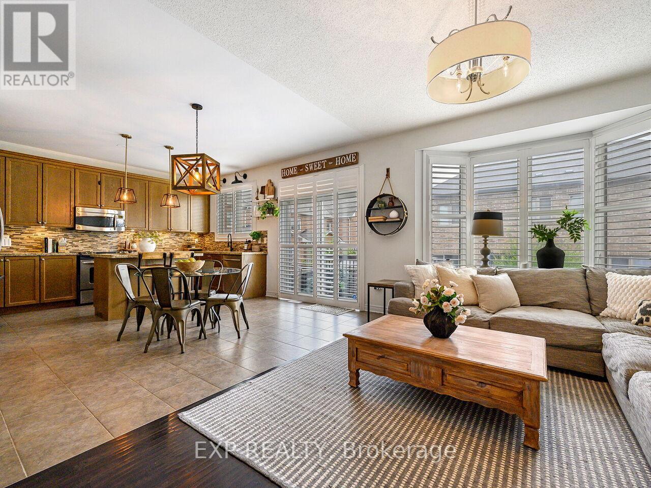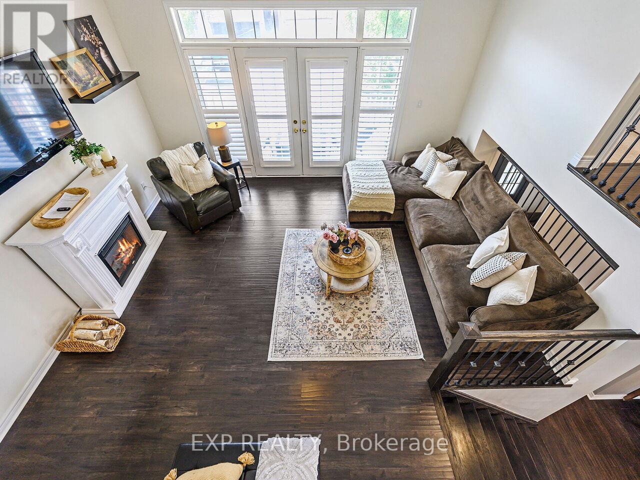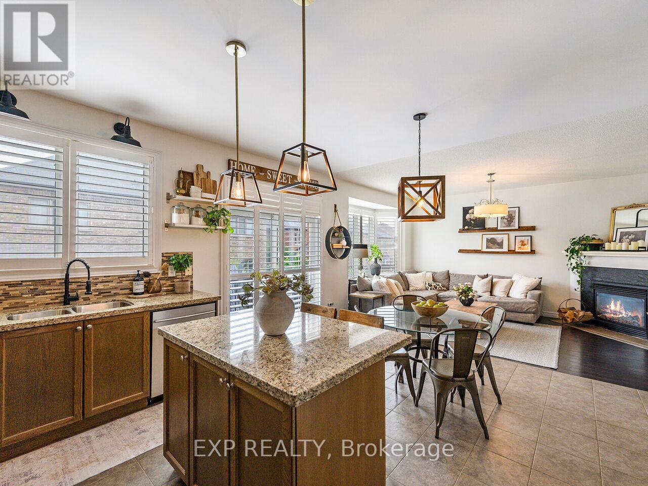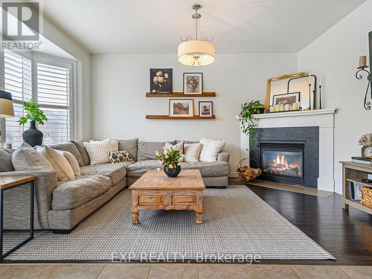 Nestled in a pristine Milton neighbourhood, this stunning 4-bedroom detached family home offers just under 2,500 sq.ft. of beautifully designed above-grade living space. With its blend of style, comfort, and functionality, its perfect for a growing family. Inside, you will find oak stairs with wrought iron spindles, 9 ceilings, and separate formal living and dining rooms. The impressive great room boasts soaring open-to-above ceilings and a walk-out to a covered balcony ideal for relaxing or entertaining. The sunlit family room features a cozy gas fireplace, while the large eat-in kitchen includes stainless steel appliances, granite countertops, a centre island with breakfast bar, pantry, and a bright breakfast area. California shutters throughout add a touch of elegance. Upstairs, the primary suite offers a walk-in closet and 4-piece ensuite. Three additional bedrooms provide ample space for family, guests, or a home office. Outside, enjoy low-maintenance artificial turf, a custom aggregate patio, and a built-in firepit for year-round entertaining. The double-car garage and parking for four on the driveway (no sidewalk!) add convenience. Just steps to Scott Neighbourhood Park & Splash Pad, top-rated schools, and a short walk to downtown Milton, shops, and amenities. Easy access to Hwy 401 and the new Tremaine Rd interchange makes commuting a breeze. Minutes from the Niagara Escarpment, Sherwood Community Centre, the farmers market, restaurants, and conservation areas, this is the ultimate family lifestyle in one of Milton's most desirable communities. (id:51158)