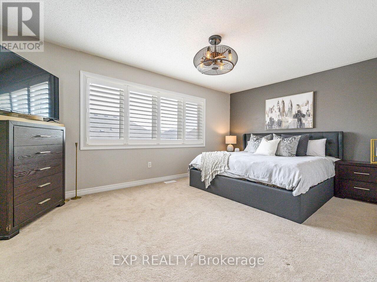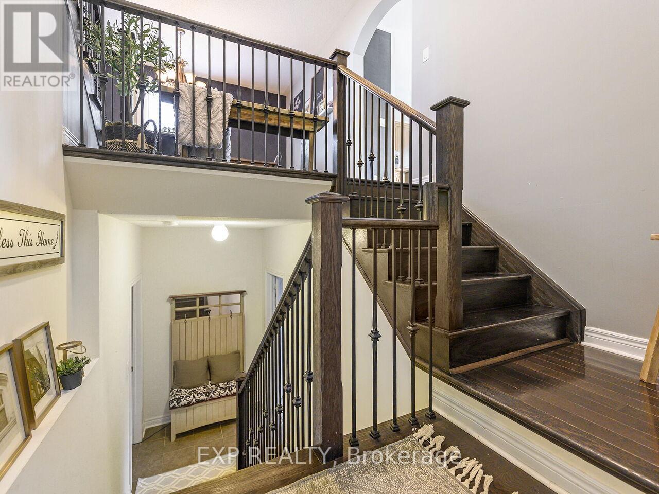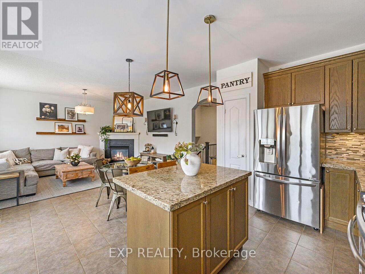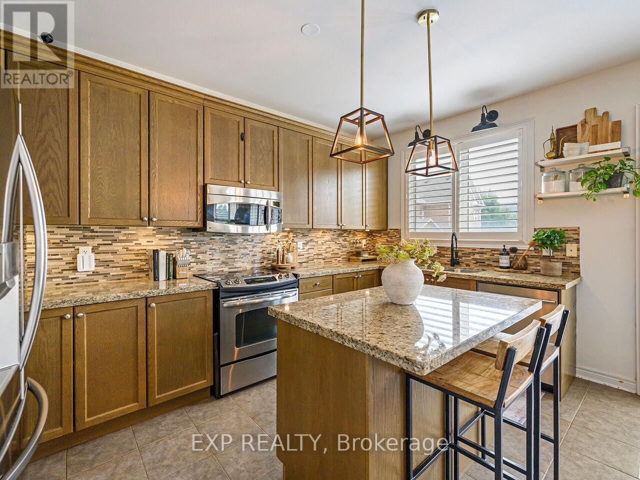 Nestled in a pristine Milton neighbourhood, this stunning 4-bedroom detached family home offers just under 2,500 sq.ft. of beautifully designed above-grade living space. With its blend of style, comfort, and functionality, its perfect for a growing family. Inside, you will find oak stairs with wrought iron spindles, 9 ceilings, and separate formal living and dining rooms. The impressive great room boasts soaring open-to-above ceilings and a walk-out to a covered balcony ideal for relaxing or entertaining. The sunlit family room features a cozy gas fireplace, while the large eat-in kitchen includes stainless steel appliances, granite countertops, a centre island with breakfast bar, pantry, and a bright breakfast area. California shutters throughout add a touch of elegance. Upstairs, the primary suite offers a walk-in closet and 4-piece ensuite. Three additional bedrooms provide ample space for family, guests, or a home office. Outside, enjoy low-maintenance artificial turf, a custom aggregate patio, and a built-in firepit for year-round entertaining. The double-car garage and parking for four on the driveway (no sidewalk!) add convenience. Just steps to Scott Neighbourhood Park & Splash Pad, top-rated schools, and a short walk to downtown Milton, shops, and amenities. Easy access to Hwy 401 and the new Tremaine Rd interchange makes commuting a breeze. Minutes from the Niagara Escarpment, Sherwood Community Centre, the farmers market, restaurants, and conservation areas, this is the ultimate family lifestyle in one of Milton's most desirable communities. (id:51158)