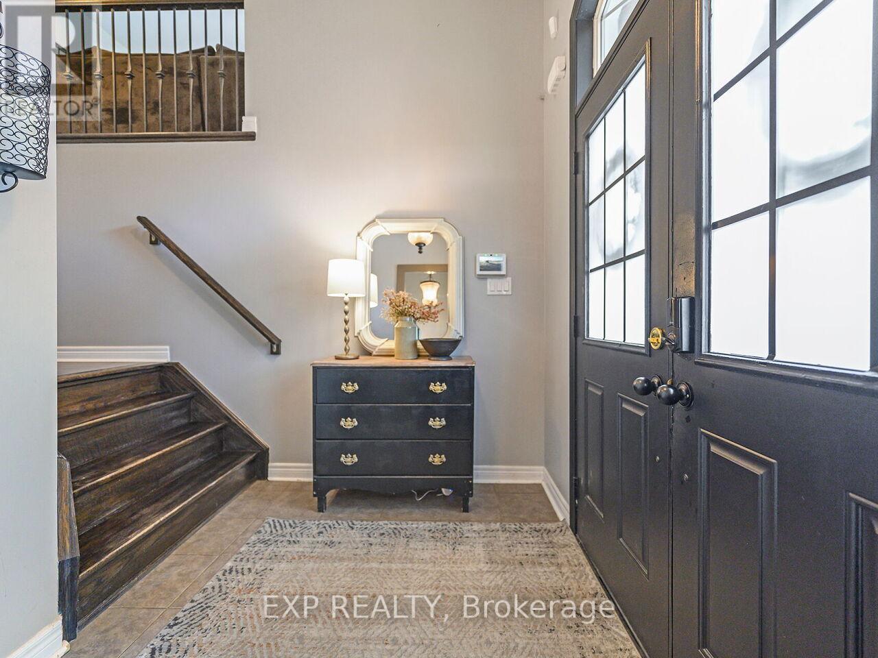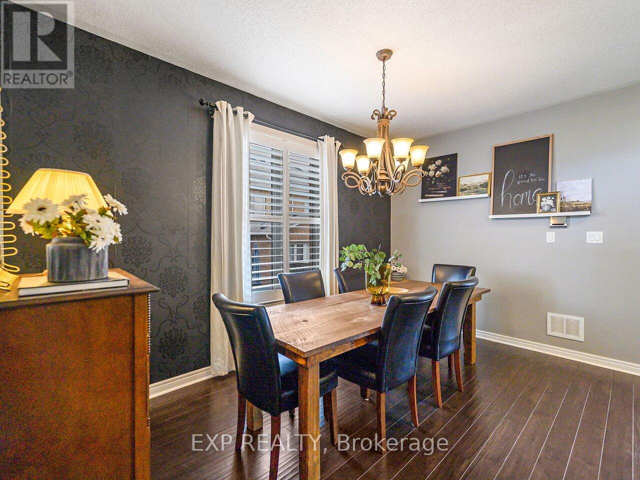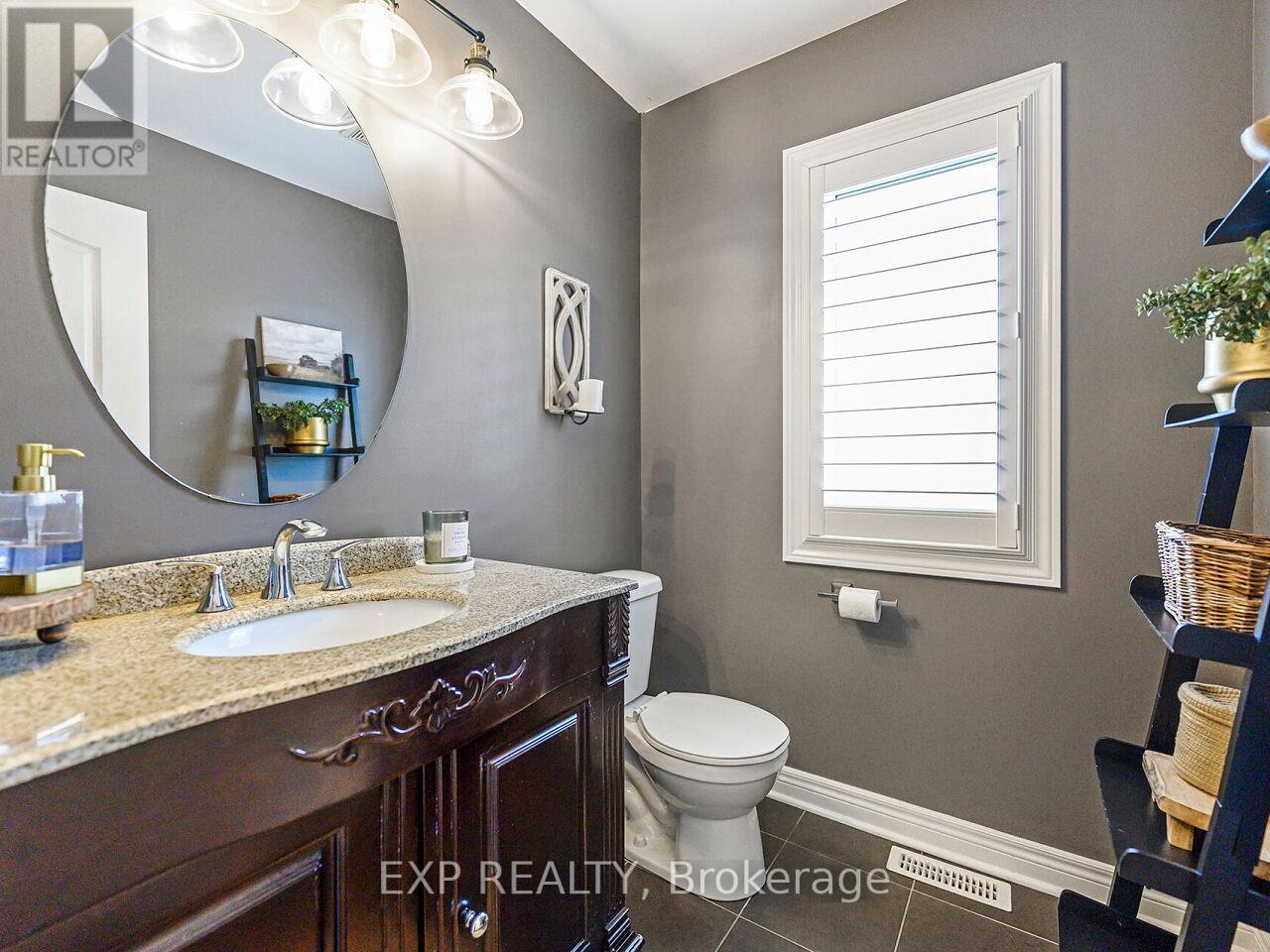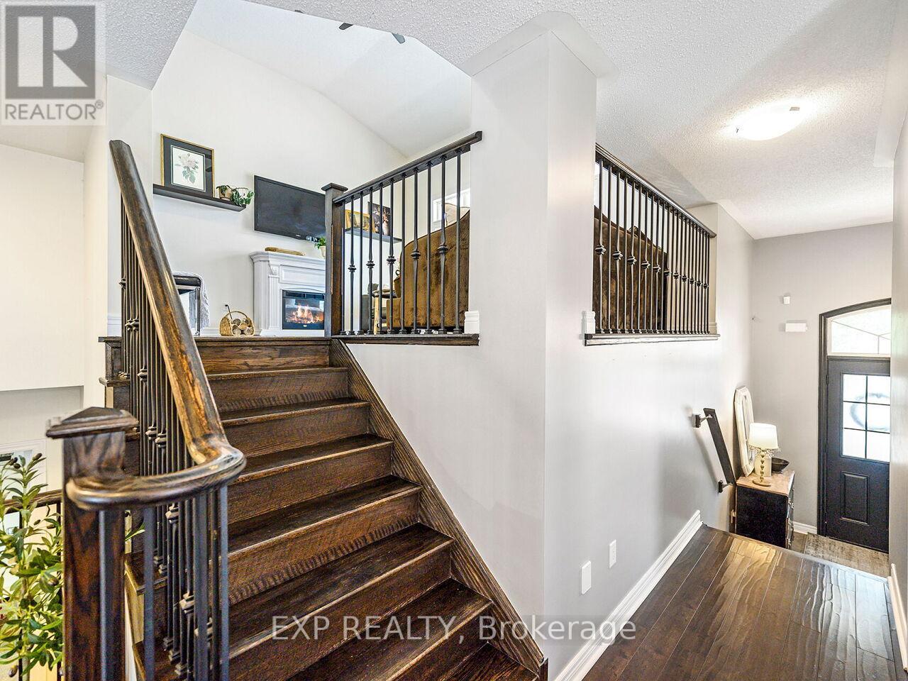 Nestled in a pristine Milton neighbourhood, this stunning 4-bedroom detached family home offers just under 2,500 sq.ft. of beautifully designed above-grade living space. With its blend of style, comfort, and functionality, its perfect for a growing family. Inside, you will find oak stairs with wrought iron spindles, 9 ceilings, and separate formal living and dining rooms. The impressive great room boasts soaring open-to-above ceilings and a walk-out to a covered balcony ideal for relaxing or entertaining. The sunlit family room features a cozy gas fireplace, while the large eat-in kitchen includes stainless steel appliances, granite countertops, a centre island with breakfast bar, pantry, and a bright breakfast area. California shutters throughout add a touch of elegance. Upstairs, the primary suite offers a walk-in closet and 4-piece ensuite. Three additional bedrooms provide ample space for family, guests, or a home office. Outside, enjoy low-maintenance artificial turf, a custom aggregate patio, and a built-in firepit for year-round entertaining. The double-car garage and parking for four on the driveway (no sidewalk!) add convenience. Just steps to Scott Neighbourhood Park & Splash Pad, top-rated schools, and a short walk to downtown Milton, shops, and amenities. Easy access to Hwy 401 and the new Tremaine Rd interchange makes commuting a breeze. Minutes from the Niagara Escarpment, Sherwood Community Centre, the farmers market, restaurants, and conservation areas, this is the ultimate family lifestyle in one of Milton's most desirable communities. (id:51158)