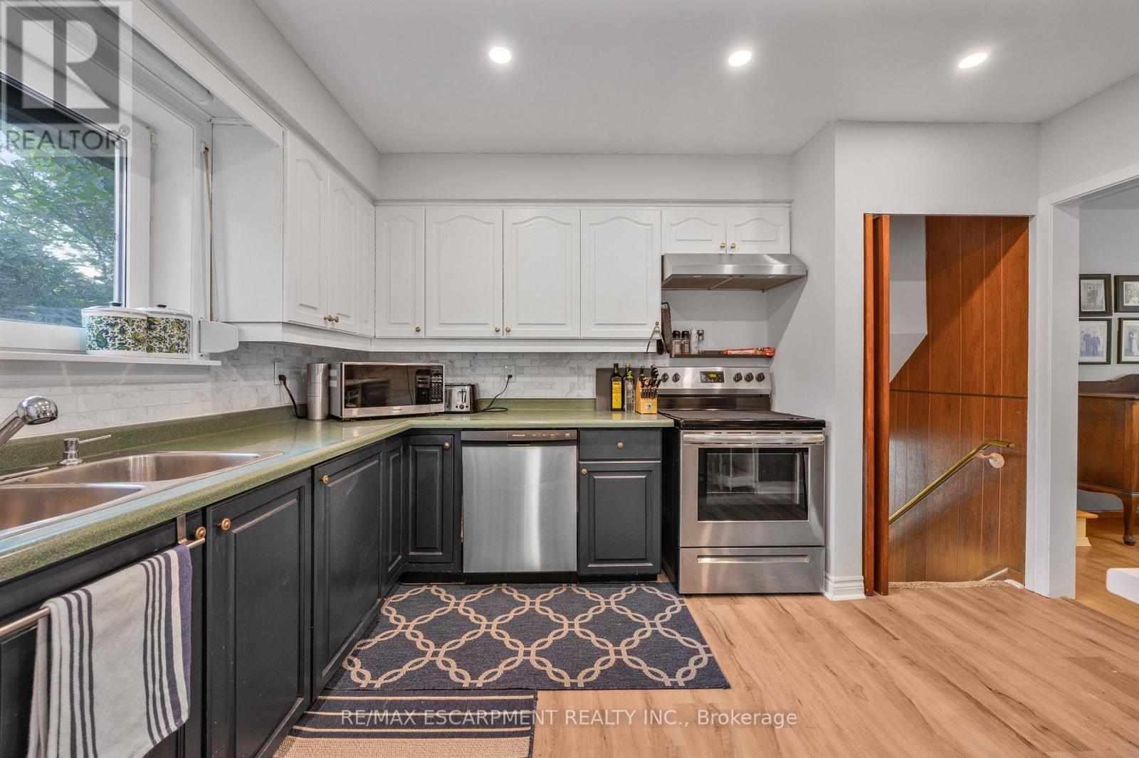 This charming and immaculately maintained 4-level backsplit is located in the heart of Dundas' coveted Pleasant Valley neighbourhood, known for its scenic escarpment setting, mature tree canopy, and easy access to trails and conservation areas. Offering comfort, space, and serenity, the home features original hardwood flooring in the bright and airy living and dining rooms as well as all bedrooms, lending timeless character throughout. The expansive family room includes a cozy gas fireplace, a versatile office nook, and a walkout to a beautifully treed, landscaped backyard-an ideal space for relaxation or entertaining. Recent updates include a newer furnace, central air conditioner, and electrical panel (2020), along with a refreshed 3-piecebathroom (2025) and a brand new roof (2025) providing peace of mind! The lower level provides a laundry area, utilities, a dedicated workshop, and incredible storage adding both functionality and potential. Tucked away on a wonderful street, this family-friendly location is just steps from the Dundas Valley Rail Trail and minutes from the Dundas Conservation Area, downtown shops and cafés, and top-rated schools. With quick access to McMaster University, transit routes, and commuter highways, this move-in ready home offers the perfect blend of small-town charm and modern convenience-with room to customize to your taste. (id:51158)