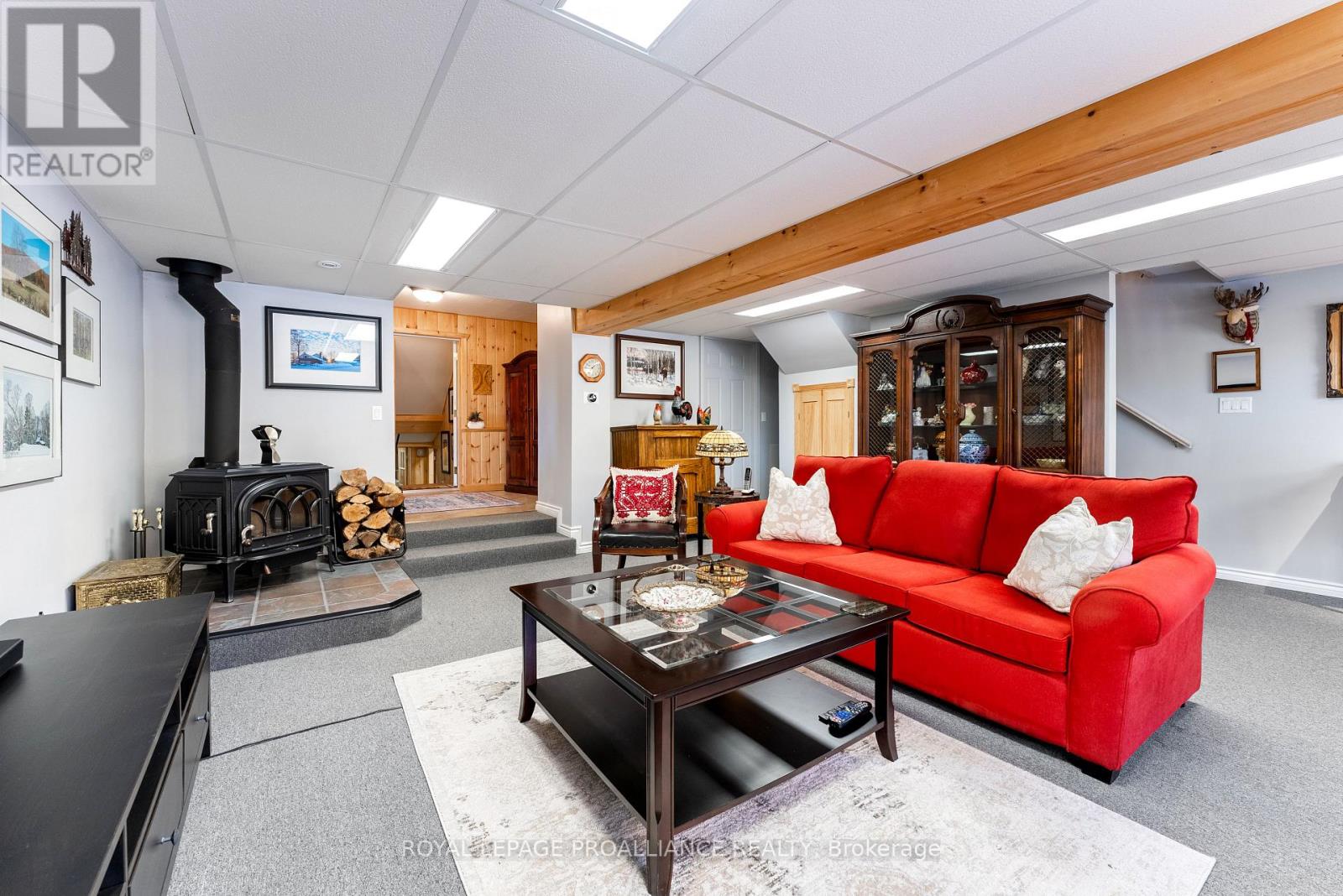 TRIPLE CAR GARAGE, MULTIGENERATIONAL LIVING, AND 4,900 SQUARE FEET OF LIVING SPACE Welcome to 17276 Highway 41 in Addington Highlands, a rare opportunity to own a spacious and meticulously maintained home nestled on 3.4 acres of lush maple forest. This property shows true pride of ownership, with extensive improvements made over the years and it shows!Perfectly suited for large or extended families, this home features a triple car insulated garage with heated workshop, a gas-powered generator, and long-lasting metal roofs on both the home and garage. Inside, natural light pours through oversized windows, creating a warm and inviting atmosphere throughout. Highlights include a pine-lined sunroom, a cozy family room with Jtul wood stove, a sitting room off the eat-in kitchen, and open-concept living and dining spaces ideal for gatherings. The main floor also features a beautifully tiled 4-piece bathroom and a spacious primary bedroom. Upstairs offers 3 more bedrooms and a 3-piece bath. A standout feature is the separate living space above the family room, complete with its own bedroom and sitting area perfect for in-laws, teens, or guests, offering true multi-generational flexibility. The lower level adds even more value with a large rec room, office, hobby room, and generous storage. Relax year-round in the heated, pine-finished jacuzzi room, or step outside to the three-tiered deck surrounded by mature forest. Recently painted (2023) and move-in ready with a Keeprite propane furnace, MANY FURNISHINGS INCLUDED, and a Webber BBQ. With direct access to snowmobile trails and breathtaking views of Mazinaw Lake, this home lovingly built and cared for by the same family for two generations is a rare blend of space, comfort, and timeless country charm. (id:51158)