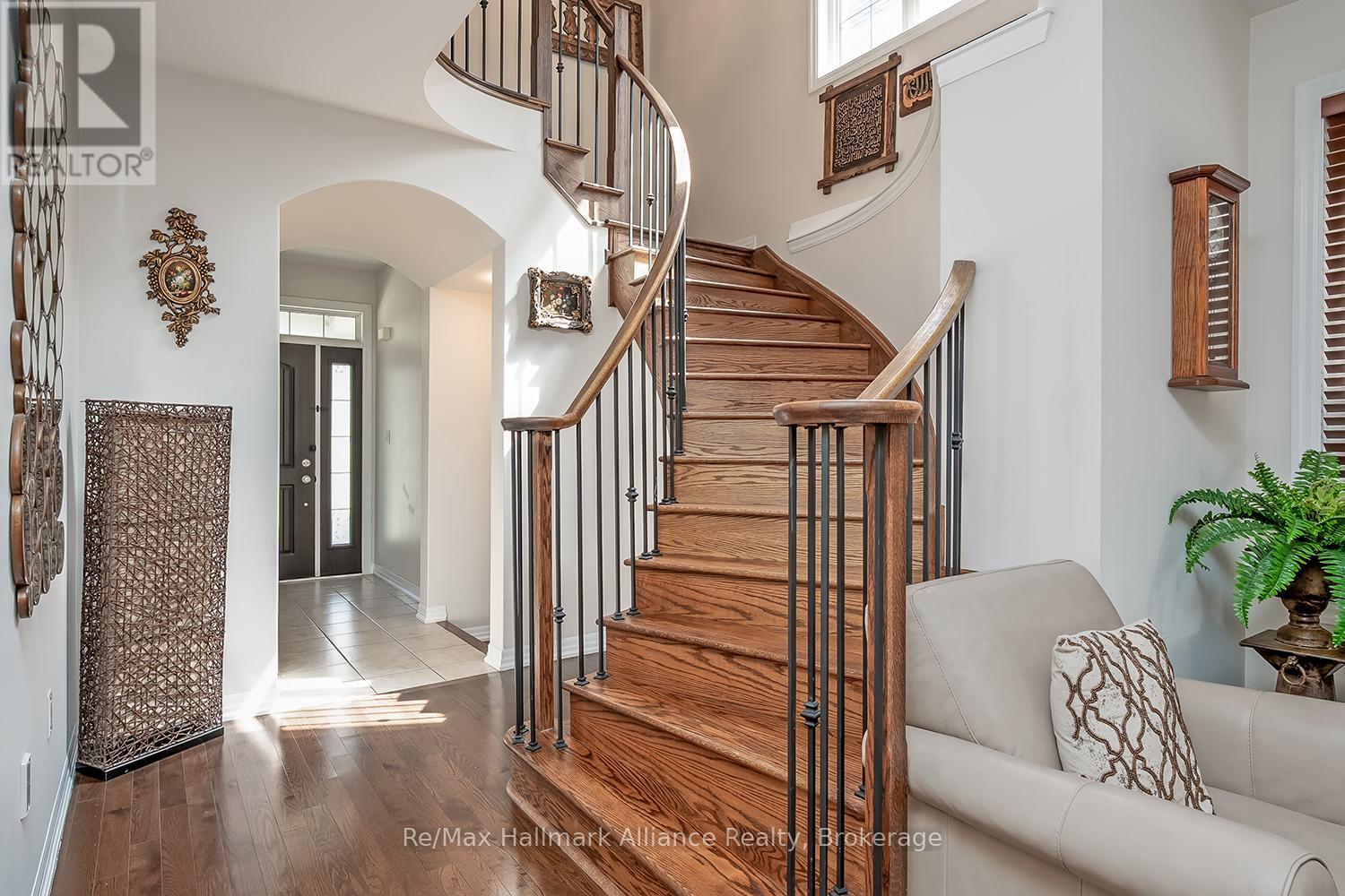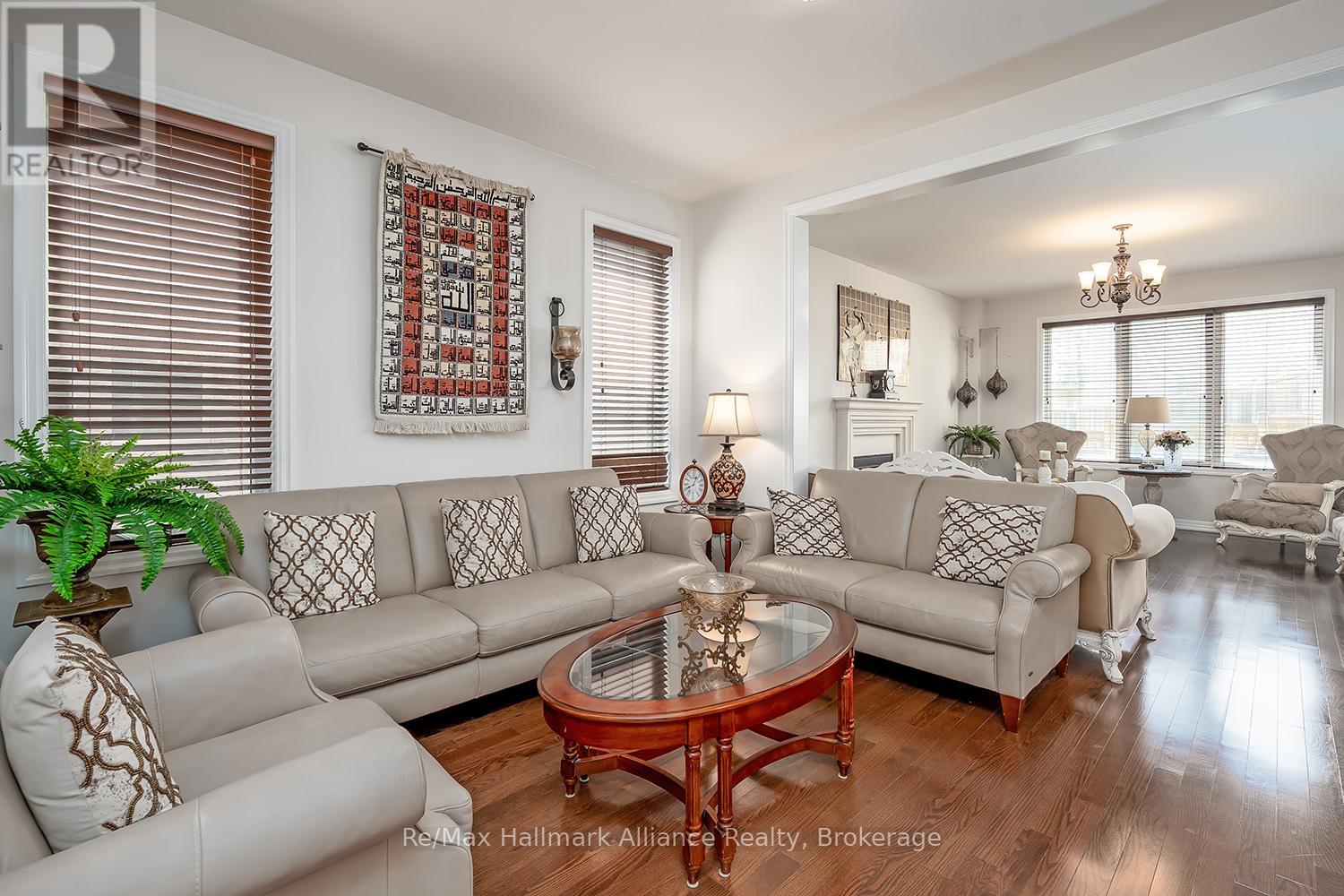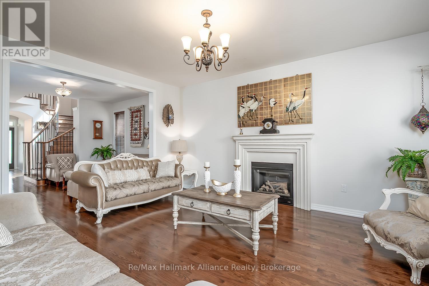 Welcome to the Jasmine French Chateau Model by Mattamy Homes where timeless elegance meets modern comfort. This beautifully designed home offers a bright and airy main floor with 9-foot ceilings, rich hardwood floors, pot lights, and a cozy gas fireplace. The open-concept layout seamlessly connects the living and dining spaces, while the spacious eat-in kitchen features abundant cabinetry, a generous island, and direct access to a walk-in pantry and a convenient mudroom with a second walk-in closet off the garage. Upstairs, you'll find four well-appointed bedrooms. Two bedrooms feature private ensuites and walk-in closets, while a third enjoys semi-ensuite access and a charming window seat. The expansive primary suite is a true retreat with its own walk-in closet and a spa-like 5-piece ensuite, complete with double sinks, a soaker tub, and a glass-enclosed shower. The second-floor laundry room is full of natural light, adding both practicality and charm. The lower level has recently been professionally finished that offers even more living space, including a media room with pot lights, a dedicated home office area, a bright spacious additional bedroom with an oversized closet, and a sleek 3-piece bathroom. BONUS E/V charging station in the garage for your electric vehicle! This family home is perfectly located within walking distance to schools, Smart Centres shopping, major highways, and the GO Station this home offers exceptional lifestyle and convenience for today's modern family (id:51158)