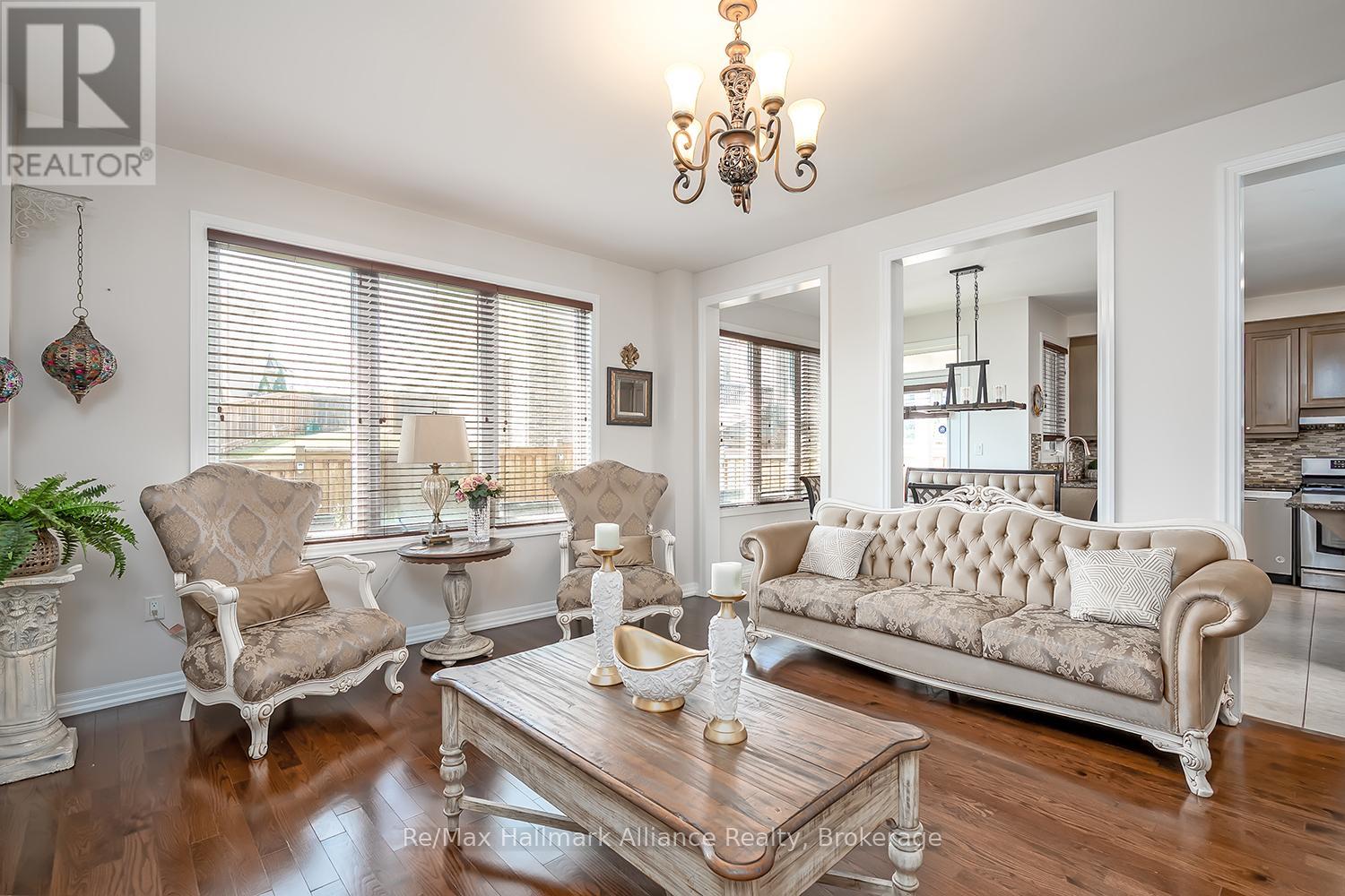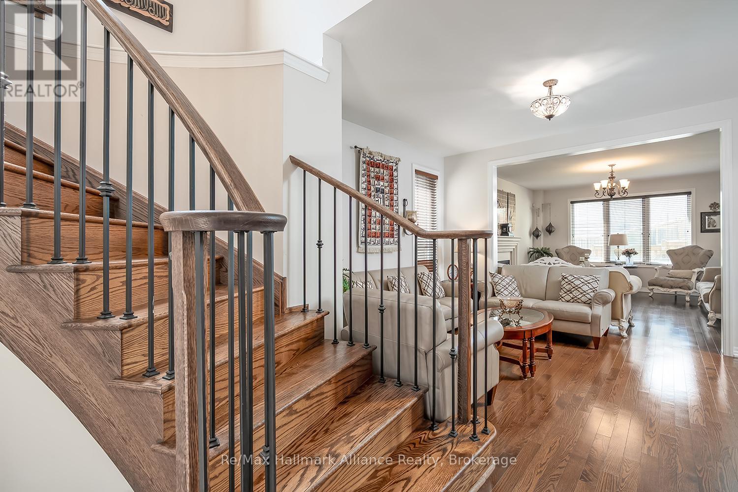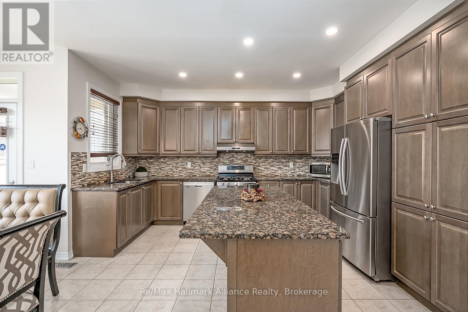 Welcome to the Jasmine French Chateau Model by Mattamy Homes where timeless elegance meets modern comfort. This beautifully designed home offers a bright and airy main floor with 9-foot ceilings, rich hardwood floors, pot lights, and a cozy gas fireplace. The open-concept layout seamlessly connects the living and dining spaces, while the spacious eat-in kitchen features abundant cabinetry, a generous island, and direct access to a walk-in pantry and a convenient mudroom with a second walk-in closet off the garage. Upstairs, you'll find four well-appointed bedrooms. Two bedrooms feature private ensuites and walk-in closets, while a third enjoys semi-ensuite access and a charming window seat. The expansive primary suite is a true retreat with its own walk-in closet and a spa-like 5-piece ensuite, complete with double sinks, a soaker tub, and a glass-enclosed shower. The second-floor laundry room is full of natural light, adding both practicality and charm. The lower level has recently been professionally finished that offers even more living space, including a media room with pot lights, a dedicated home office area, a bright spacious additional bedroom with an oversized closet, and a sleek 3-piece bathroom. BONUS E/V charging station in the garage for your electric vehicle! This family home is perfectly located within walking distance to schools, Smart Centres shopping, major highways, and the GO Station this home offers exceptional lifestyle and convenience for today's modern family (id:51158)