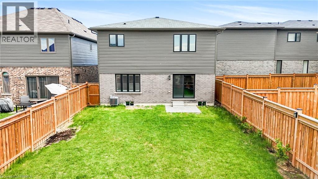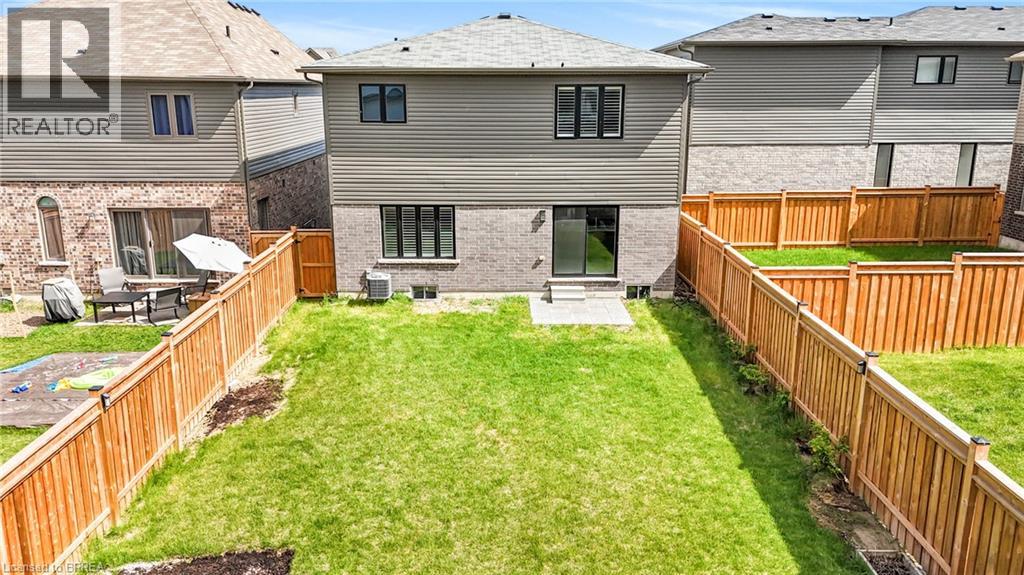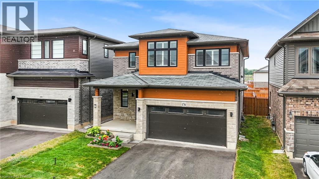 Welcome to 178 Longboat Run West—a stunning 2-storey home nestled in one of Brantford's most desirable and family-friendly communities. Thoughtfully designed with modern comfort and timeless style, this beautiful property sits on a premium 36 ft. x 114 ft. lot with no rear neighbours and features over $21,000 in upgrades! Step inside to experience open-concept living at its finest, where natural light pours across the spacious main level. Every room is enhanced with upgraded baseboards that add a refined finish, and California shutters that provide both privacy and a touch of elegance. The inviting living room showcases rich hardwood flooring, sleek pot lights, and a welcoming ambiance ideal for both relaxing and entertaining. The modern kitchen is a chef’s dream, complete with flat-panel cabinetry, quartz countertops, stainless steel appliances, and a stylish backsplash. Just off the kitchen, the dining area is ideal for family meals and gatherings, with sliding glass doors leading to a cozy patio—perfect for barbecues and enjoying warm evenings outdoors. Upstairs, the grand primary suite offers a luxurious retreat with elegant double-door entry, a spacious walk-in closet, and a spa-like ensuite. Unwind in the deep soaking tub or refresh in the oversized walk-in shower with upgraded sliding glass doors. Two additional bedrooms, a modern 3-piece bathroom with an upgraded glass shower door, and the convenience of an upstairs laundry room with window complete the second floor. The unfinished basement offers an excellent opportunity for customization, featuring large upgraded windows that fill the space with natural light and a pre-installed bathroom rough-in for added convenience. Outside, enjoy a fully fenced backyard with ample green space to play and relax throughout the seasons. This home truly has it all: modern finishes, family-friendly comfort, and an unbeatable location. Don’t miss your chance to make 178 Longboat Run West your forever home! (id:51158)