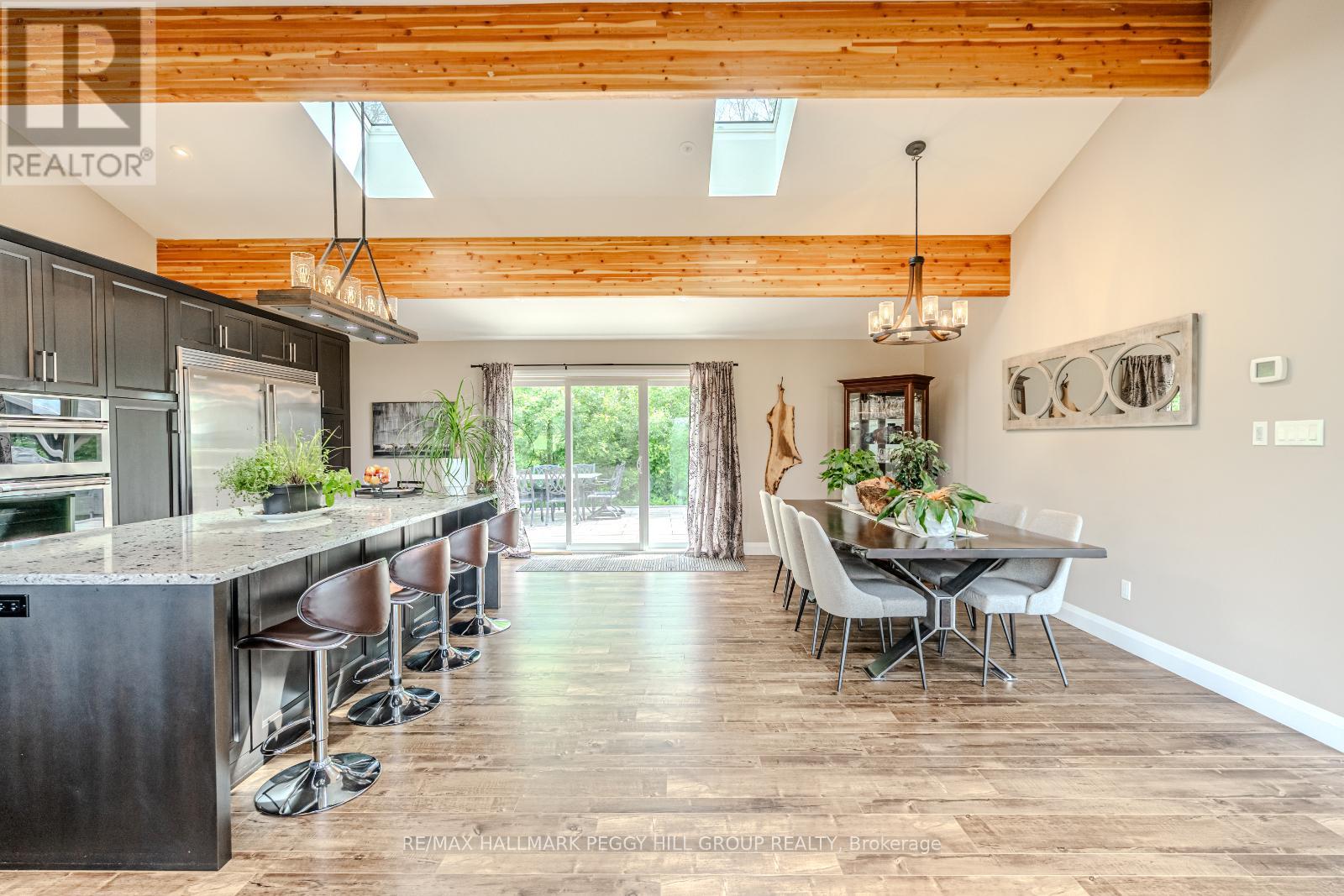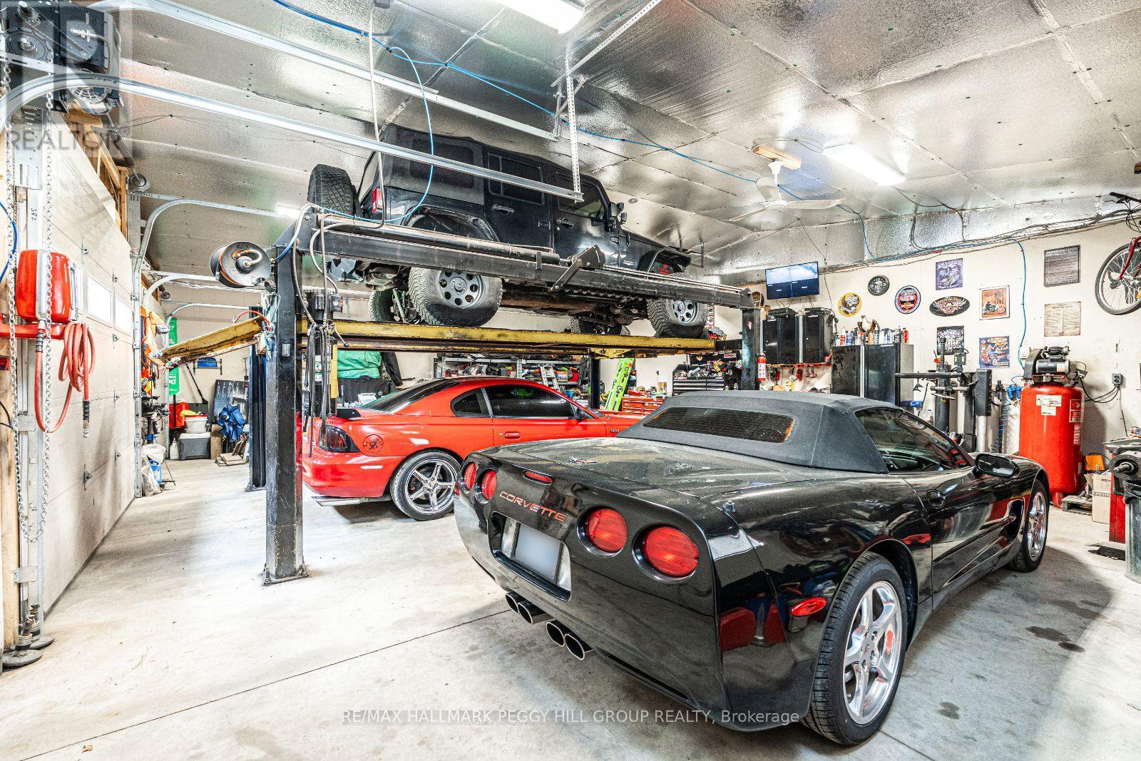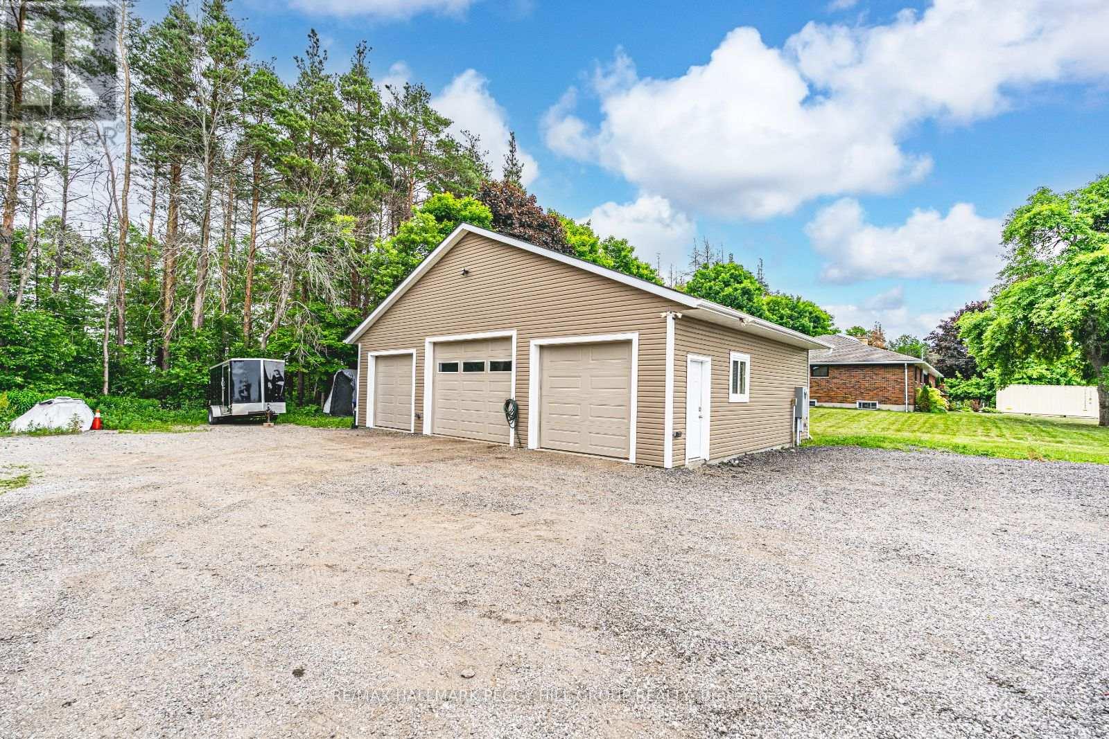 BOLD ARCHITECTURE, LUXURY UPGRADES, A HEATED 3-BAY SHOP, & SEPARATE 200 AMP SERVICE TO BOTH THE HOUSE & THE SHOP ON OVER HALF AN ACRE OF COUNTRY LIVING! Step into this 2019 Linwood home offering over 3,300 sq ft of finished living space on a beautifully landscaped half-acre lot, just minutes from downtown Elmvale. Enjoy an unmatched lifestyle close to Wasaga Beach, the Elmvale Jungle Zoo, Tiny Marsh, parks, schools, a library, an arena, and beloved community events like the Maple Syrup Festival and Fall Fair. This property is designed to impress, with a striking A-frame roofline, oversized triple-pane windows, double-door entry, manicured gardens, a stone patio, gazebo, and full landscape lighting with built-in irrigation. The heated and insulated detached shop with 3 garage doors, a commercial-grade Liftmaster opener, and dedicated 200 amp service is a dream for hobbyists and professionals alike. Inside, vaulted ceilings with exposed Douglas Fir beams, floor-to-ceiling windows, skylights, and designer LED lighting create an unforgettable interior. The modern kitchen boasts quartz counters, dark shaker cabinets, tile backsplash, an under-mount sink, island seating, and premium Jennair appliances, opening to a stylish dining space with wide patio doors, and a breathtaking living room. A skylit family room and two main floor bedrooms served by a 4-piece bath elevate everyday comfort, while a custom maple staircase with an engineered steel mono stringer leads to a loft-style primary suite with a custom walk-in closet and an ensuite with an air jet tub and imported Italian glass shower. The partially finished basement adds a rec room, bedroom, full bath, and a utility room with a tankless water heater, softener, UV system, and 4-filter water treatment. With a Generac and blown-in insulation for added efficiency, every detail is thoughtfully crafted to create an extraordinary lifestyle, and a truly rare opportunity to live and entertain in style! (id:51158)