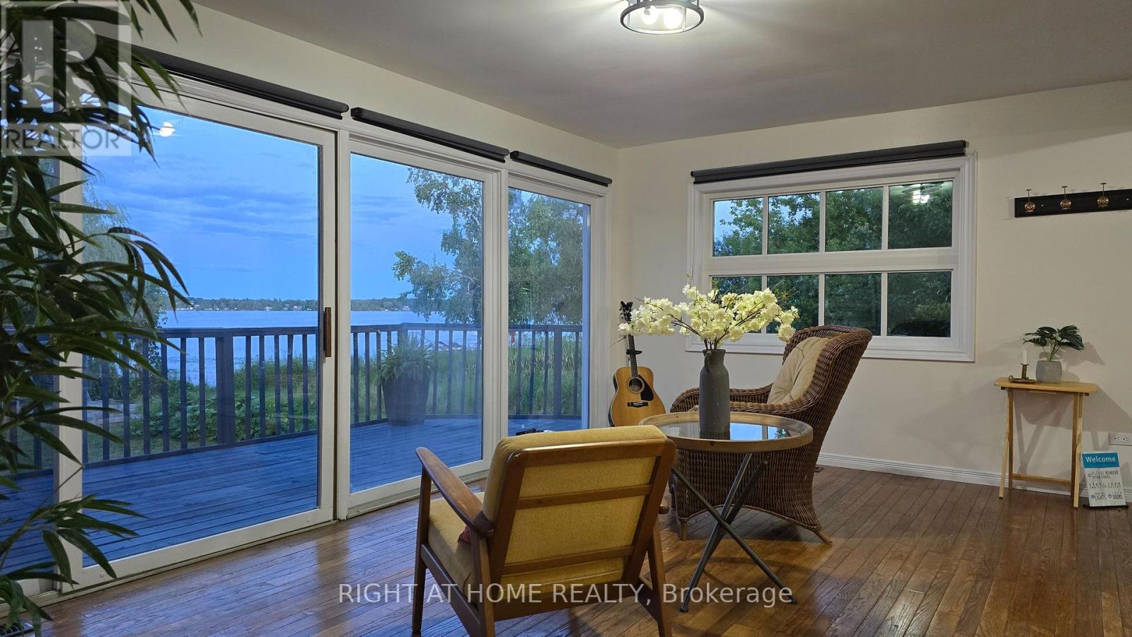Waterfront home on huge lot with 91 feet of shoreline!! Freshly renovated bungalow with gorgeous views over Lake Scugog! Open concept kitchen and living Room with hardwood floor and walk-out to large wrap around deck! Older boathouse, new steel roof, propane furnace, water system, 2 plus 2 bedrooms, huge rec room , 1-3 pcs bath on main level and 4 pcs bath on lower level, lots of parking area, green house and garden area with raised beds, sand box, fire pit. natural gas on the street. Available for quick closing! (id:51158)