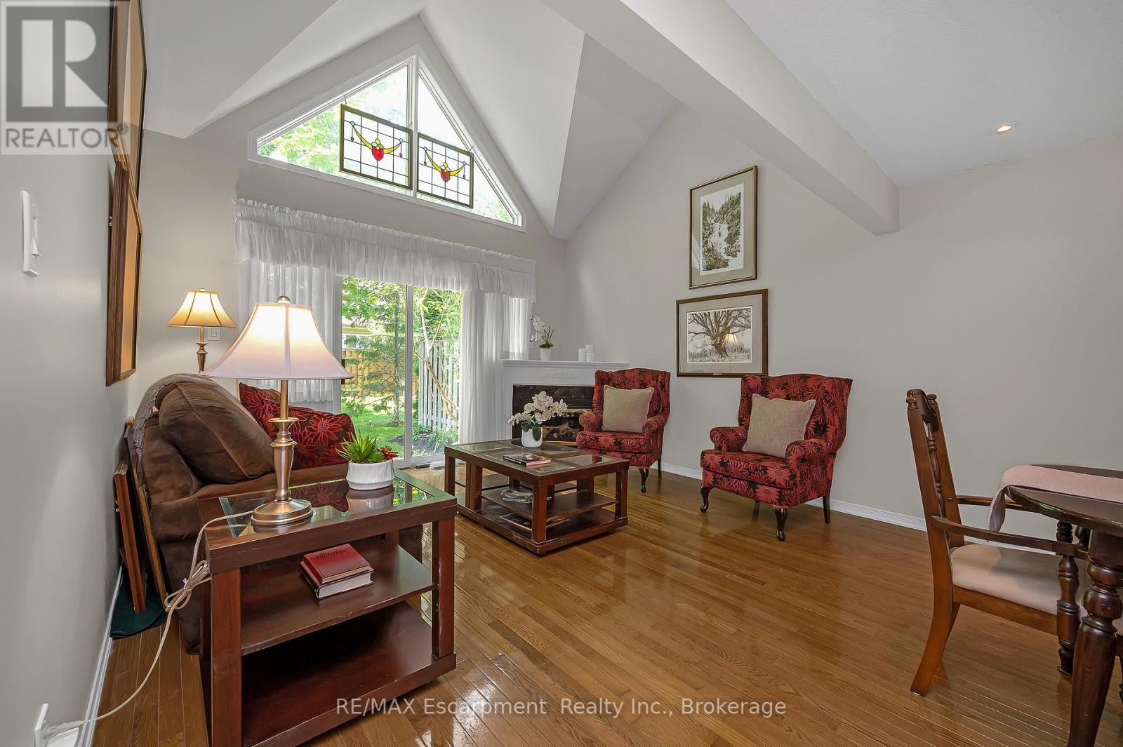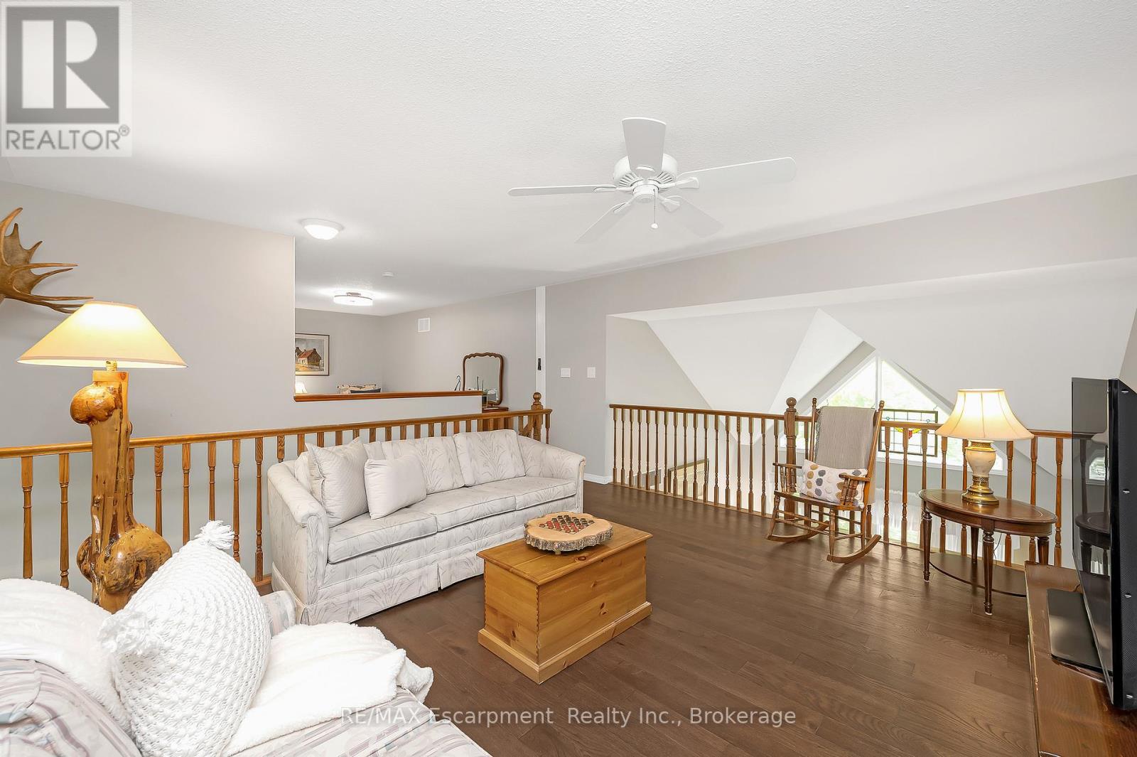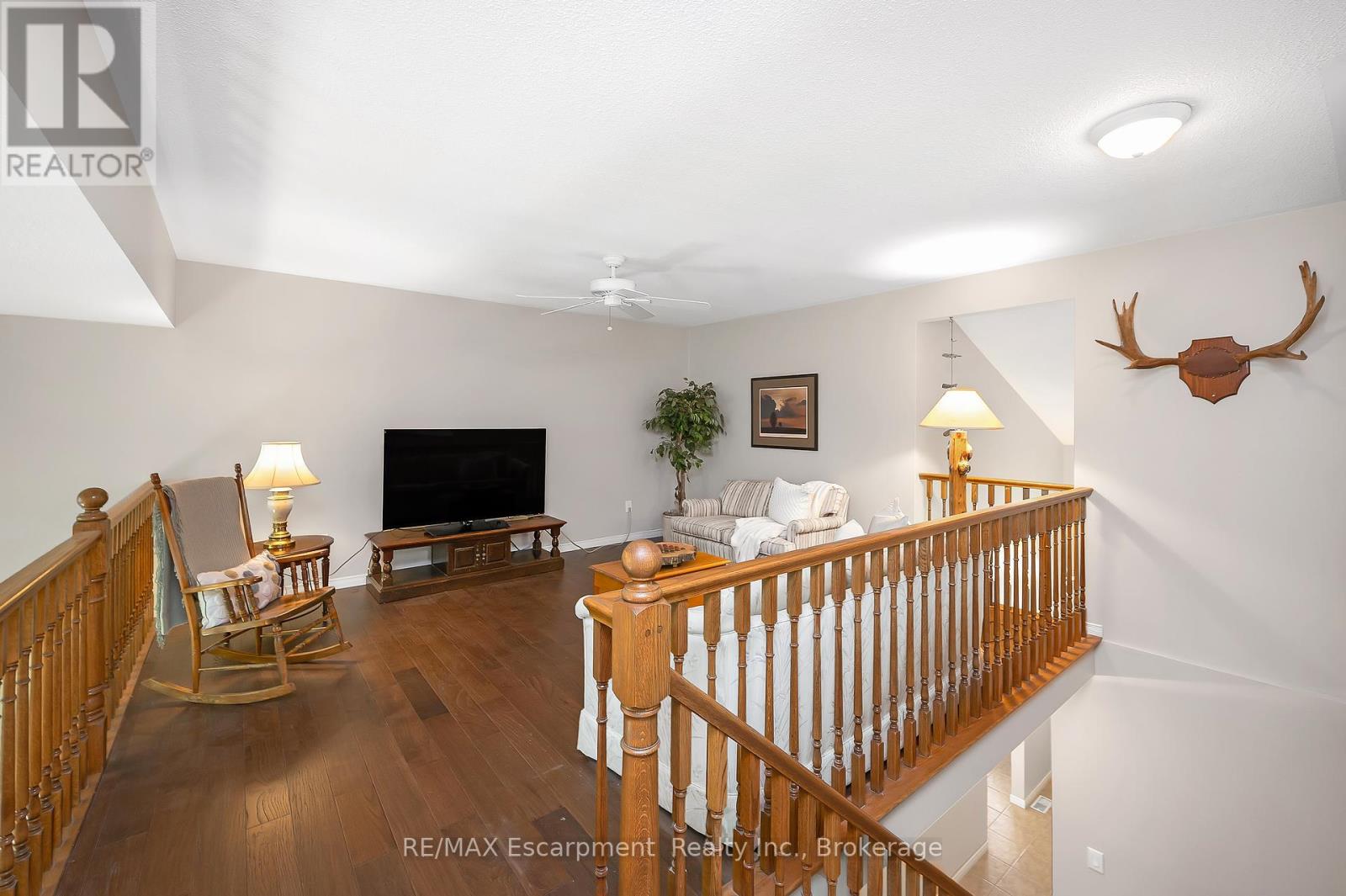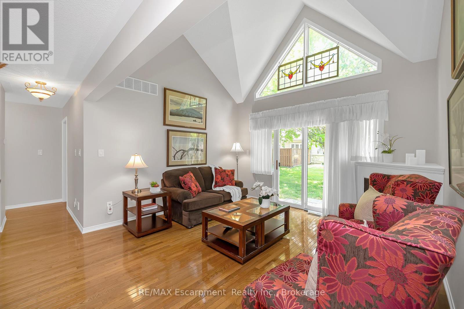 Welcome to this beautifully refreshed bungaloft in the coveted Ancaster Meadowlands -- where style, comfort, and smart upgrades come together seamlessly. With 2+1 bedrooms and 3 full baths, this home is thoughtfully laid out for real life (and a little luxury too). On the main floor, you'll love the spacious primary suite with its walk-in closet and a spa-like bathroom featuring a Jacuzzi tub plus a brand new shower (2025). Step into the open-concept living and dining area, where vaulted ceilings, a cozy gas fireplace, and oversized windows flood the space with natural light. Slide open the doors and take your coffee to the private backyard privacy fences for extra privacy. The kitchen is a showstopper, recently upgraded (2025) with quartz countertops, a sleek sink, faucet, backsplash, and stainless appliances -- plus plenty of storage to keep things looking tidy. Freshly painted this year, the home also sports updated hardware and hardware for that crisp, modern feel. A handy main-floor laundry room keeps things extra convenient. Head upstairs to the airy loft, perfect as a family room, office, or reading retreat. It overlooks the main living space and offers a second bedroom and full bath an ideal setup for guests or older kids. Downstairs, you'll find a third bedroom, another full bath, loads of storage, and a sprawling unfinished space thats currently a workshop but could easily become your dream rec room or games area. Notable updates include a tankless hot water system (2022), roof (~6 years), furnace & A/C (~3 years) and scheduled lawn reseeding this fall. And the location? Unbeatable. You're close to shopping, dining, top schools, parks, golf, the LINC, Hwy 403, and public transit right in the heart of one of Ancaster's most sought-after communities. Truly a turn-key home that lets you live, relax, and entertain in style. (id:51158)