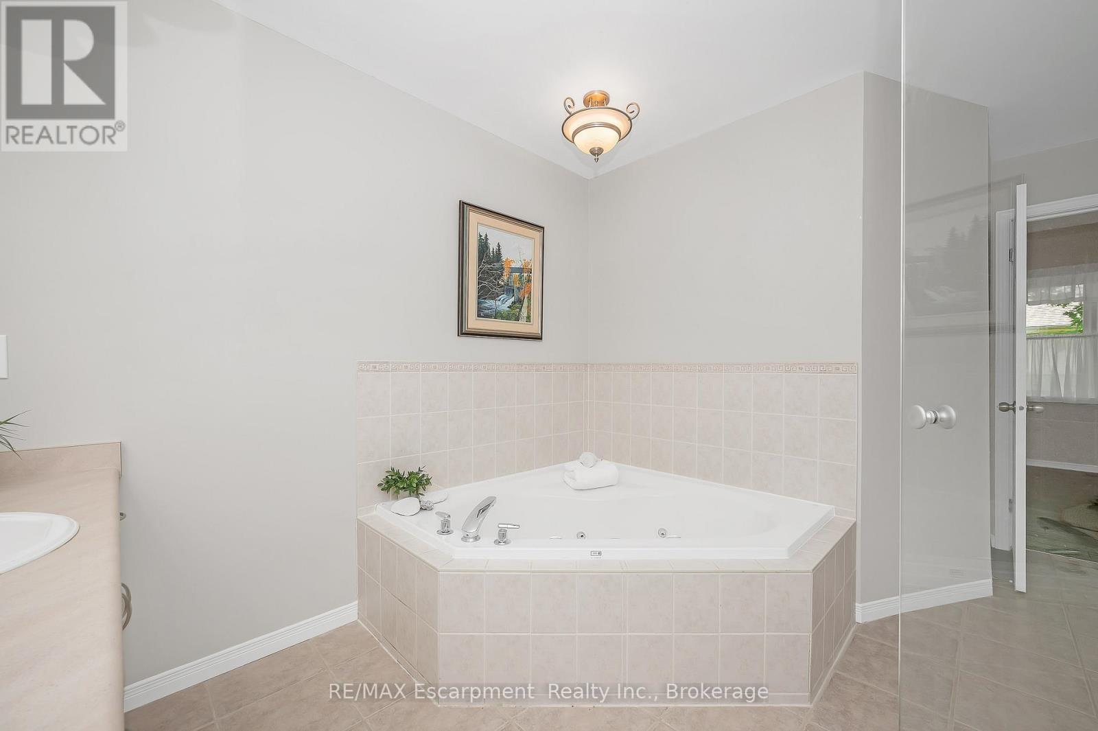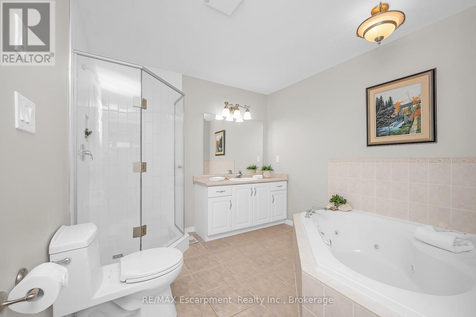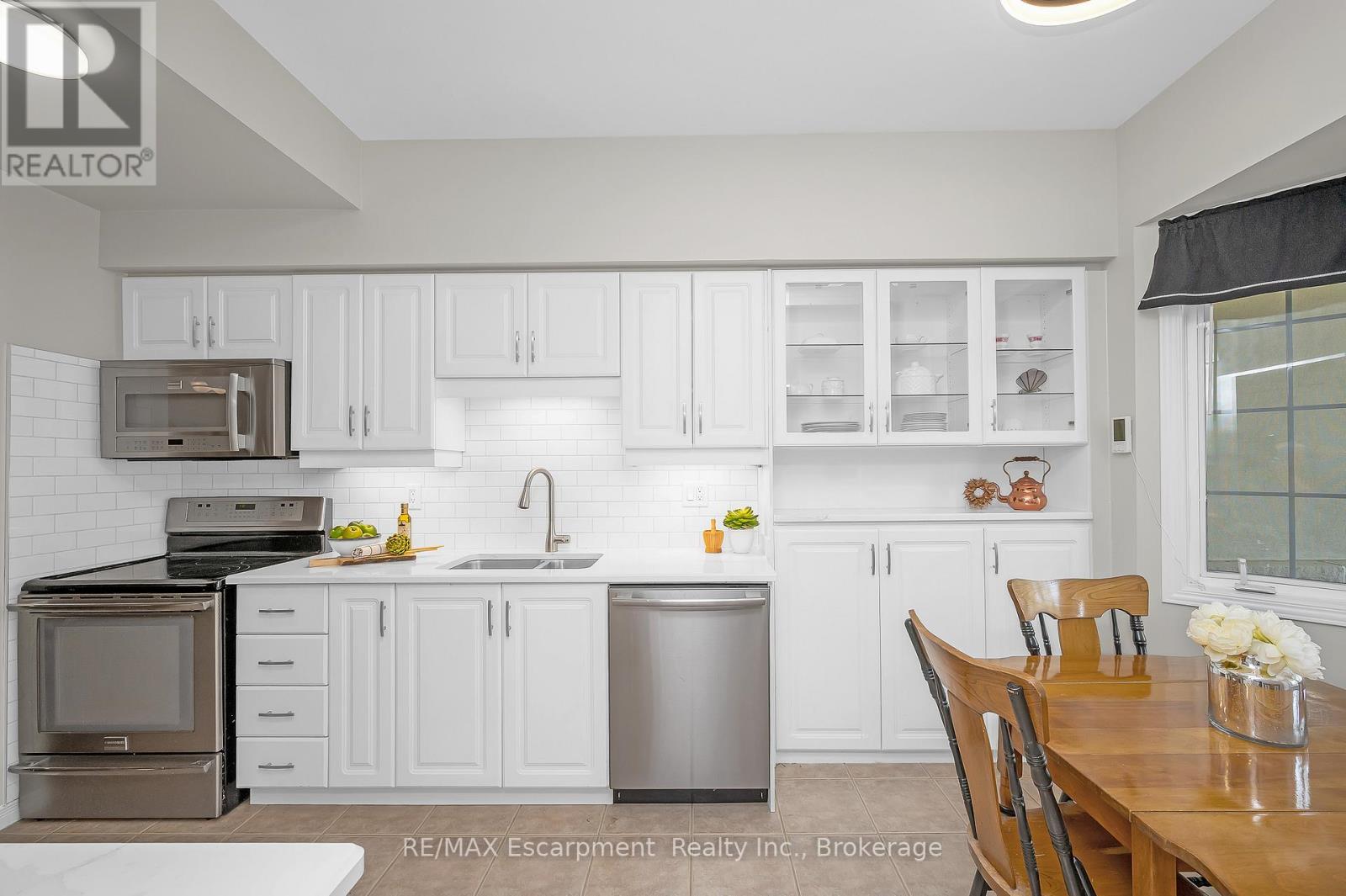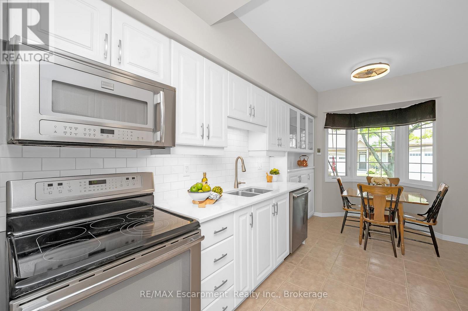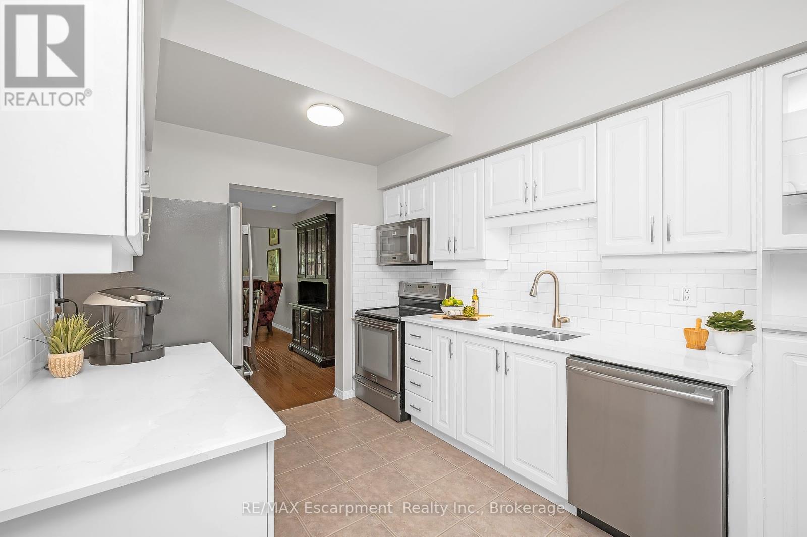 Welcome to this beautifully refreshed bungaloft in the coveted Ancaster Meadowlands -- where style, comfort, and smart upgrades come together seamlessly. With 2+1 bedrooms and 3 full baths, this home is thoughtfully laid out for real life (and a little luxury too). On the main floor, you'll love the spacious primary suite with its walk-in closet and a spa-like bathroom featuring a Jacuzzi tub plus a brand new shower (2025). Step into the open-concept living and dining area, where vaulted ceilings, a cozy gas fireplace, and oversized windows flood the space with natural light. Slide open the doors and take your coffee to the private backyard privacy fences for extra privacy. The kitchen is a showstopper, recently upgraded (2025) with quartz countertops, a sleek sink, faucet, backsplash, and stainless appliances -- plus plenty of storage to keep things looking tidy. Freshly painted this year, the home also sports updated hardware and hardware for that crisp, modern feel. A handy main-floor laundry room keeps things extra convenient. Head upstairs to the airy loft, perfect as a family room, office, or reading retreat. It overlooks the main living space and offers a second bedroom and full bath an ideal setup for guests or older kids. Downstairs, you'll find a third bedroom, another full bath, loads of storage, and a sprawling unfinished space thats currently a workshop but could easily become your dream rec room or games area. Notable updates include a tankless hot water system (2022), roof (~6 years), furnace & A/C (~3 years) and scheduled lawn reseeding this fall. And the location? Unbeatable. You're close to shopping, dining, top schools, parks, golf, the LINC, Hwy 403, and public transit right in the heart of one of Ancaster's most sought-after communities. Truly a turn-key home that lets you live, relax, and entertain in style. (id:51158)