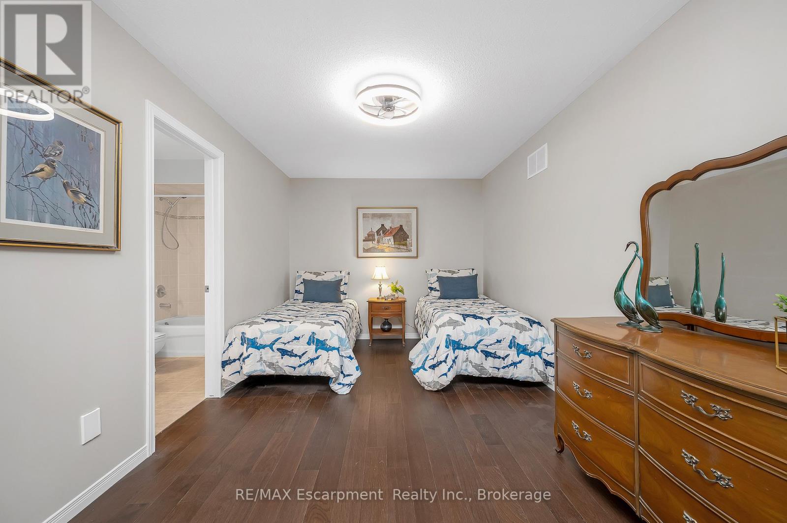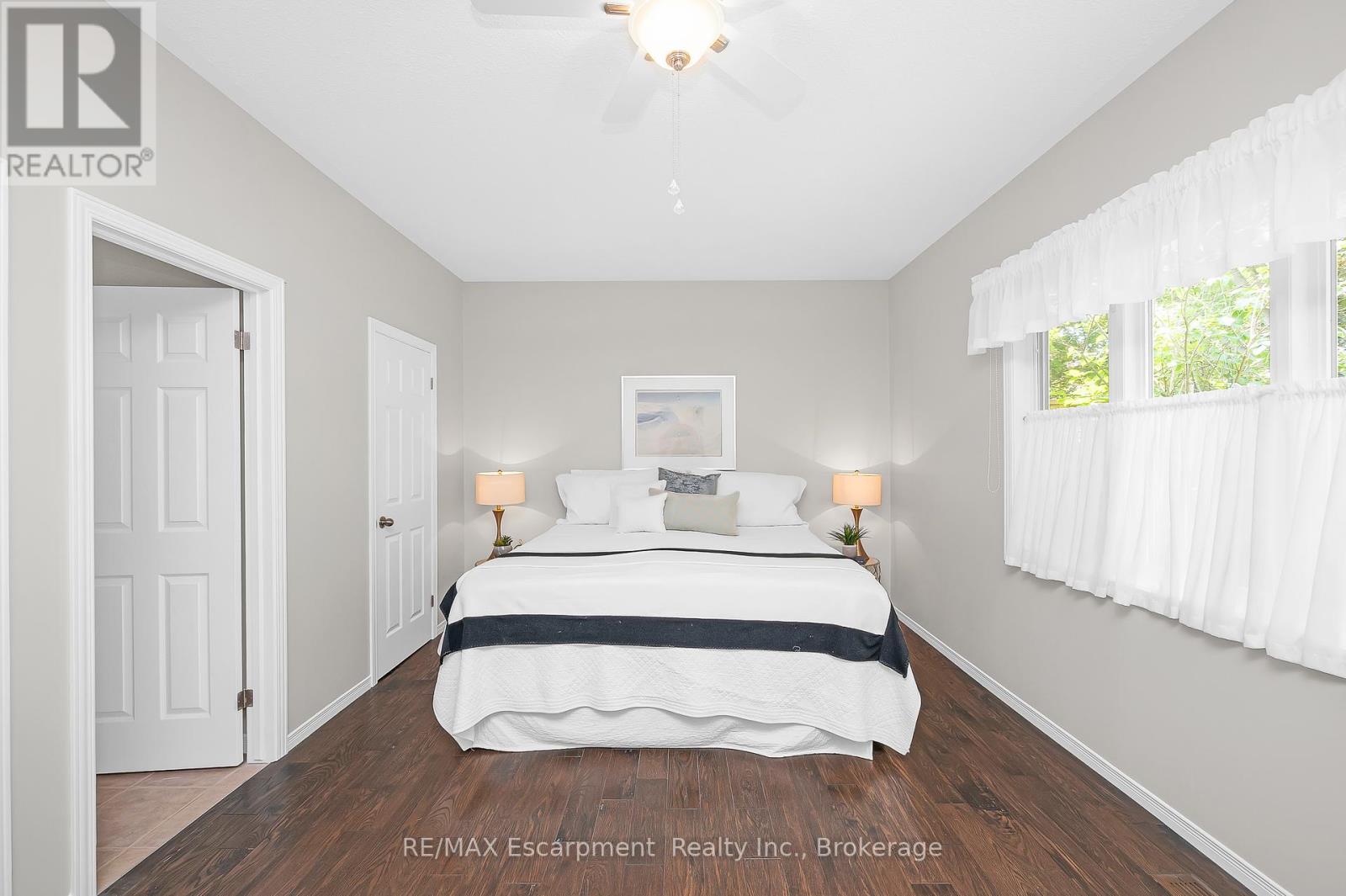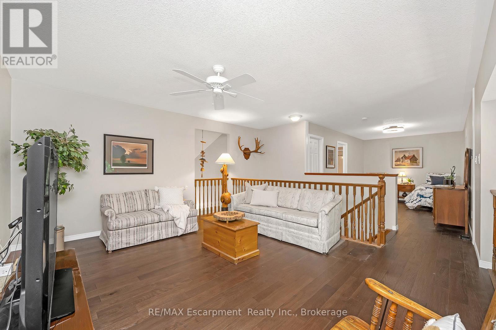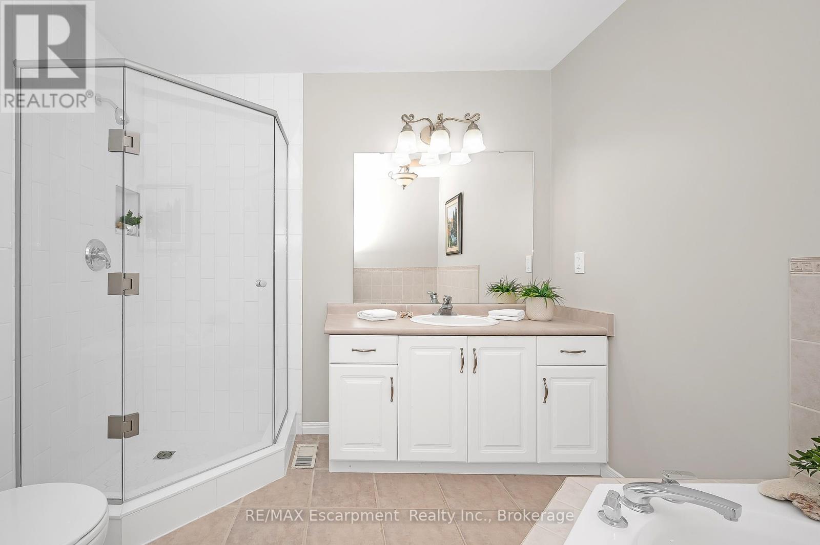 Welcome to this beautifully refreshed bungaloft in the coveted Ancaster Meadowlands -- where style, comfort, and smart upgrades come together seamlessly. With 2+1 bedrooms and 3 full baths, this home is thoughtfully laid out for real life (and a little luxury too). On the main floor, you'll love the spacious primary suite with its walk-in closet and a spa-like bathroom featuring a Jacuzzi tub plus a brand new shower (2025). Step into the open-concept living and dining area, where vaulted ceilings, a cozy gas fireplace, and oversized windows flood the space with natural light. Slide open the doors and take your coffee to the private backyard privacy fences for extra privacy. The kitchen is a showstopper, recently upgraded (2025) with quartz countertops, a sleek sink, faucet, backsplash, and stainless appliances -- plus plenty of storage to keep things looking tidy. Freshly painted this year, the home also sports updated hardware and hardware for that crisp, modern feel. A handy main-floor laundry room keeps things extra convenient. Head upstairs to the airy loft, perfect as a family room, office, or reading retreat. It overlooks the main living space and offers a second bedroom and full bath an ideal setup for guests or older kids. Downstairs, you'll find a third bedroom, another full bath, loads of storage, and a sprawling unfinished space thats currently a workshop but could easily become your dream rec room or games area. Notable updates include a tankless hot water system (2022), roof (~6 years), furnace & A/C (~3 years) and scheduled lawn reseeding this fall. And the location? Unbeatable. You're close to shopping, dining, top schools, parks, golf, the LINC, Hwy 403, and public transit right in the heart of one of Ancaster's most sought-after communities. Truly a turn-key home that lets you live, relax, and entertain in style. (id:51158)