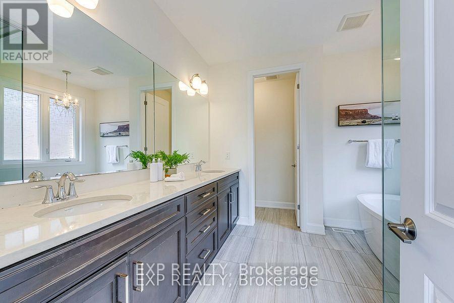 $635.33 MonthlyLuxurious 2018 Mattamy Built Home In Prestigious Preserve Community W/Ravine View Backing Onto Munn's Creek Trail. Linked From Garage Only, This Stunning Property Feels Like A Detached Home And Boasts Almost 3,500 Ft2 Of Living Space Featuring 9-ft Ceilings, Spacious Master Bedroom With A 5-Pc Spa-like Ensuite With His And Hers Walk-in Closets, And A Juliette Balcony. Two Additional Generous Sized Bedrooms Share A Jack And Jill Washroom. A Finished Walkout Basement With 3 Piece Bath And A 4th Bedroom. Quartz Kitchen Countertops, Engineered Hardwood Floors. Double Car Garage. Second Floor Laundry, Double Access From Garage Into Main Floor And Garage To Backyard. Amazing Location; Walking Distance To Top Ranked Oodenawi Public School And St. Gregory The Great Catholic School, Fortinos Shopping Plaza, Walking Trails & More! Monthly Maintenance Fees Includes Windows, Roof, Exterior Doors, Full Service Landscaping And Snow Removal And Regular Salting. (id:51158)