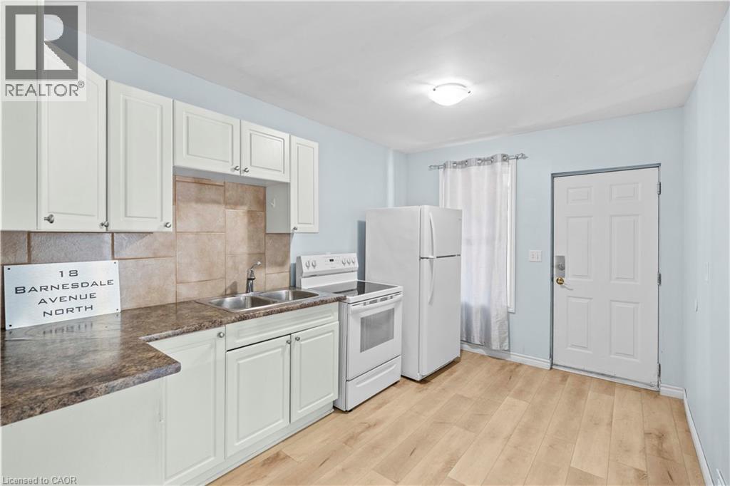 Welcome to 18 Barnesdale Av North! ATTENTION INVESTORS….3 UNITS ABOVE GRADE!! Vacant and nicely renovated, PLUS a detached block garage!!! Unit mix is: Main floor 1 x 2 bedroom unit, 2nd Floor 1 x 2 bedroom unit, 3rd floor 1 x 1 bedroom unit. All units have a 4 piece bath. First and second level have a shared main foyer with separate entrances into each unit, third level accessed by steel fire escape. Updates and features include; three newer modern kitchens, three remodeled four piece baths, all newer wide plank laminate flooring throughout, and brand new vinyl plank on Main floor (2025), vinyl windows, roof re-shingled 2019, beautiful front porch, block garage with hydro for extra income and rear parking. Unfinished basement with separate entrance for laundry and utilities (plus rough in bath), 200 amp service on circuit breakers, interconnected smoke detectors, interior sewer line replaced 2024. A+ location! Close to schools, parks, shopping, walk to future LRT, Tim Horton’s Field, Bernie Morelli Recreation Centre (indoor pool & track). Property is 100% turn-key and is in move in ready condition! Establish your own tenants and rents, Great investment opportunity! (id:51158)