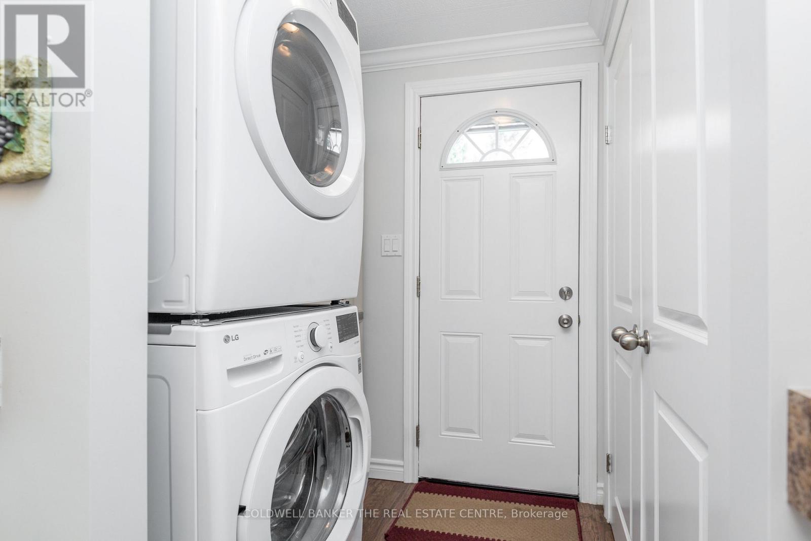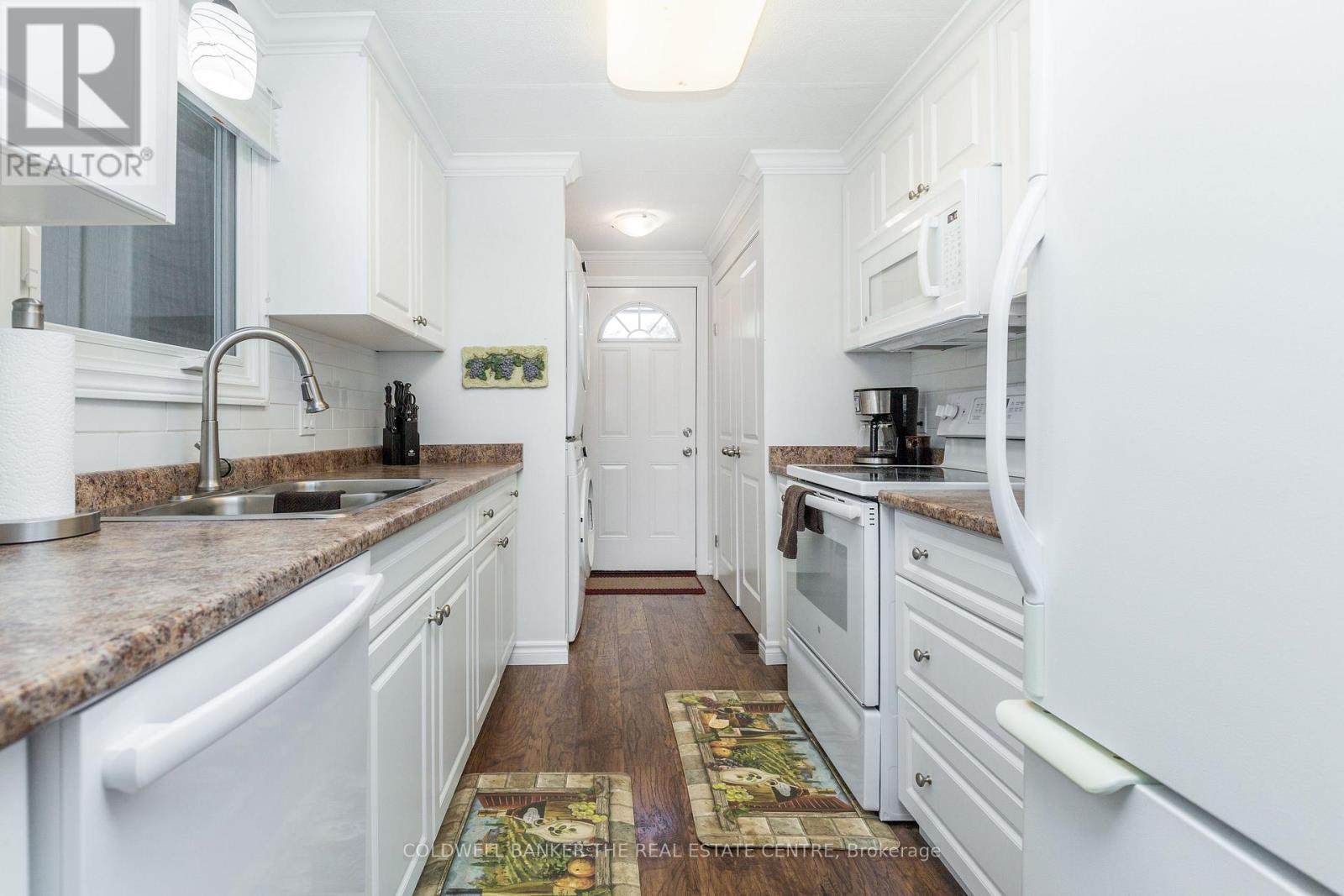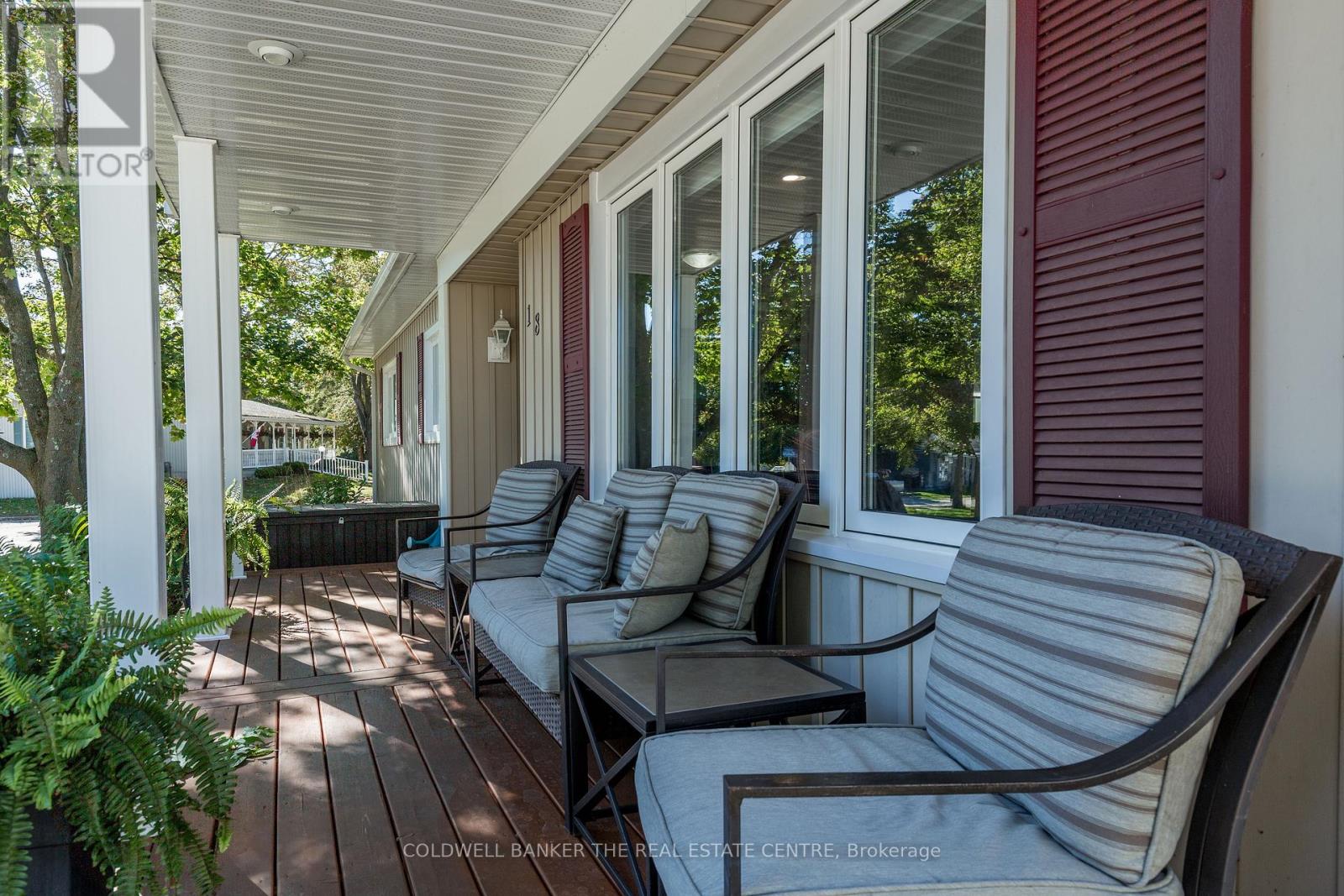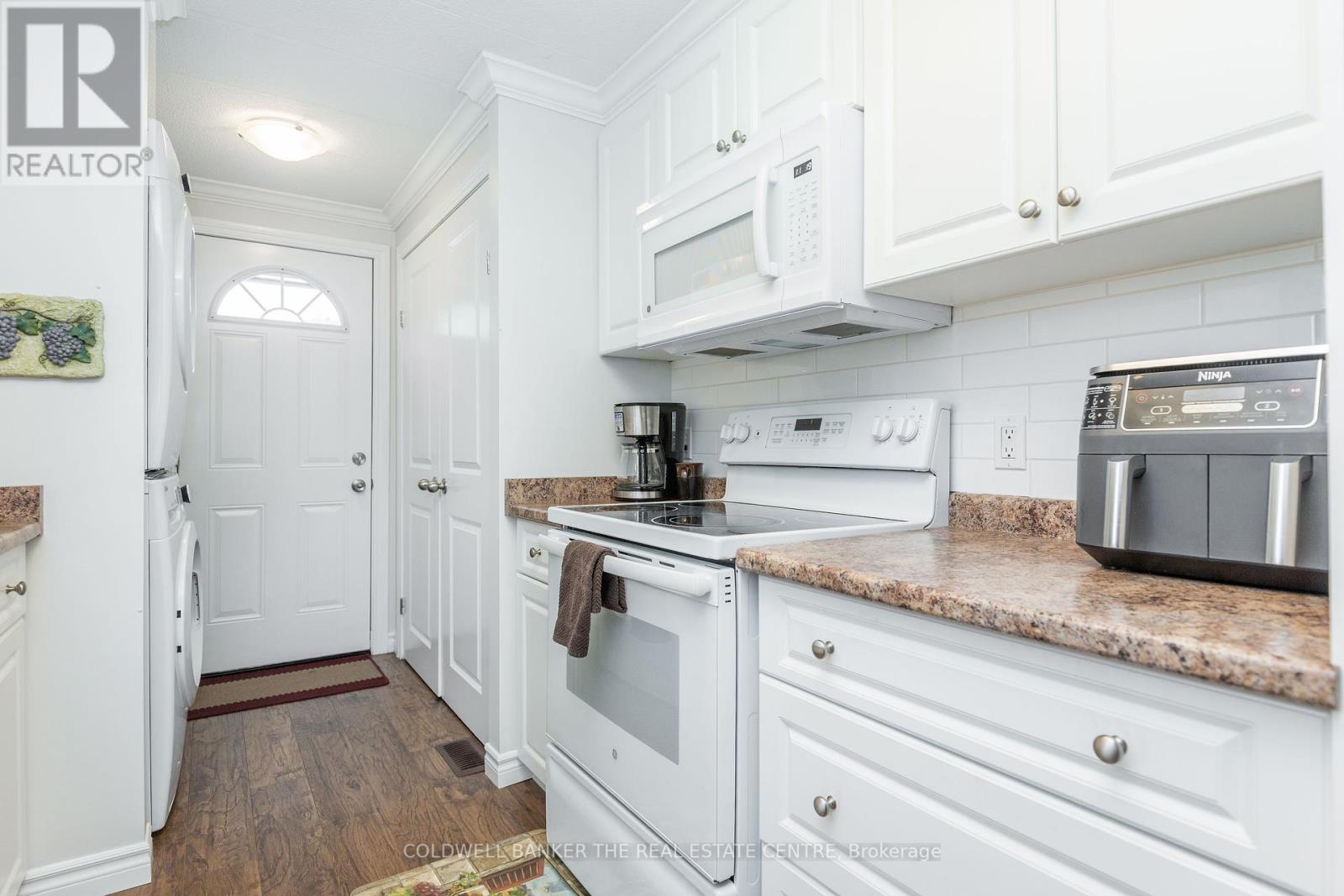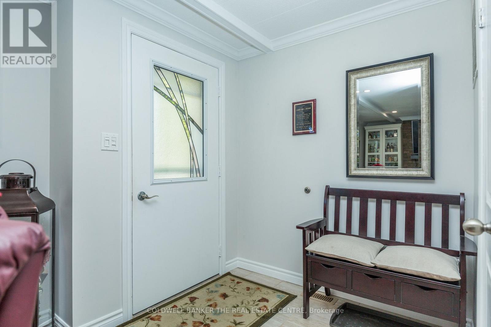 Remarkable bungalow on the North Side in Sandycove Acres! Fully renovated and landscaped inside and out, nothing to do but move in and enjoy! This beautiful 2 bedroom, 2 bathroom home has been updated inside with drywall, wide plank laminate flooring throughout (carpet free!), pot lights, crown moulding, stone fireplace plus updated kitchen (including new appliances) and bathrooms! Large principal rooms with loads of natural light flood the house. Primary bedroom with walk in closet and 2 piece ensuite bath. Additional den or office with walk/out to deck. Outside has been lovingly landscaped with large covered front porch with pot lights and glass railings and 13 x11 back deck with lots of privacy & greenspace. The numerous updates include: spray foam insulated crawl space, windows 2019, gas furnace 2016, A/C 2017, shingles 2017, freshly painted 2023, updated screens & exterior doors, leaf filters 2023. Not to be missed! Included with the sale a fully customized 2017 Precedent Club Car Golf Cart with its own 'garage'. 2 garden sheds: garden tractor storage and 9x11 shed with power and steel roll door for extra storage and golf cart parking! Don't wait! Sandycove is a vibrant active community with lost of activities & clubs. 2 salt water pools, 3 rec centres, NEW pickleball courts, gym and woodworking shop. Easy access to amenities, South Barrie GO and beautiful Lake Simcoe! *New asphalt driveway being installed* Assumable lease to 2037 $579.86. (id:51158)