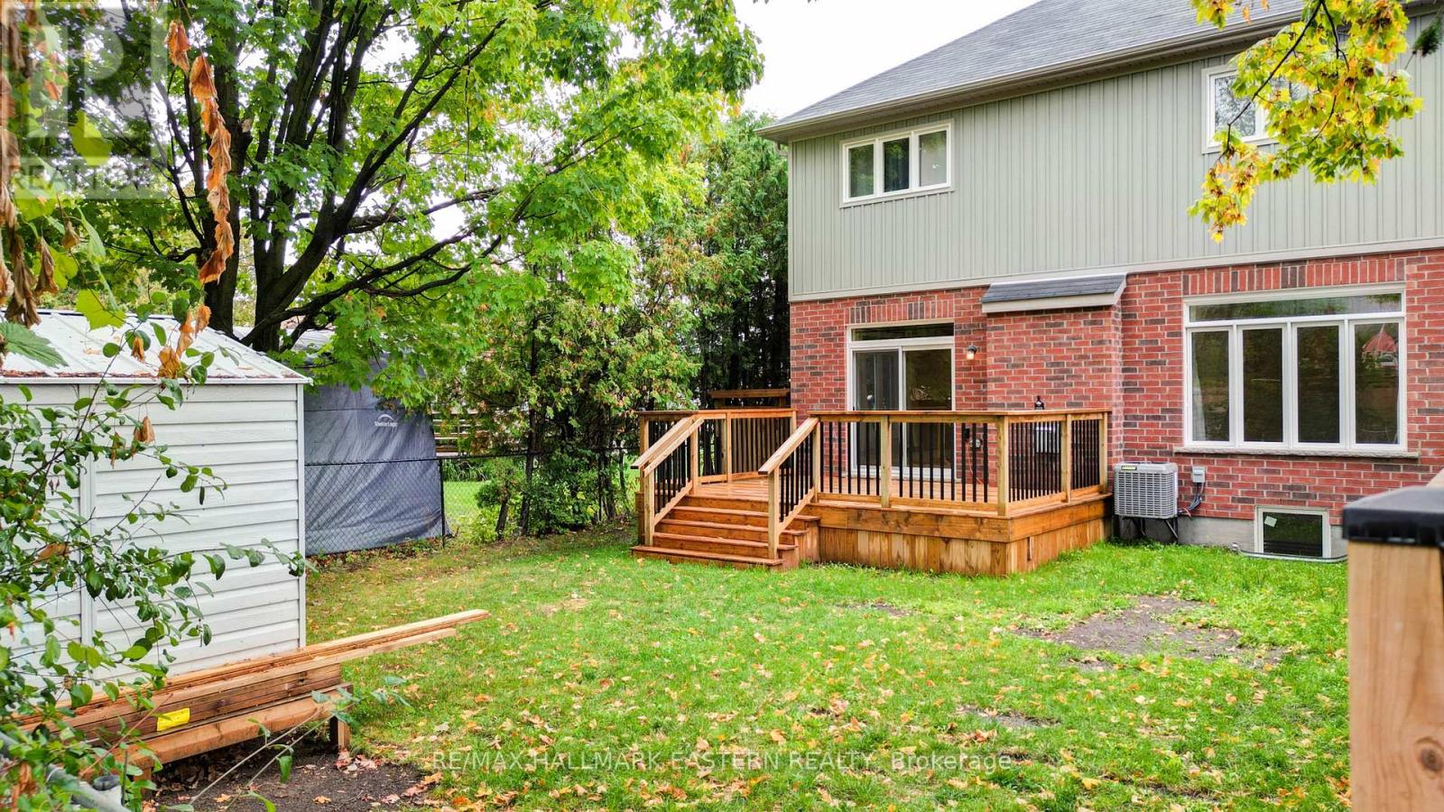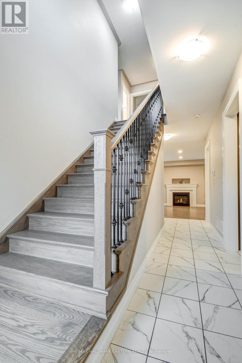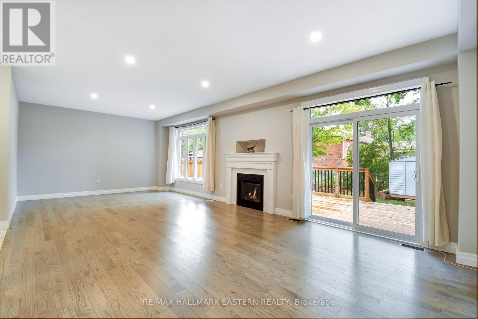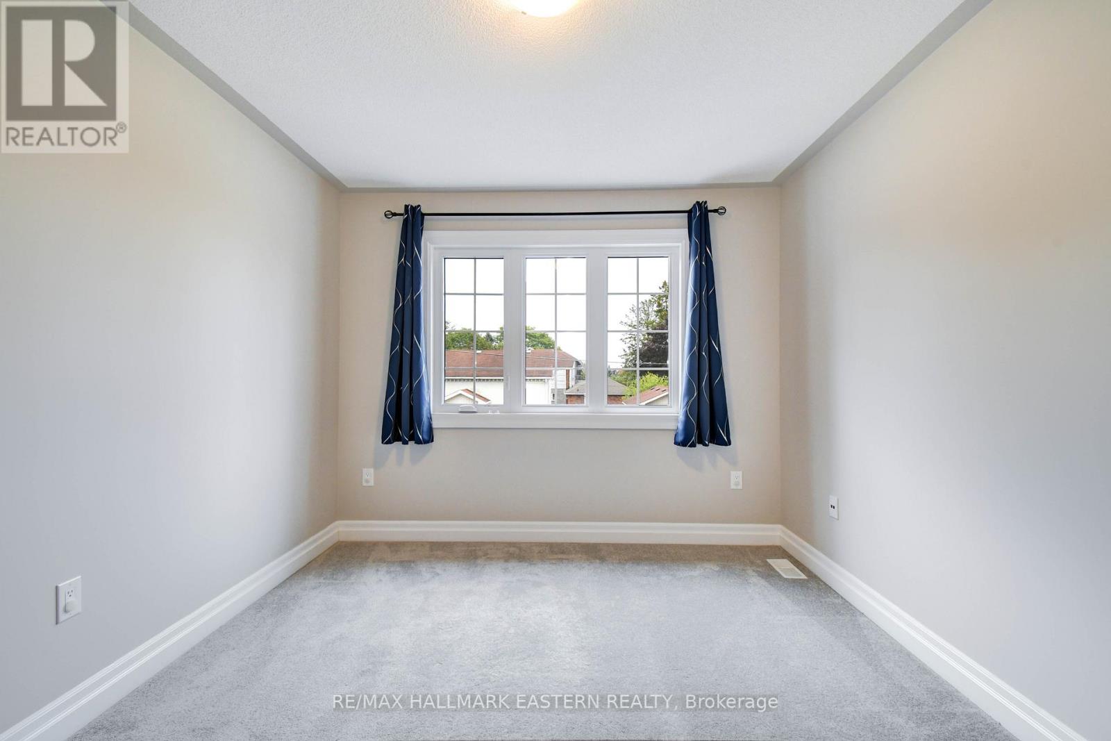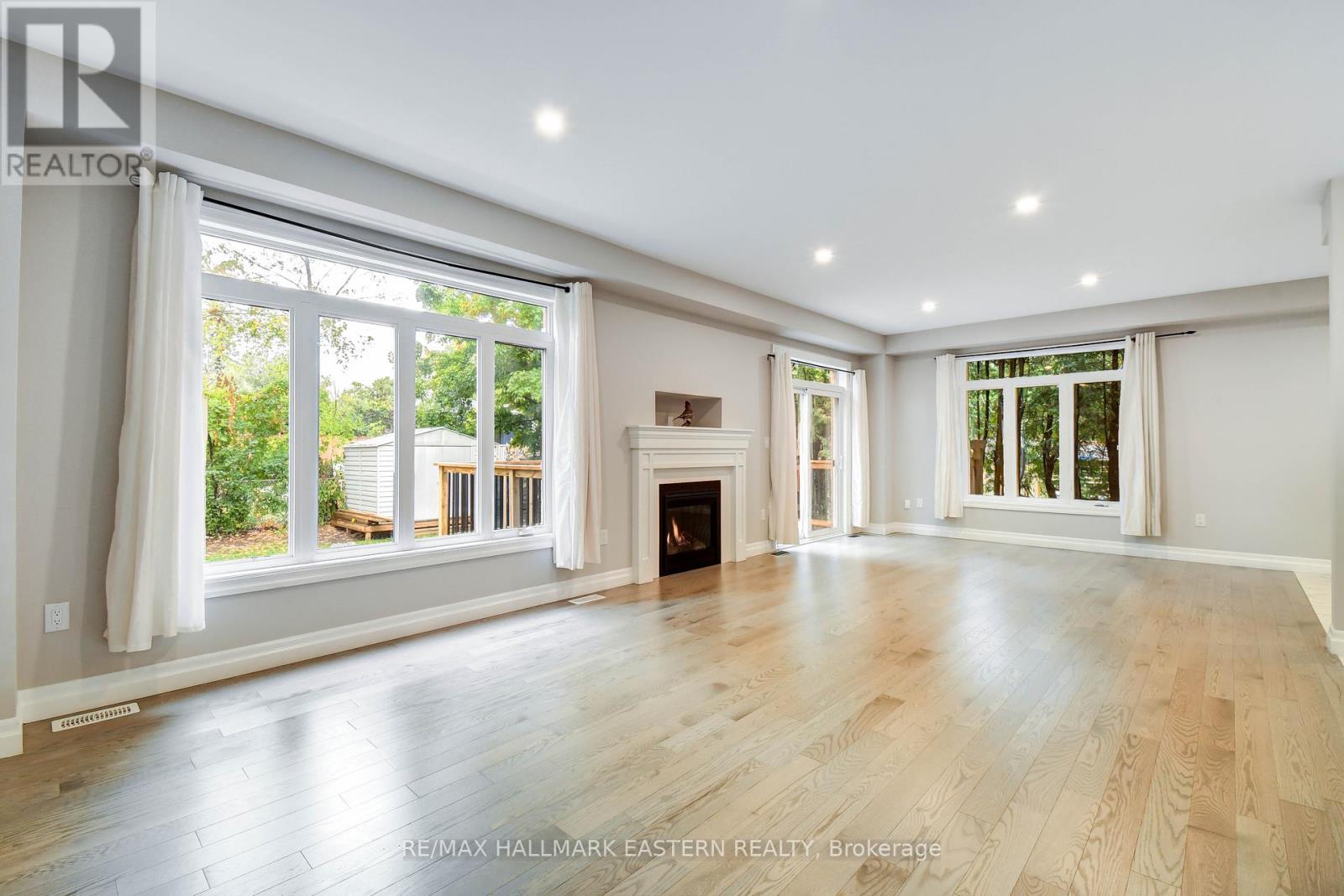 Welcome to this beautifully maintained 4-bedroom, 3-bathroom, 2-year-new semi-detached brick home in the heart of Bowmanville offering a total of 2,764 square feet including the basement. Freshly painted and professionally cleaned throughout, including bedroom carpeting and virtually every nook and cranny, this property is super move-in ready, and being vacant, offers immediate possession or a flexible closing. If this looks like a new home, and feels like one, that's because it does. The bonus? It's tucked into a mature neighbourhood with established trees, offering added privacy and charm that you don't always find with newer homes. The home showcases 9-foot ceilings for that extra spacious wow factor, with pot lights, and a large feature gas fireplace centrally located for gatherings in the open concept kitchen, living, and dining area with a walkout to a fully fenced backyard. The unspoiled basement includes a bathroom rough-in and offers excellent potential for future customization, with modern flooring set aside for a head start towards your finished vision. Step outside to a private backyard complete with a shed and a brand-new deck, perfect for entertaining or relaxing. Located in a quiet, friendly neighbourhood close to the hospital, schools, shops, and walking distance to all amenities. Just minutes from downtown Bowmanville, this home combines size, comfort, style, and convenience. For commuters, it's approximately 10 minutes to Highway 407 or less than 5 minutes to Highway 401. A fantastic opportunity to own a modern home in a prime location! (id:51158)