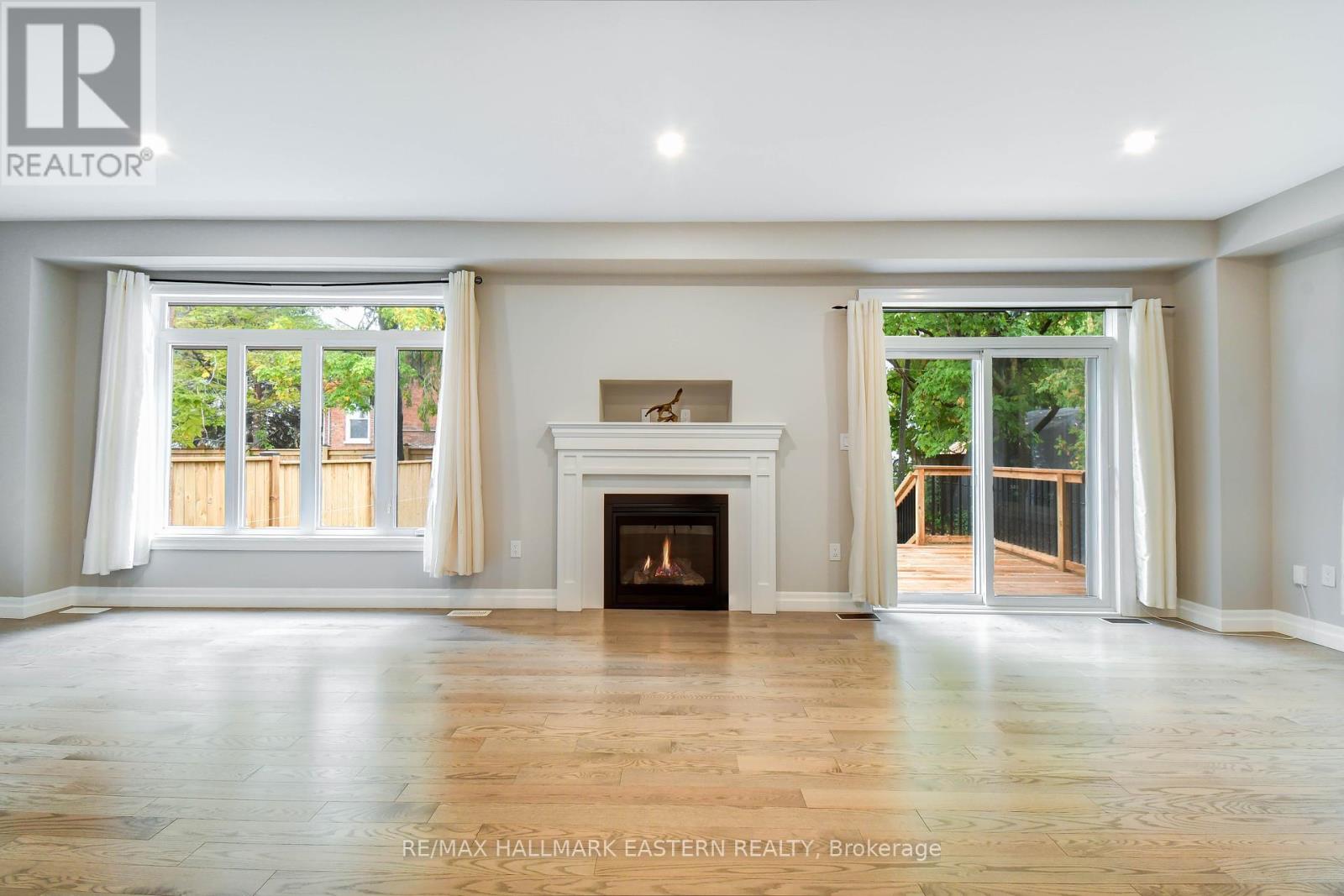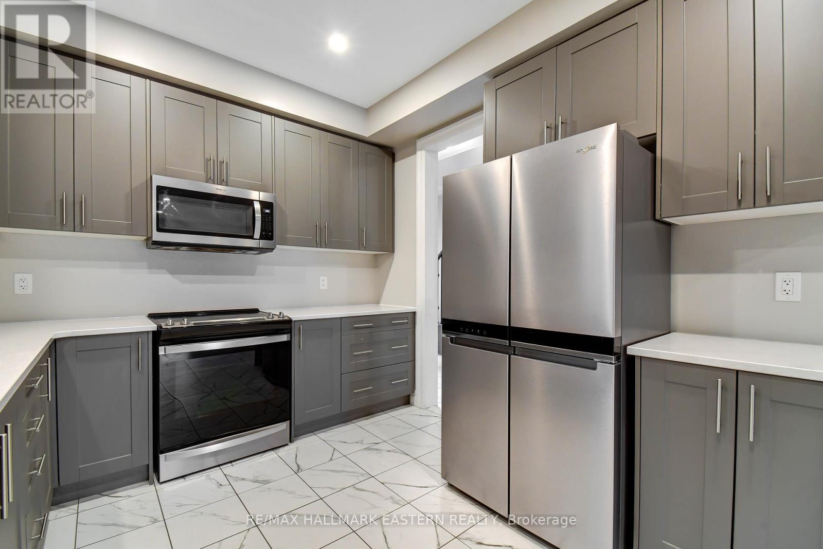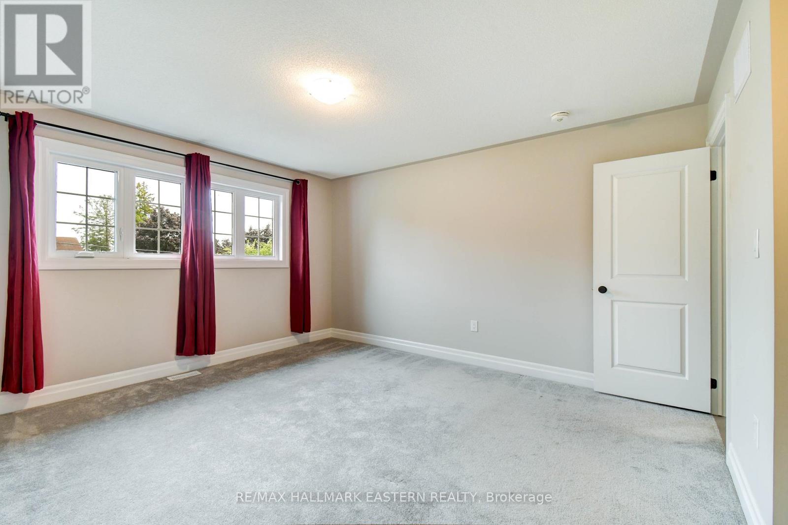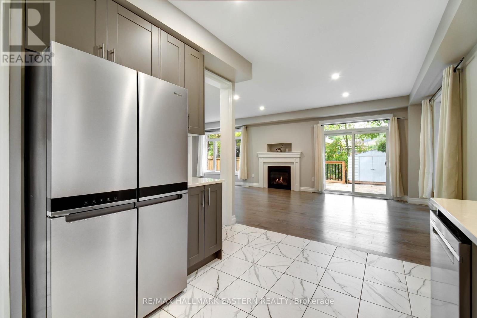 Welcome to this beautifully maintained 4-bedroom, 3-bathroom, 2-year-new semi-detached brick home in the heart of Bowmanville offering a total of 2,764 square feet including the basement. Freshly painted and professionally cleaned throughout, including bedroom carpeting and virtually every nook and cranny, this property is super move-in ready, and being vacant, offers immediate possession or a flexible closing. If this looks like a new home, and feels like one, that's because it does. The bonus? It's tucked into a mature neighbourhood with established trees, offering added privacy and charm that you don't always find with newer homes. The home showcases 9-foot ceilings for that extra spacious wow factor, with pot lights, and a large feature gas fireplace centrally located for gatherings in the open concept kitchen, living, and dining area with a walkout to a fully fenced backyard. The unspoiled basement includes a bathroom rough-in and offers excellent potential for future customization, with modern flooring set aside for a head start towards your finished vision. Step outside to a private backyard complete with a shed and a brand-new deck, perfect for entertaining or relaxing. Located in a quiet, friendly neighbourhood close to the hospital, schools, shops, and walking distance to all amenities. Just minutes from downtown Bowmanville, this home combines size, comfort, style, and convenience. For commuters, it's approximately 10 minutes to Highway 407 or less than 5 minutes to Highway 401. A fantastic opportunity to own a modern home in a prime location! (id:51158)