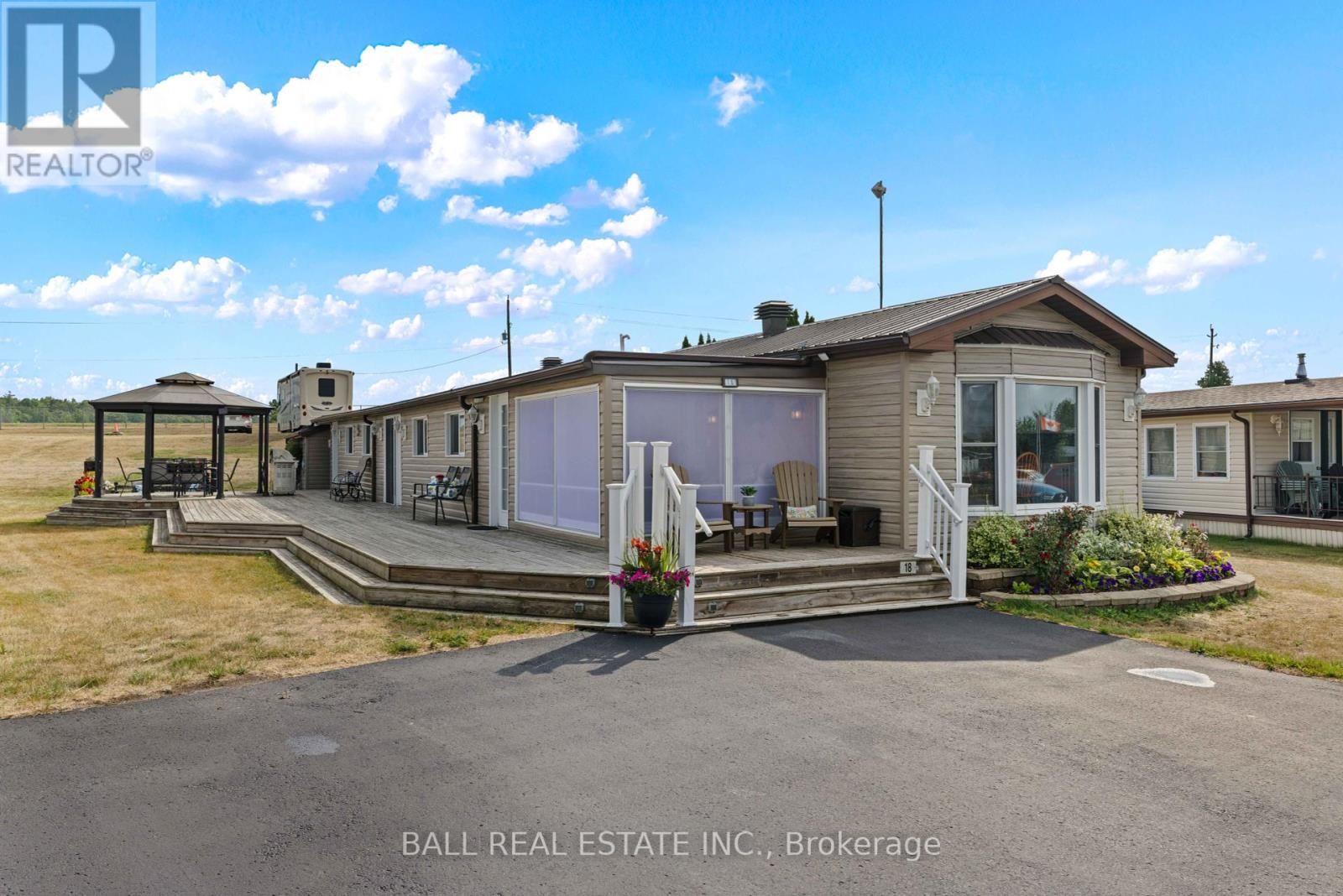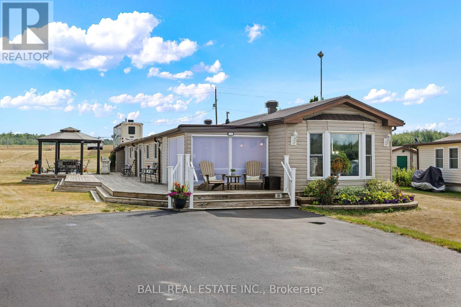 Discover 18 Edwin Court a bright and spacious 2-bedroom, 2-bath bungalow in the sought-after Shady Acres Resort. Built in 1990 and offering approximately 1,550 sq ft of comfortable, one-level living, this well-maintained home is perfect for year-round living or a seasonal escape. Over the past several years, the current owners have made significant renovations and improvements, ensuring the home is both modernized and move-in ready. Updates include refreshed interiors, upgraded finishes, and thoughtful enhancements designed to maximize comfort, style, and efficiency. Inside, the light-filled living room welcomes you in, flowing seamlessly into a generous kitchen and dining area perfect for entertaining. Two well-sized bedrooms offer plenty of space for family or guests, while the open layout and abundant natural light create an inviting, airy atmosphere. Life at Shady Acres is about more than just owning a home its about embracing a vibrant, active lifestyle. Residents enjoy an array of resort-style amenities, including a heated pool, pickleball, basketball, shuffleboard, horseshoes, playgrounds, a jumping pillow, and a full calendar of planned activities for all ages. Water lovers will appreciate the boat slips and launch, offering easy access to the Trent-Severn Waterway for boating and fishing. With its peaceful setting, welcoming community, and countless amenities, this home offers the perfect balance of relaxation and recreation. Whether enjoying a quiet coffee on the porch, hosting friends, or spending the day on the water, 18 Edwin Court is the perfect place to call home. (id:51158)