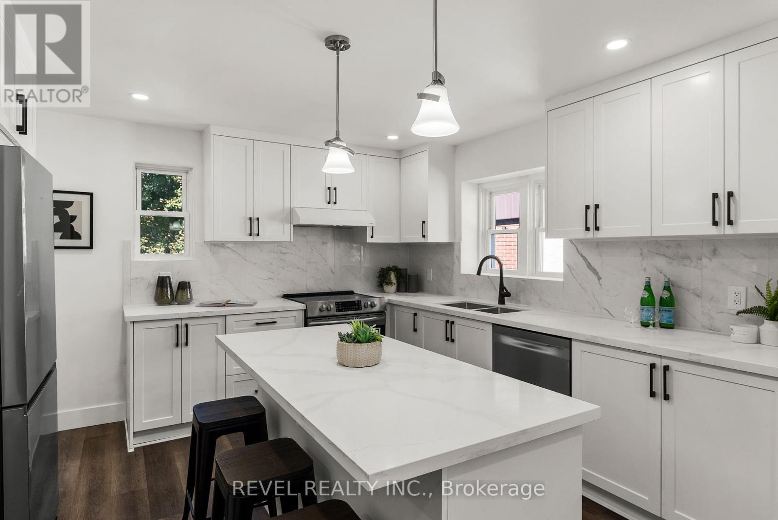 Welcome to 180 Hillcroft Street, where timeless charm meets modern sophistication in Oshawa's coveted O'Neill neighbourhood. Backing onto a private ravine, this fully reimagined home offers a rare blend of comfort, connection, and style - just minutes from downtown, parks, top-rated schools, and commuter routes.Inside, discover a brand-new modern kitchen with an oversized quartz island, sleek cabinetry, pot lights, and stainless steel appliances - the perfect anchor for the open-concept main floor. Every space has been thoughtfully updated, from the luxury vinyl flooring and designer lighting to the spa-inspired bath with double vanity and elegant finishes.The upper loft creates a flexible space ideal for a home office, creative studio, or cozy reading retreat, while the finished lower level offers the perfect kids' play area or family lounge. Step outside to a newly landscaped backyard backing onto lush greenery - fully fenced for privacy and everyday relaxation. Exterior upgrades include refreshed siding, new air conditioning, stone steps in the backyard, and a newer roof, ensuring peace of mind for years to come. Ideal for young families, professionals, or downsizers, this move-in-ready home blends modern luxury with the warmth of an established community. Live the Lifestyle in one of Oshawa's most desirable ravine settings. (id:51158)