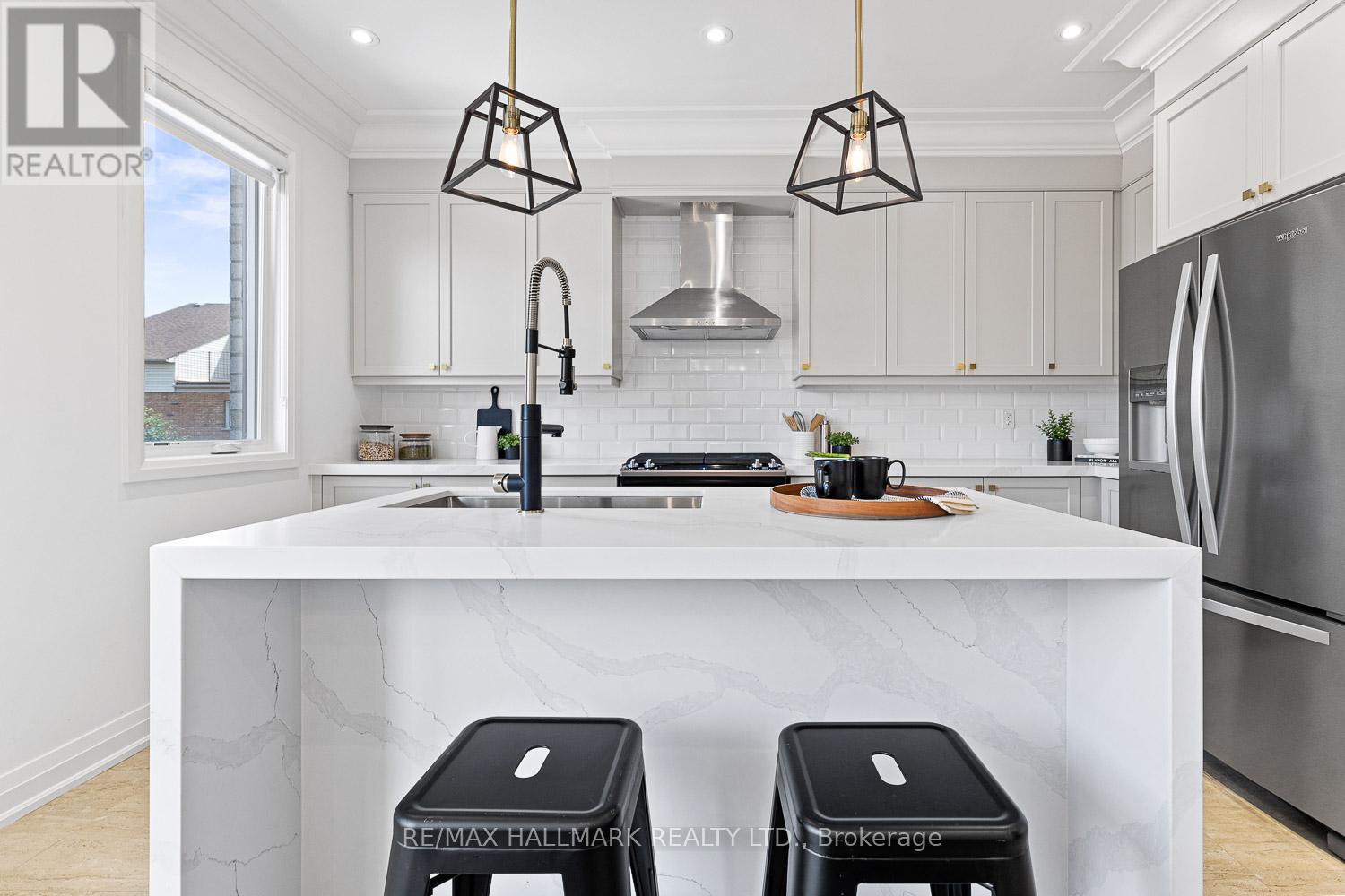 Welcome to an exceptional executive oversized luxury townhouse nestled in the coveted Highbush Community, overlooking the serene Altona Forest. Thoughtfully crafted by renowned custom builder Sunset Valley Homes, this elegant residence showcases meticulous attention to detail and refined finished throughout.Offering 4 spacious bedrooms, the home features a stunning gourmet kitchen with an oversized pantry room, premium finishes, and classic crown moulding, all designed to capture tranquil ravine views - perfect for both everyday living and upscale entertaining. Sun-filled interiors, quality craftsmanship, and timeless design create a warm yet sophisticated ambiance. Ideally located just minutes from top-rated public and catholic schools, as well as beautiful parks, trails, Rouge Forest, and the shores of Lake Ontario. Enjoy unmatched convenience with easy access to shopping and dining at Pickering Town Centre, local boutiques, and seamless connectivity to Toronto. A rare opportunity to own a luxury townhouse that blends nature, prestige, and modern executive living in one of Pickering's most desirable communities. (id:51158)