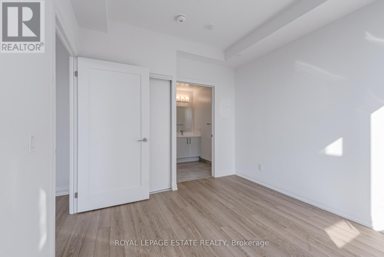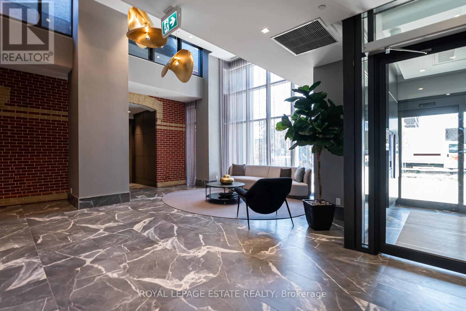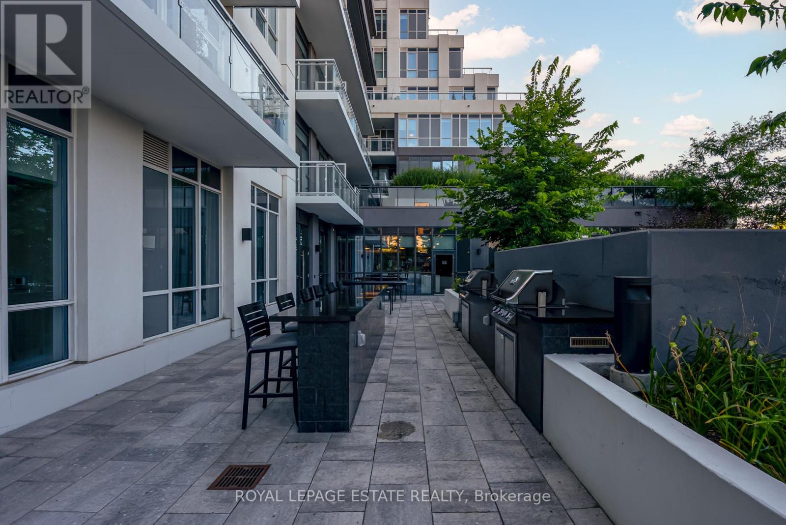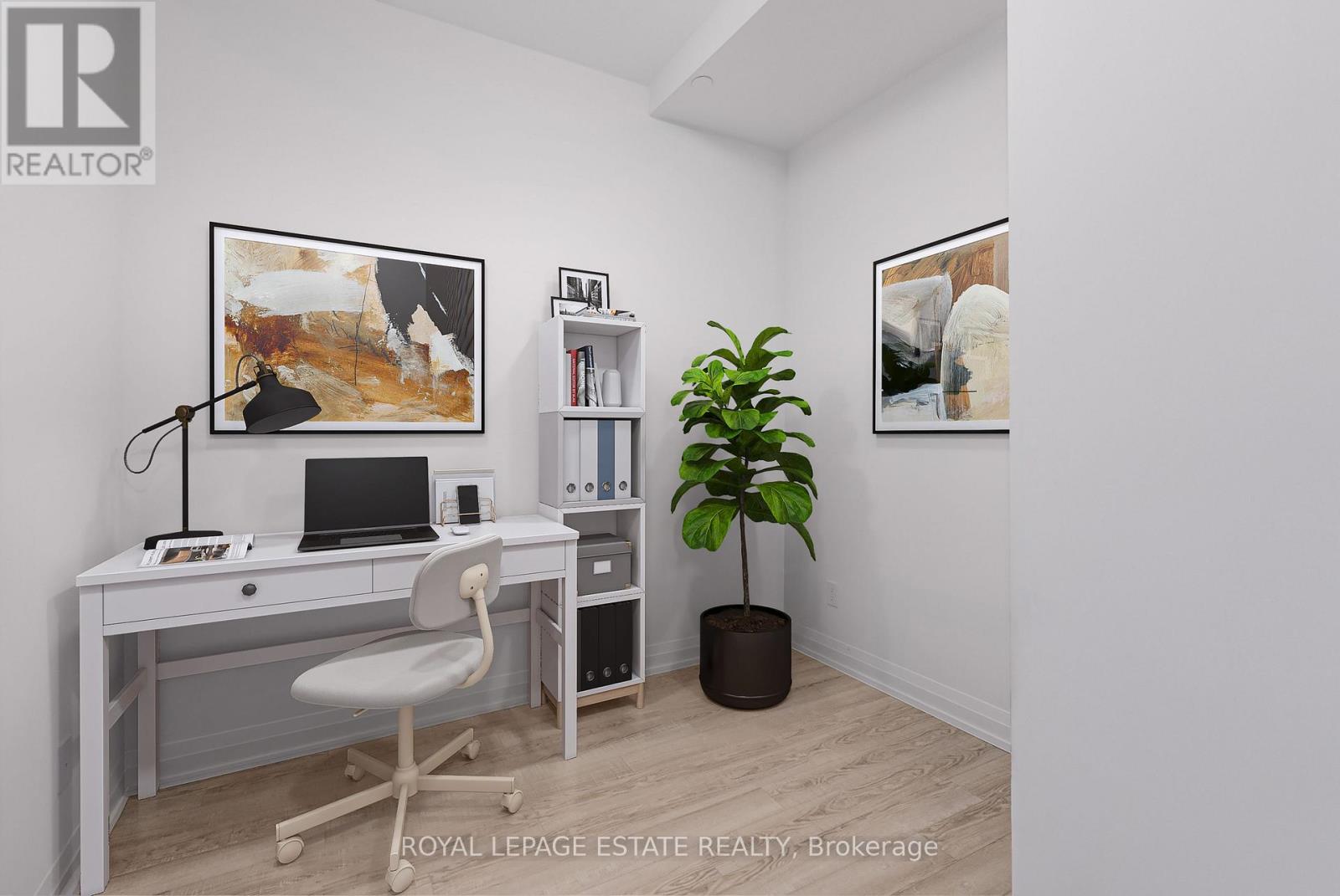 Welcome to Linx Condos! This bright and airy unit offers a functional layout with one bedroom plus a versatile den, perfect for a home office. Enjoy the morning sun from its eastern exposure, with the living room opening onto a private balcony showcasing lake views to the south and clear views to the north. The sleek galley-style kitchen features built-in appliances and modern finishes, while the spacious bedroom includes a large window and a contemporary ensuite with a glass-enclosed shower. Additional highlights include mirrored entry closets and thoughtful design throughout. Residents enjoy outstanding amenities, including a concierge, fitness centre, party room, BBQ area, guest suites, and more. All this just steps from the GO Station, TTC, bike paths, the Upper Beaches, Danforth and Kingston Roads shops and dining. - Property is virtually staged (id:51158)