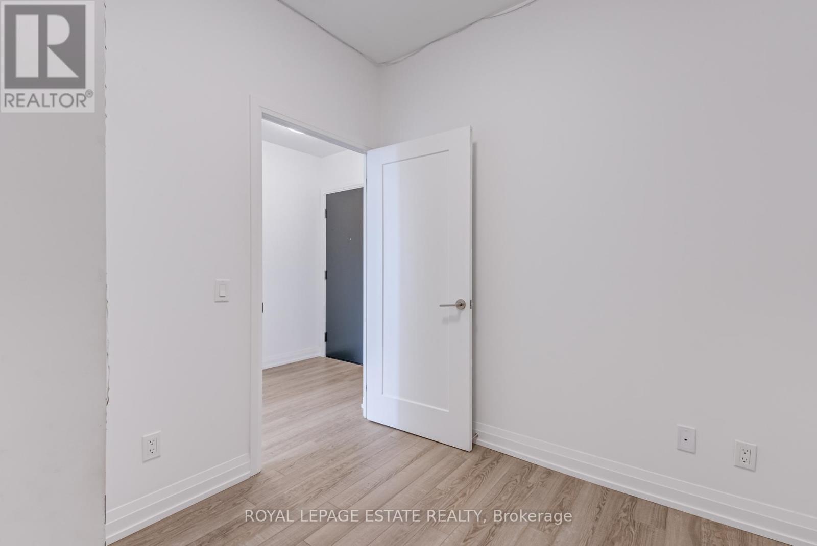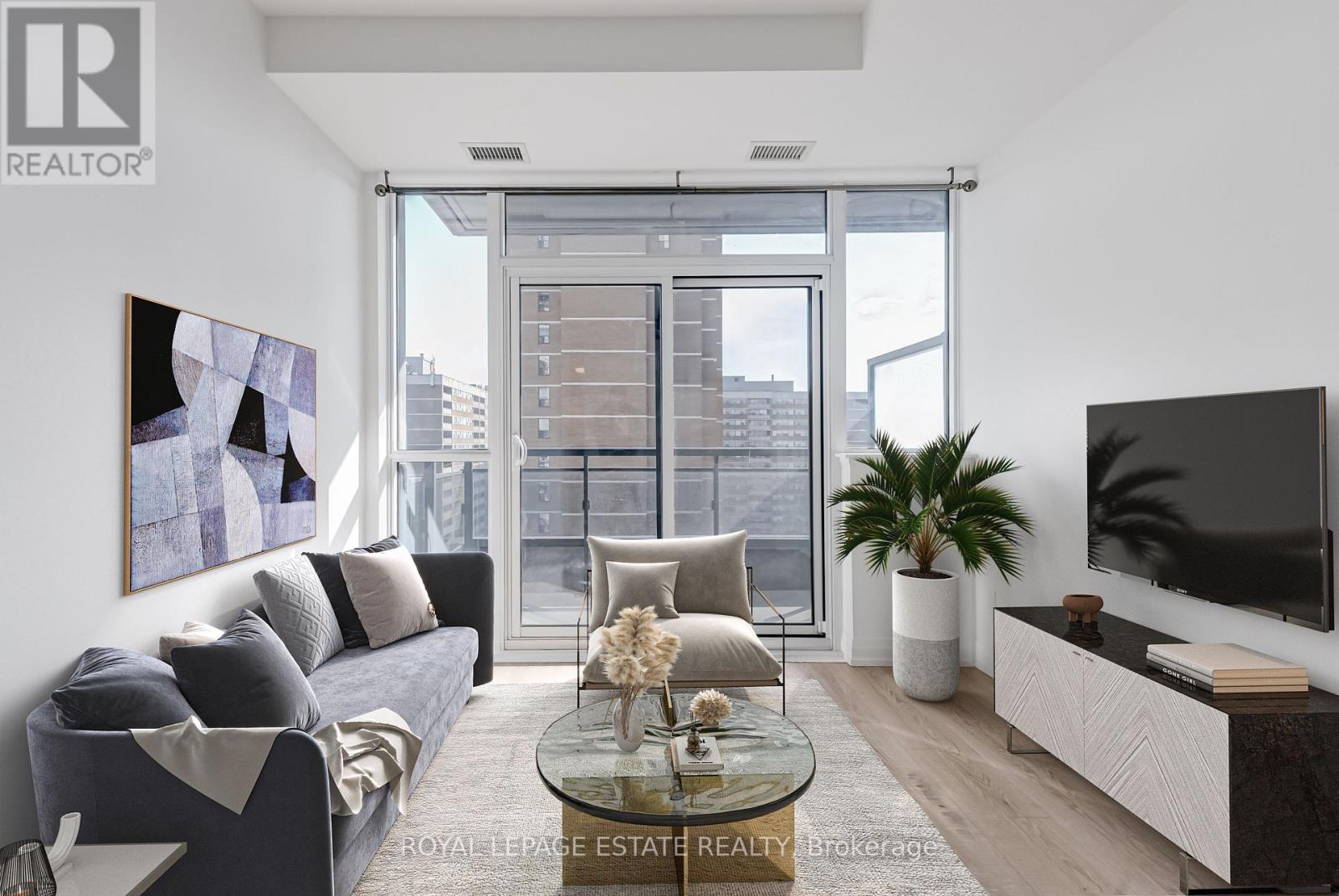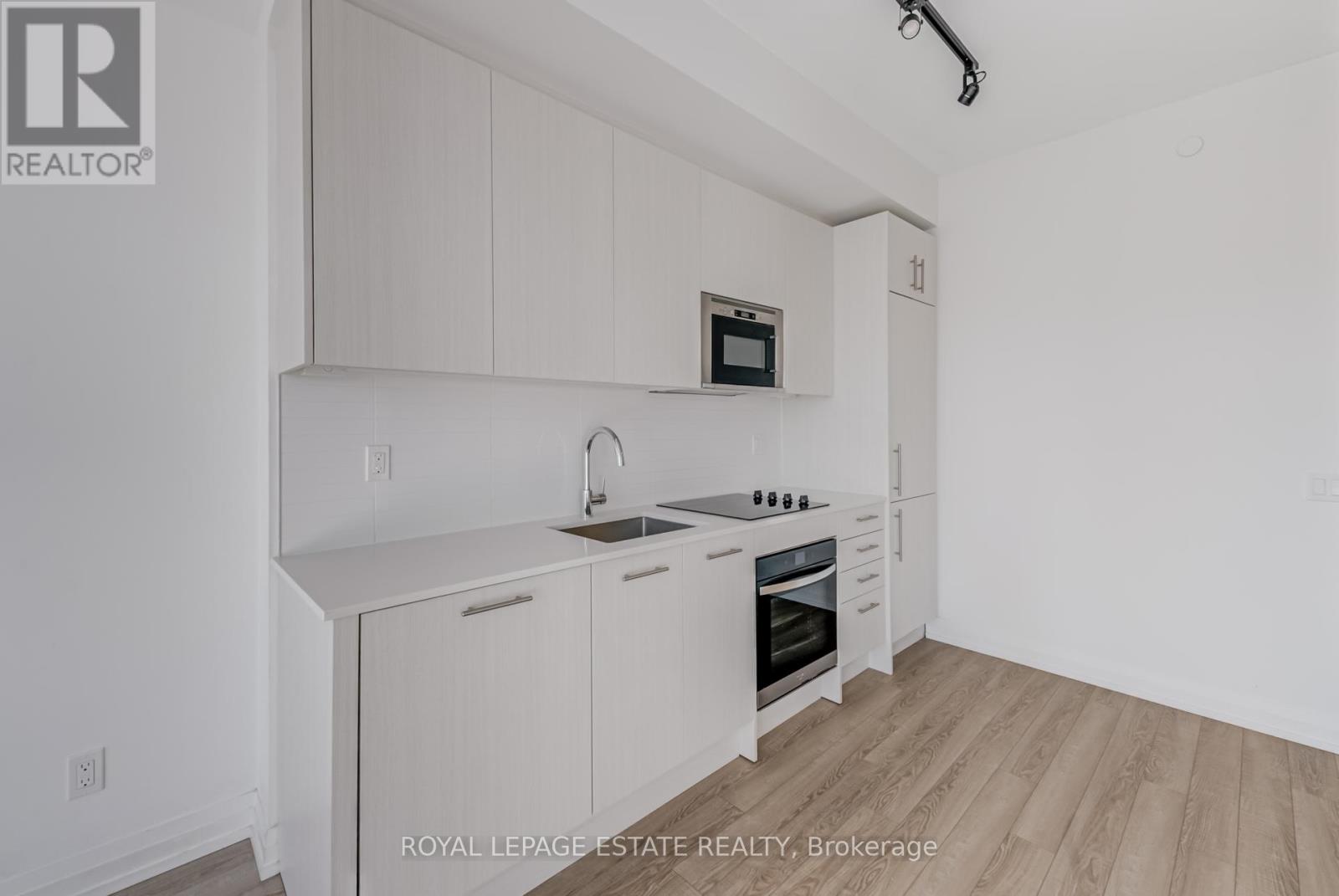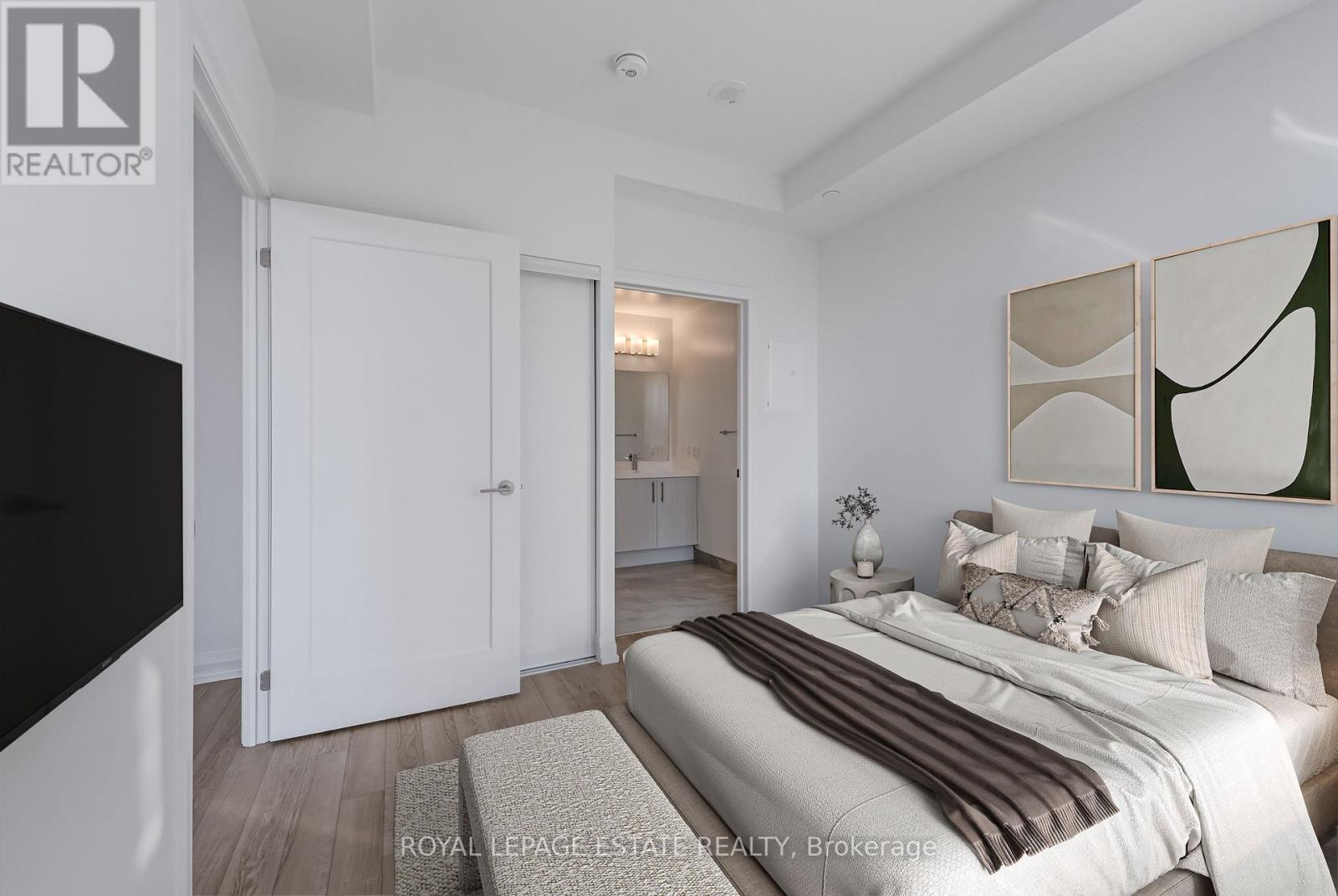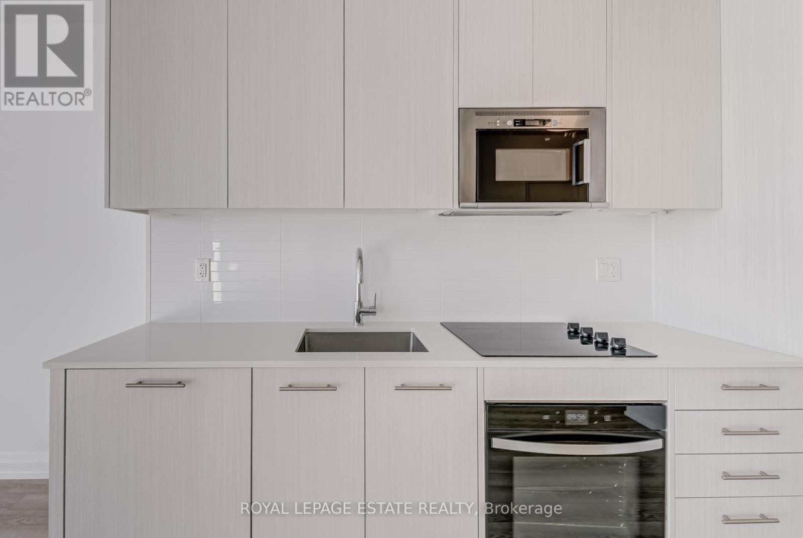 Welcome to Linx Condos! This bright and airy unit offers a functional layout with one bedroom plus a versatile den, perfect for a home office. Enjoy the morning sun from its eastern exposure, with the living room opening onto a private balcony showcasing lake views to the south and clear views to the north. The sleek galley-style kitchen features built-in appliances and modern finishes, while the spacious bedroom includes a large window and a contemporary ensuite with a glass-enclosed shower. Additional highlights include mirrored entry closets and thoughtful design throughout. Residents enjoy outstanding amenities, including a concierge, fitness centre, party room, BBQ area, guest suites, and more. All this just steps from the GO Station, TTC, bike paths, the Upper Beaches, Danforth and Kingston Roads shops and dining. - Property is virtually staged (id:51158)