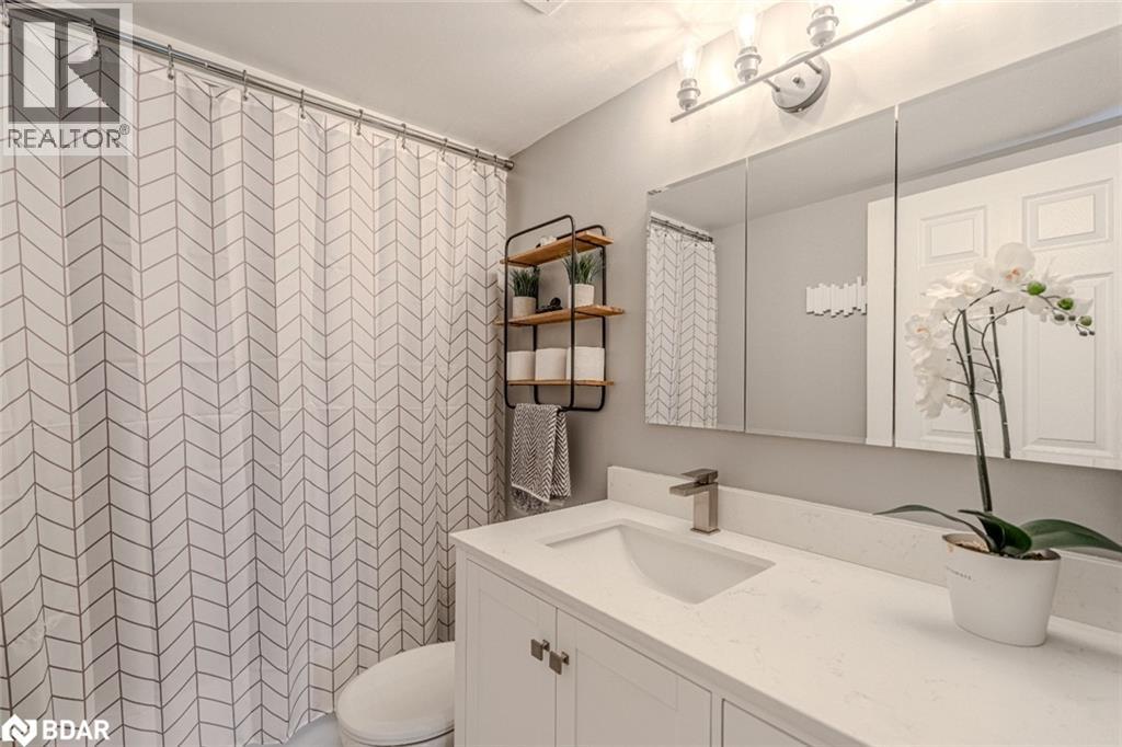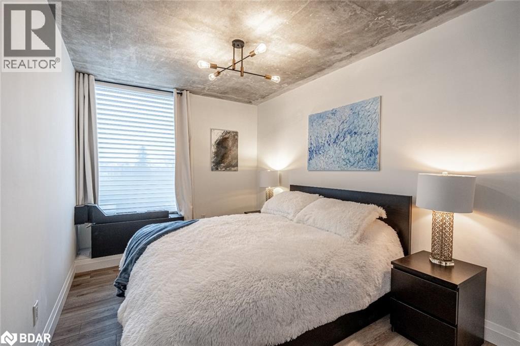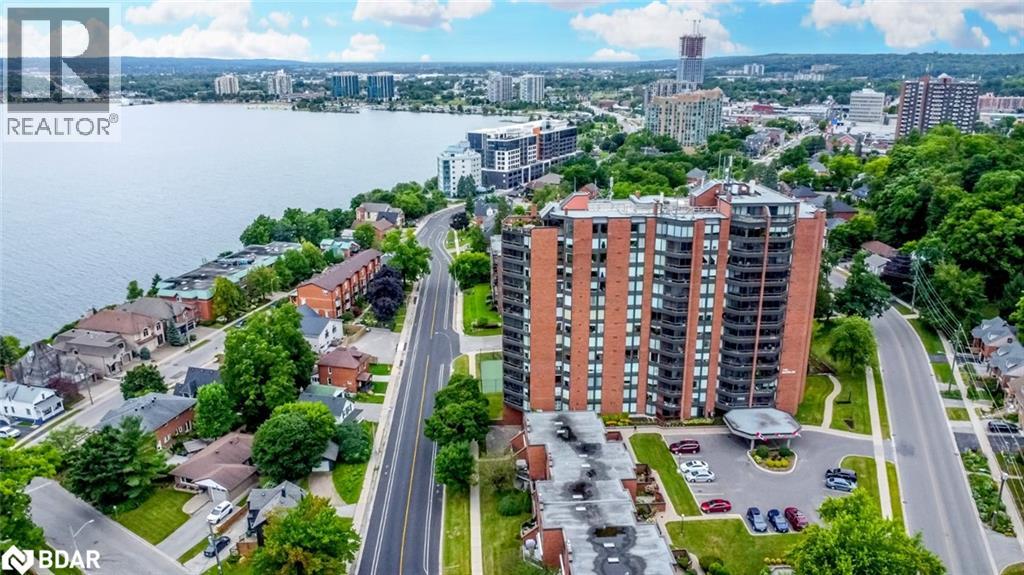 STUNNING, FULLY RENOVATED CONDO WITH OPEN-CONCEPT MODERN DESIGN, LAKE VIEWS, STEPS FROM THE WATERFRONT & THE BEST OF CITY LIVING! Live in the heart of it all with this upgraded Killdeer-style unit in Barrie’s vibrant City Centre, providing the ideal mix of comfort, convenience, and captivating views. Fully renovated with care and style, this unit stands out from the rest with fresh, modern finishes and a long list of thoughtful upgrades throughout. From the moment you step inside, you'll notice the attention to detail, starting with the stunning chef-inspired kitchen featuring an oversized island with bonus storage, quartz countertops, stainless steel appliances, and ample prep space. The airy living and dining area opens to a private enclosed balcony that showcases stunning views of Kempenfelt Bay. The thoughtfully designed floor plan separates the bedrooms for added privacy, with a spacious primary suite complete with a walk-in closet and 3-piece ensuite. Concrete ceilings add a touch of modern style to the bedrooms, complemented by updated pot lights, and durable laminate flooring throughout. Additional highlights include a dedicated laundry room and generous in-unit storage. Residents enjoy top-tier amenities including an indoor pool, sauna, fitness centre, tennis court, games room, meeting space, and visitor parking, while an exclusive parking space and a dedicated locker storage unit complete the package. Just steps from shops, restaurants, entertainment, and year-round community events, this location puts everything within reach - including Kempenfelt Park, the scenic North Shore Trail, and Johnson’s Beach. Enjoy a highly walkable lifestyle with the added ease of being less than 10 minutes from Highway 400, perfect for stress-free commuting. This exceptional #HomeToStay provides stylish, low-maintenance living with spectacular views, unbeatable walkability, and resort-style amenities - all in one of Barrie’s most dynamic and connected locations. (id:51158)