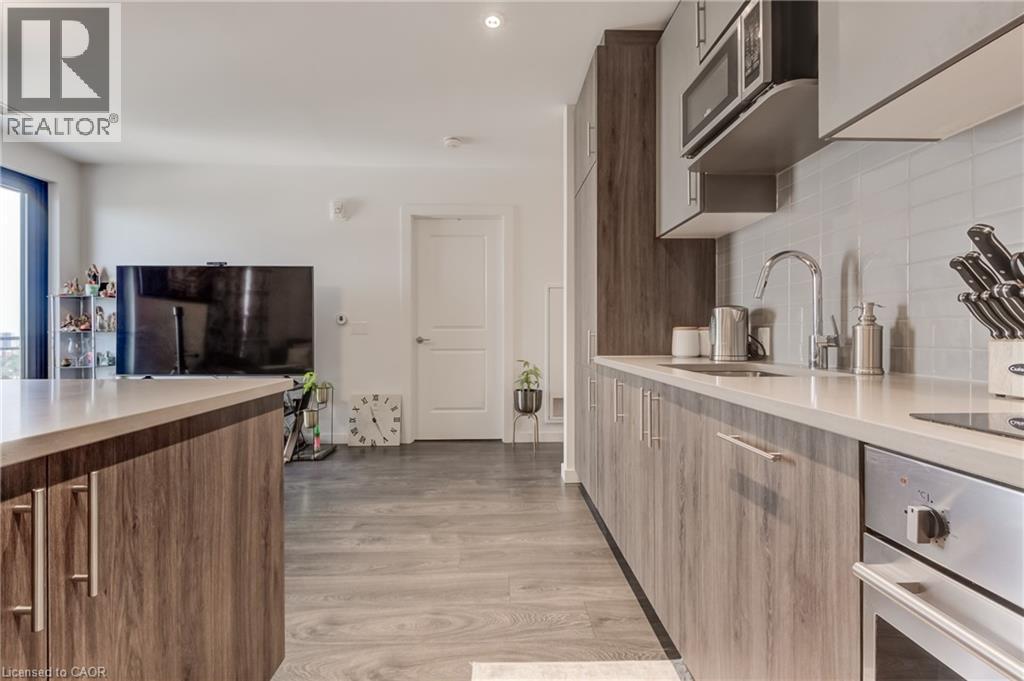 $595.45 MonthlyWelcome to Circa 1877 in Uptown Waterloo, where modern design meets historic charm in the heart of the Bauer District. This one-bedroom, one-bathroom condo offers 633 sq ft of open-concept living space, complete with in-suite laundry and a private 170 sq ft balcony. The stylish kitchen features quartz countertops, subway tile backsplash, and a functional island with power outlets. Residents enjoy exceptional building amenities, including a rooftop terrace with a saltwater pool, cabanas, and BBQs, as well as a fitness and yoga room, resident lounge, and secure entry. With the LRT just steps away and shops, dining, and entertainment within walking distance, this location is ideal for vibrant urban living. An excellent investment opportunity, as this unit is currently rented for $2,200/month plus utilities. Vacant as of November 30. (id:51158)