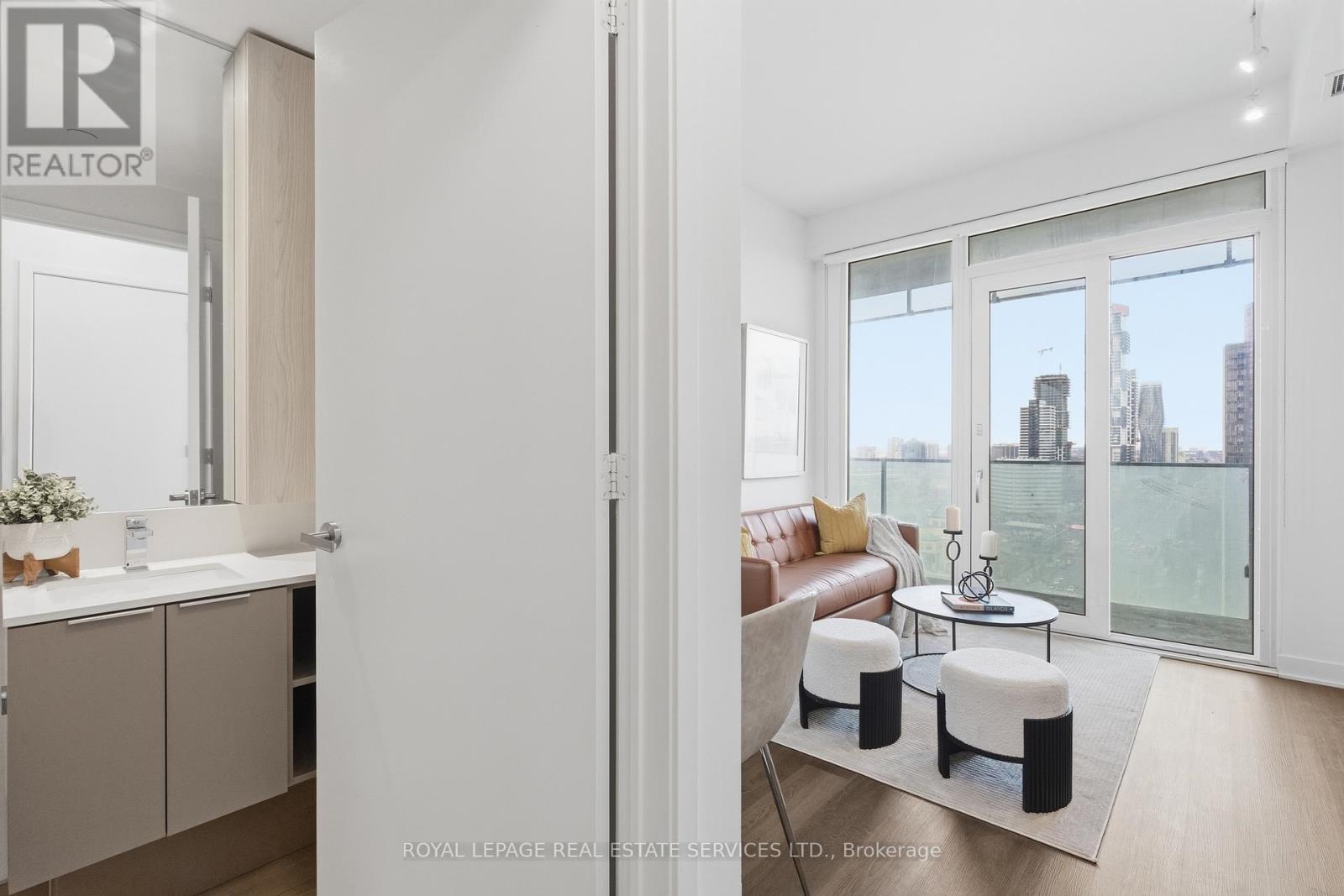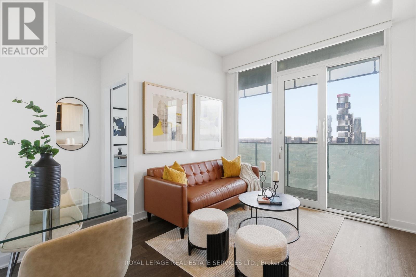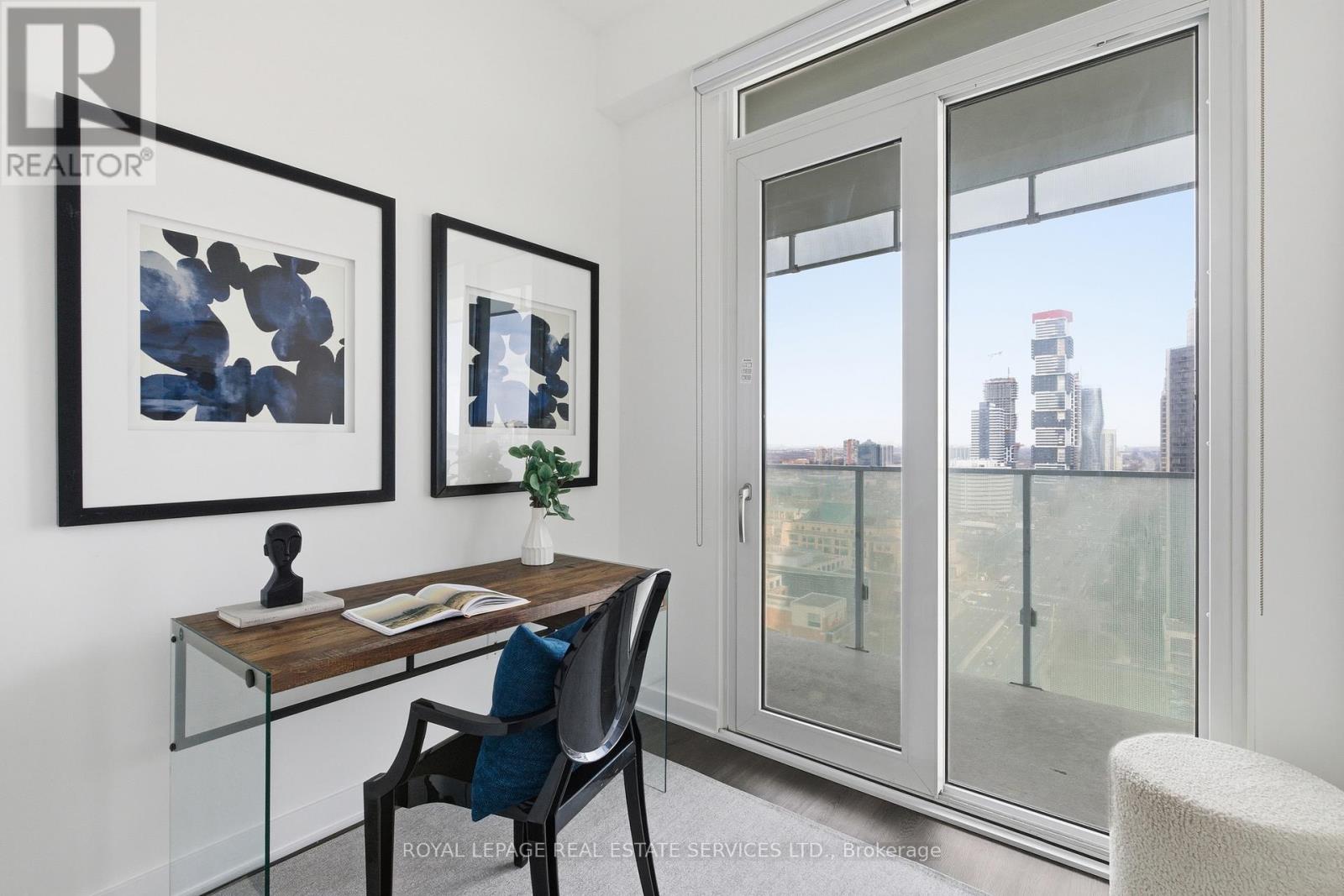 $475.74 MonthlyModern living in the heart of Mississauga at M City! This stunning 1 bedroom + den corner unit offers 784 sq ft of total space (571 sq ft interior + 213 sq ft balcony). Enjoy a rare wraparound balcony with access from all rooms, perfect for seamless indoor-outdoor living. Floor-to-ceiling windows throughout flood the unit with natural light. The versatile den features a door and floor-to-ceiling windows, making it ideal as a home office or additional sleeping area. The oversized L-shaped balcony provides spectacular, unobstructed city views. M City offers exceptional amenities including 24-hour concierge, swimming pool, fitness centre, BBQ areas, kids' play zone, seasonal skating rink, party room, games room, and more. Located just steps to Square One Shopping Centre, Sheridan College, public transit, and every convenience imaginable. Includes 1 parking spot. A must-see! (id:51158)