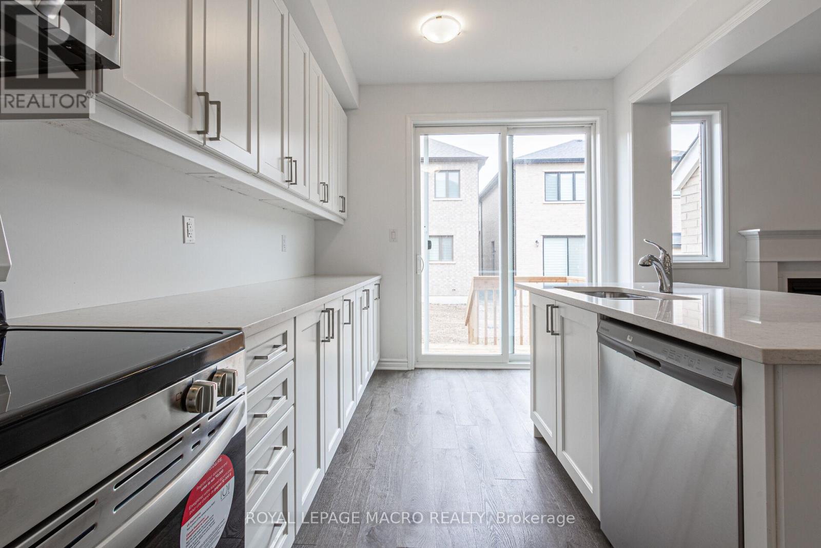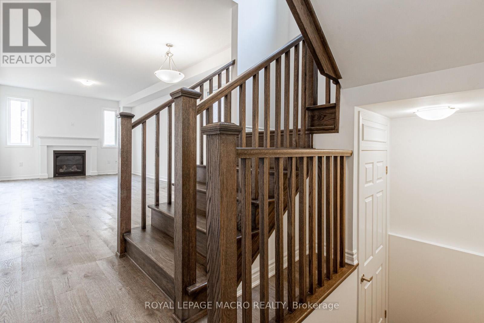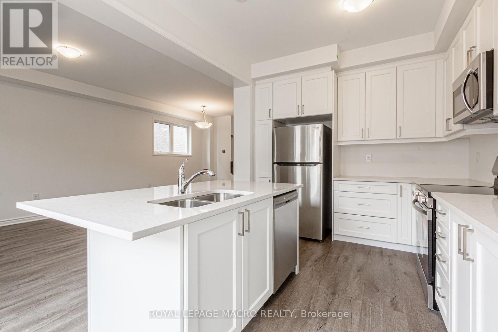 One year old and Upgraded 4-Bedroom, 3-Bathroom End-Unit Mattamy Townhome, This bright and sun-filled townhome offers the perfect blend of comfort, convenience, and contemporary living. With a modern design and abundant natural light, the home creates a welcoming and airy atmosphere. The main floor features 9-foot ceilings, an open-concept great room with a fireplace, and a modern white kitchen with quartz countertops and stainless steel appliances. There is also a convenient 2-piece powder room on the main floor. Upstairs, the second floor includes a master bedroom with an ensuite bathroom and a walk-in closet, two additional well-sized bedrooms, another 4-piece bathroom, and a second-floor laundry for added convenience. This home is located in a prime area, close to schools, highways, parks, shopping centers, and more. (id:51158)