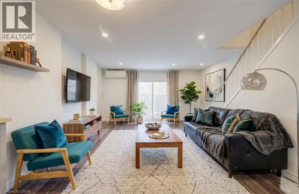 Welcome to this well-maintained 3-bedroom, 3-bathroom attached townhome located in a desirable Waterloo neighbourhood. Featuring a bright open-concept main floor, this home offers comfortable living with modern updates throughout! The renovated kitchen (2022) features sleek finishes, stainless steel appliances, and plenty of cabinetry, making it perfect for everyday living and entertaining. The main floor also includes convenient laundry, a 2-piece powder room, and a spacious living and dining area with access to the outdoor space. Upstairs you’ll find two generously sized bedrooms and a 4-piece bathroom, providing comfortable space for family or guests. The finished basement adds excellent versatility, featuring a 3-piece bathroom and a third bedroom that can easily function as a private bedroom, guest suite, or recreation room, depending on your needs. Enjoy outdoor living in the private fenced patio area, perfect for relaxing or entertaining. Additional updates include windows (2018) and ductless wall A/C units in every room for efficient year-round comfort. This property also includes 1 dedicated parking space and is conveniently located close to the University of Waterloo, schools, parks, transit, and everyday amenities, making it a fantastic opportunity for both homeowners and investors. (id:51158)